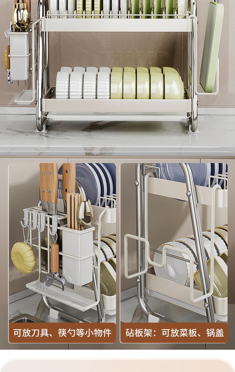 Escurridor de cuencos de cocina, de acero inoxidable, para guardar platos y palillos, color blanco leche, multifuncional, para encimeras de uso doméstico.