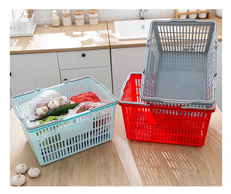 Cesta de Compras de Supermercado Cesta de Compras Portátil Tienda de Conveniencia Supermercado Cesta de Compras Portátil de Plástico con Doble Asa
