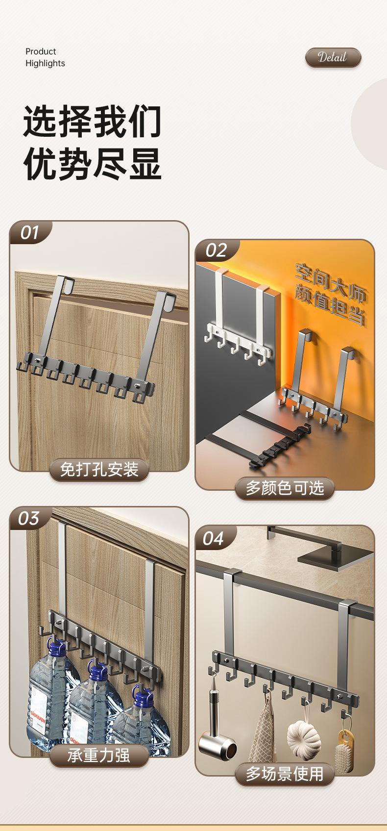 Door Hook Wholesale Space Aluminum Punch Free Bathroom Hook Bedroom Storage Hanger Hook Wall Hook