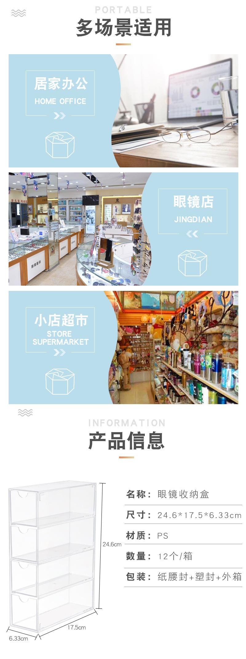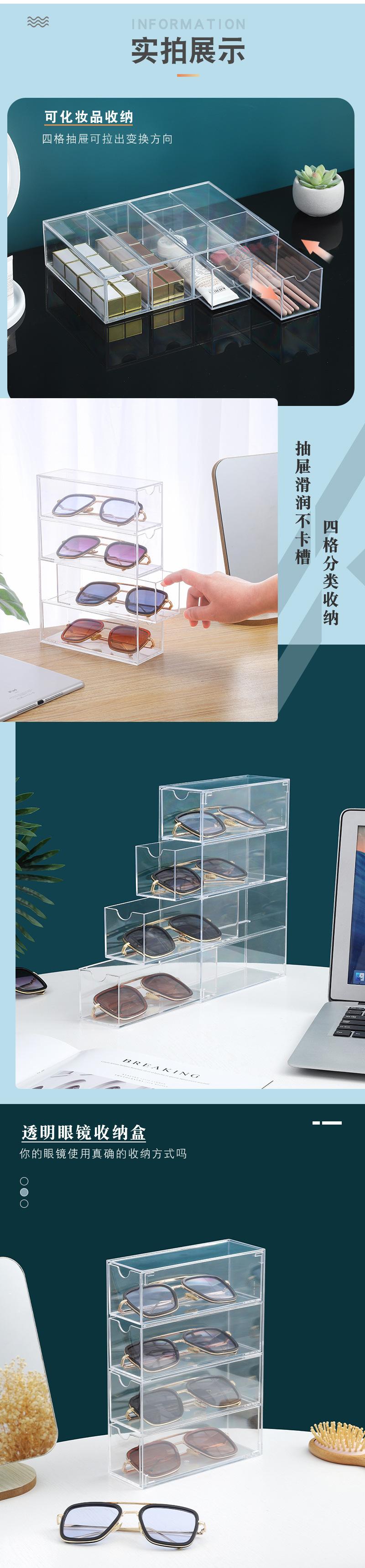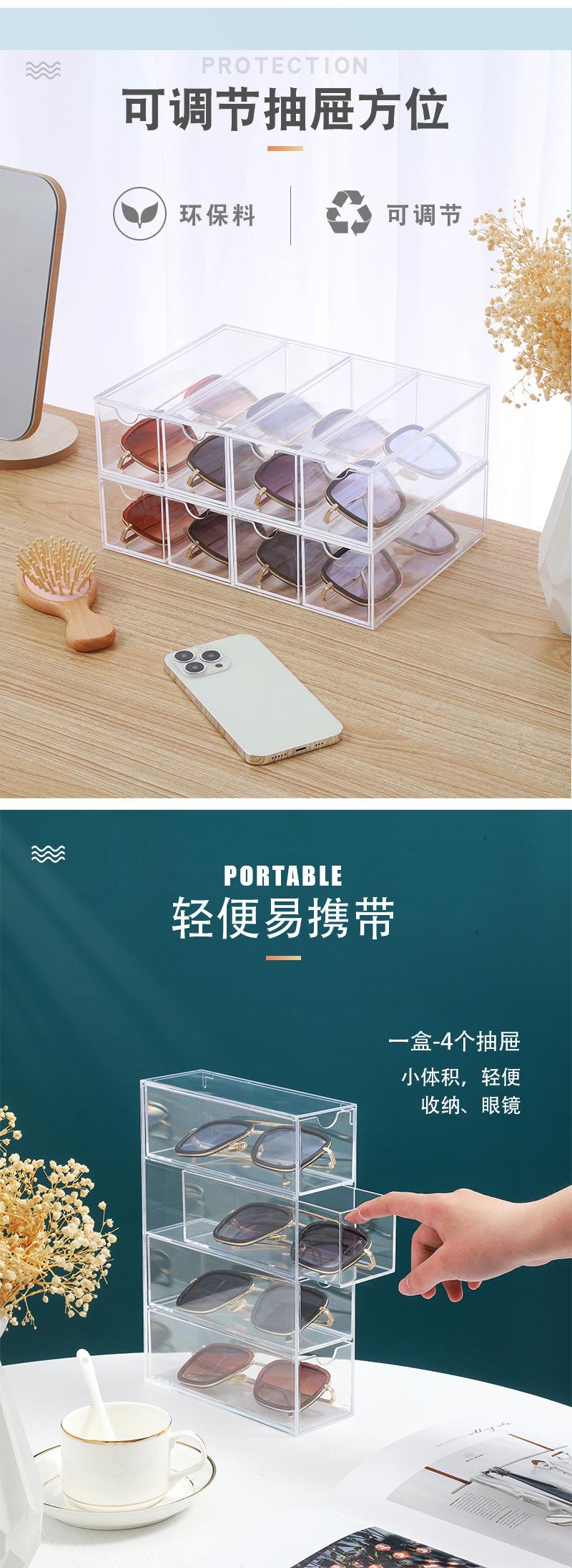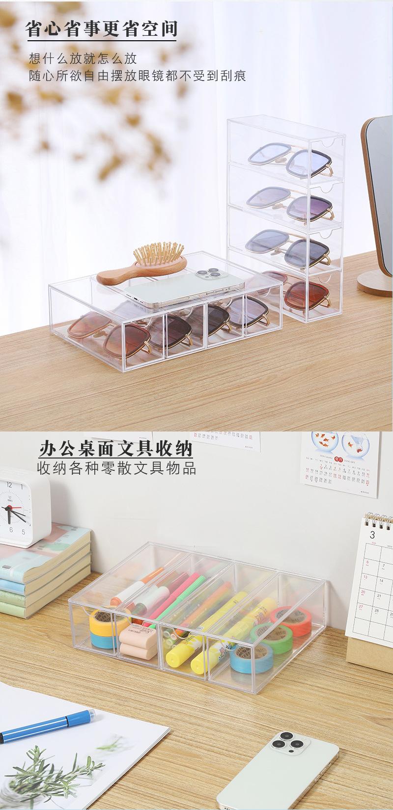 Caja de acrílico apilable para gafas de sol, de escritorio, de cuatro capas, resistente al polvo, con cajón para almacenamiento.