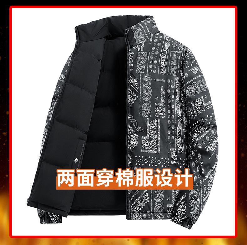 Nueva chaqueta acolchada de algodón de doble cara cálida de otoño e invierno para hombre, marca de moda, acolchada de algodón para exteriores, abrigo holgado informal de moda