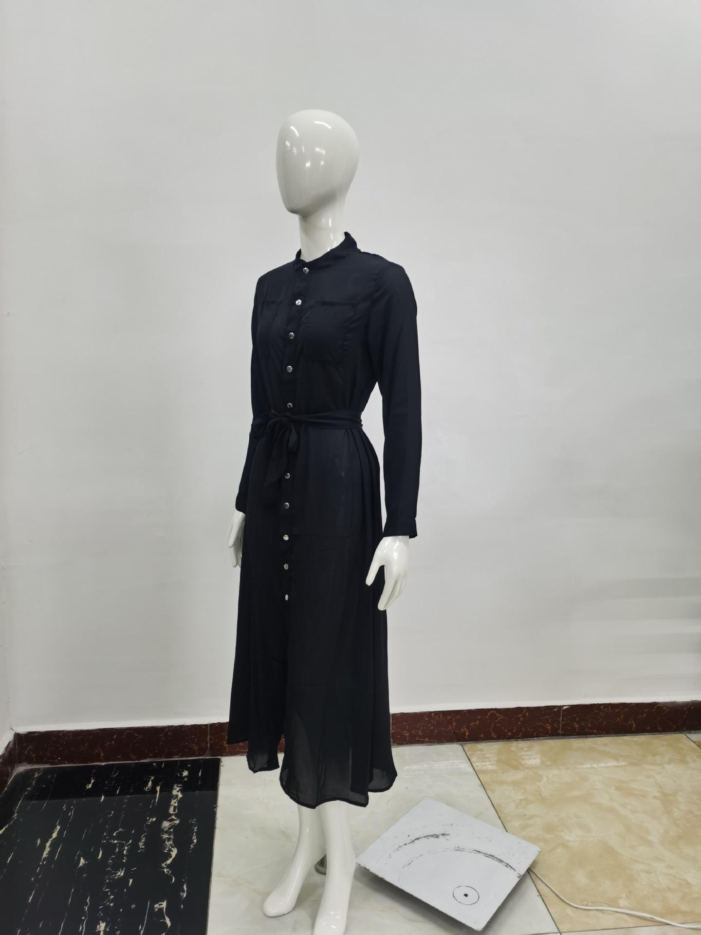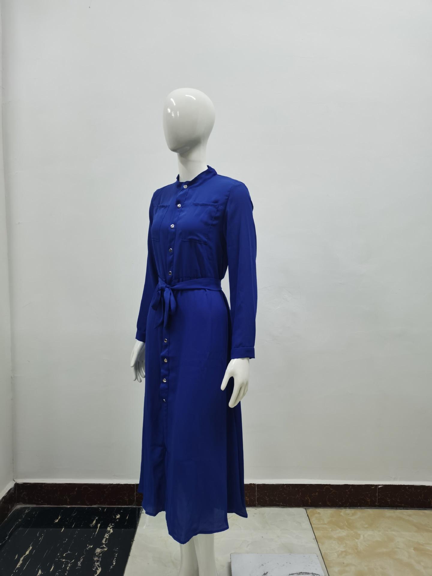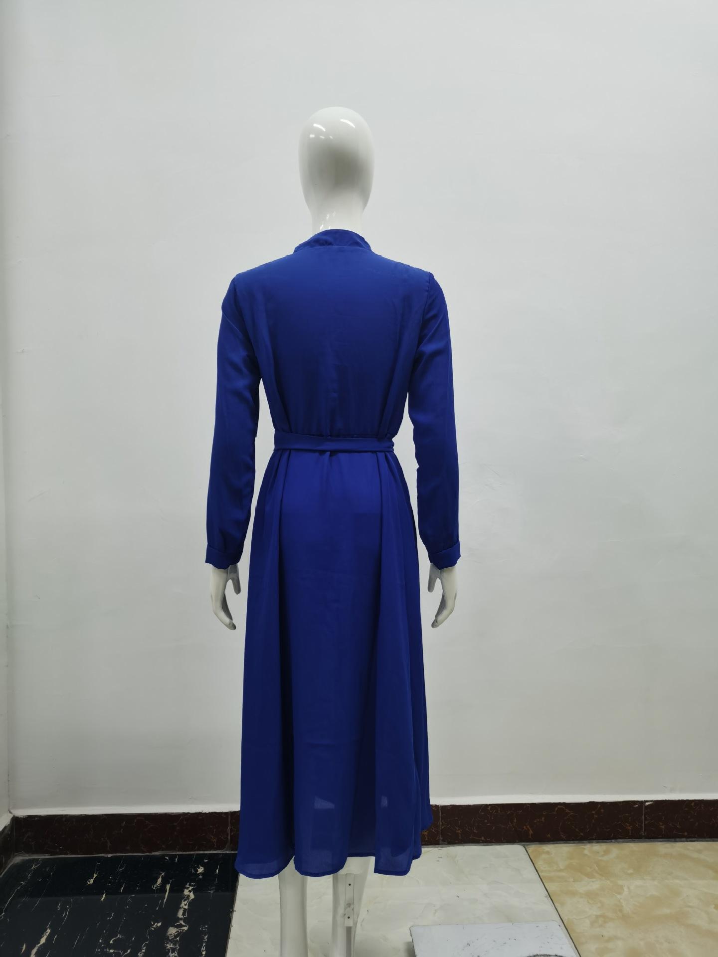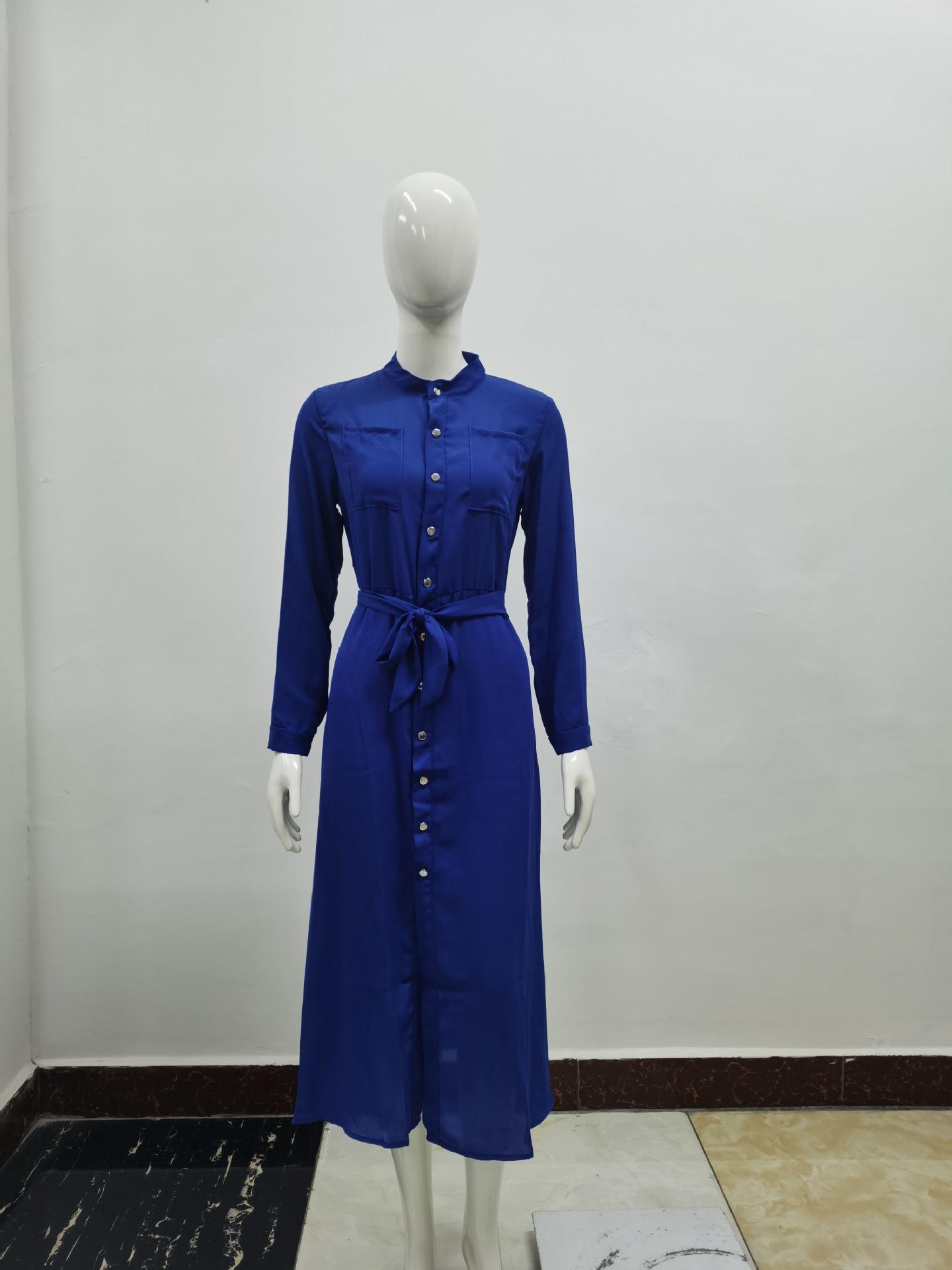 | Vestido de manga larga de color sólido para mujer, nuevo vestido de otoño con temperamento adelgazante y cintura transfronteriza europea y americana de 2024 |