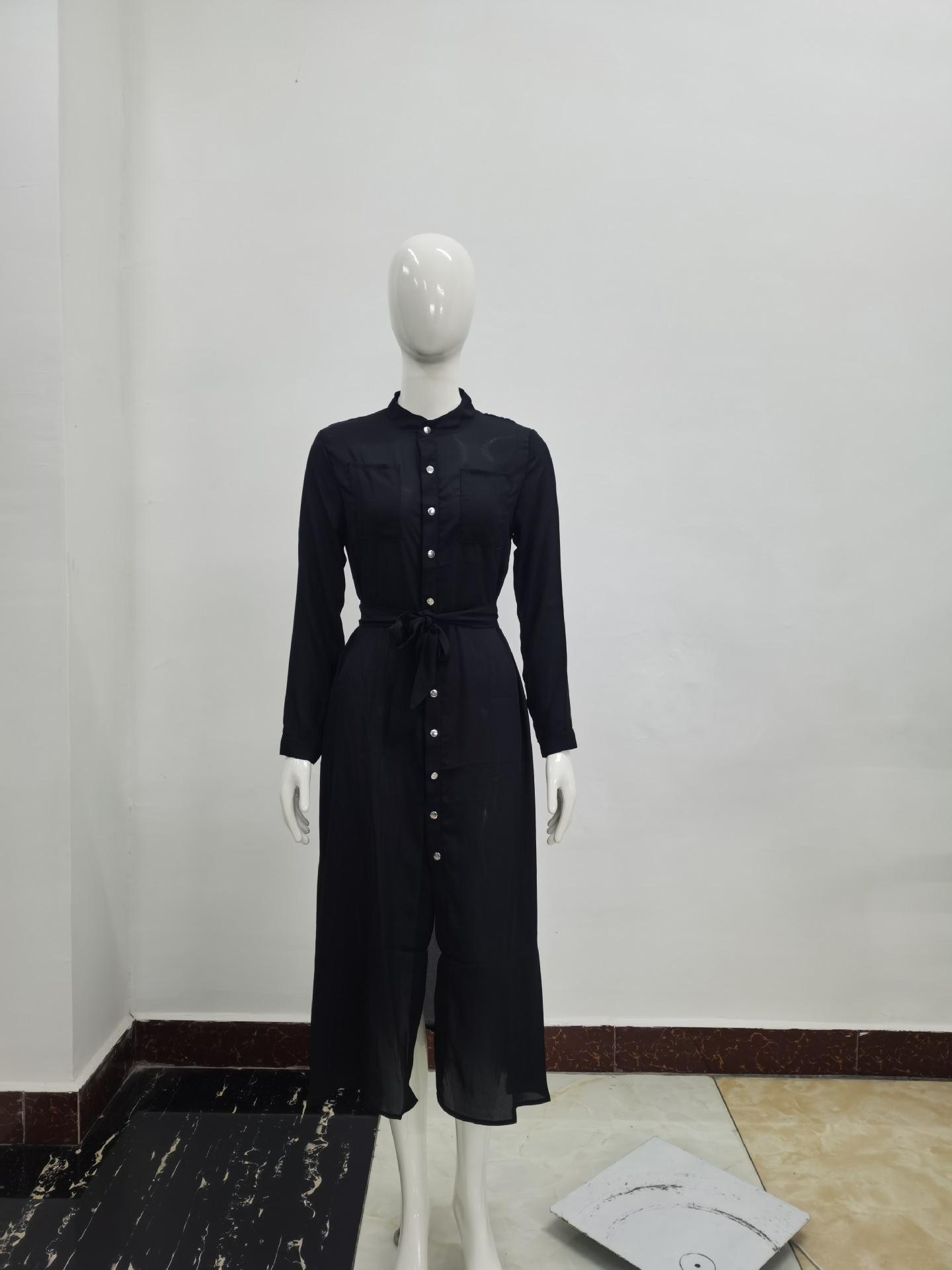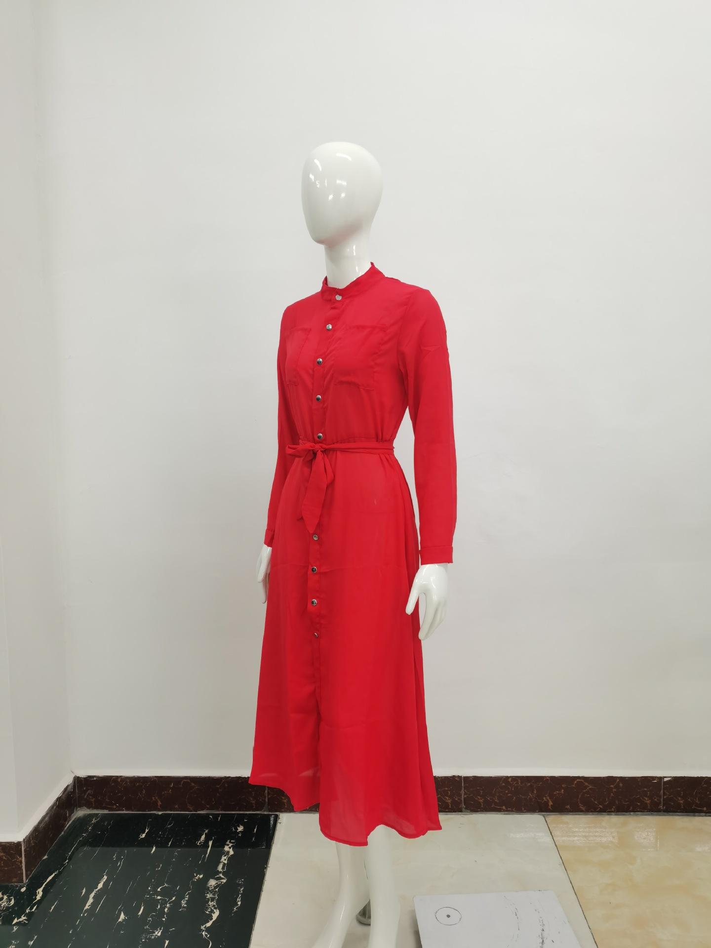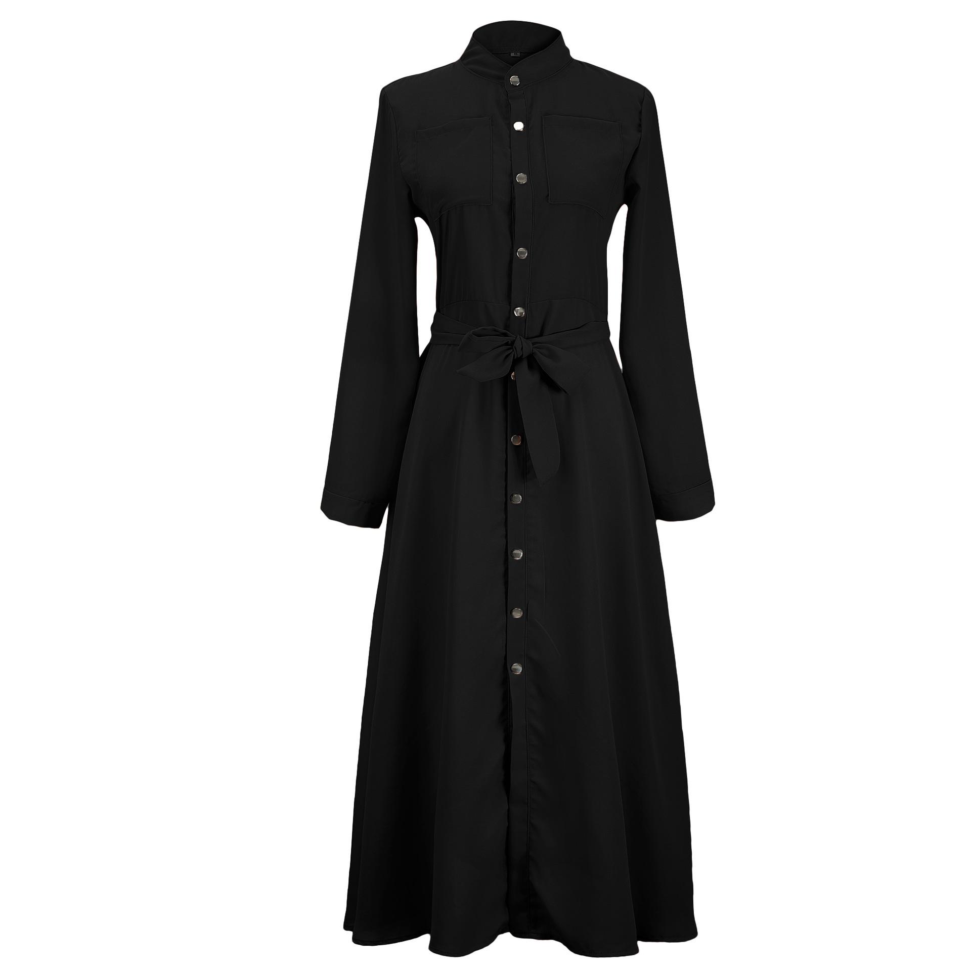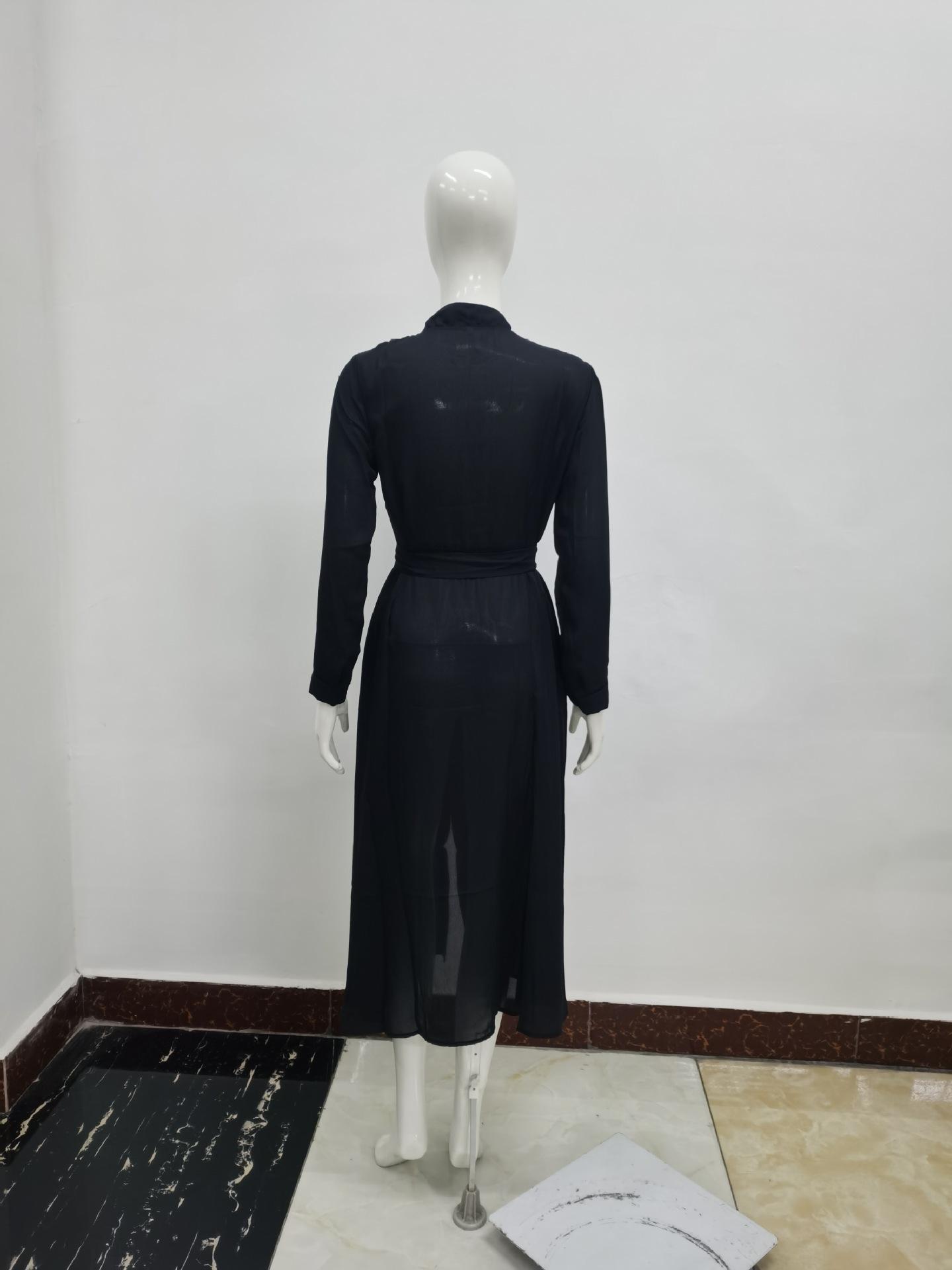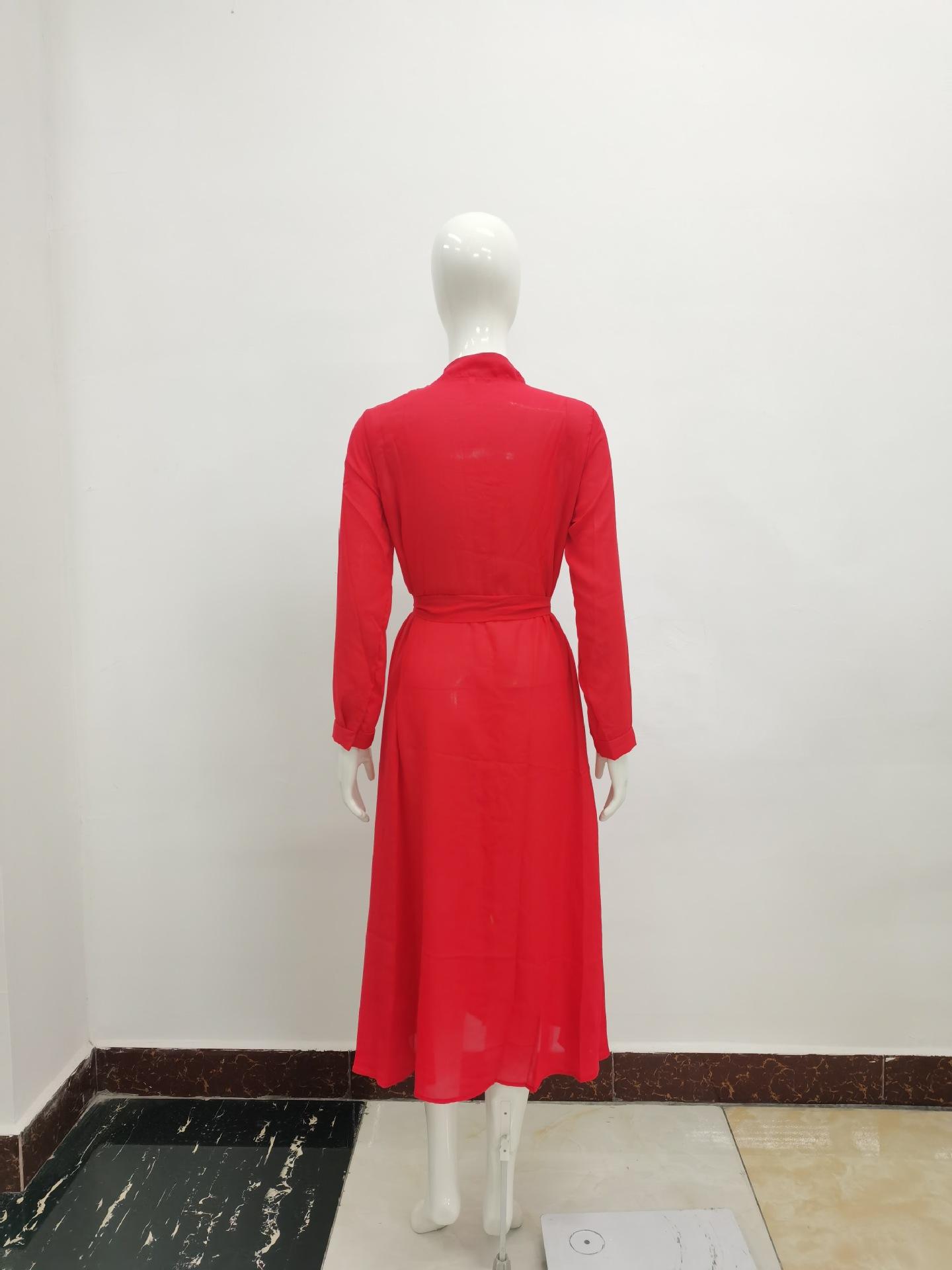 | Vestido de manga larga de color sólido para mujer, nuevo vestido de otoño con temperamento adelgazante y cintura transfronteriza europea y americana de 2024 |