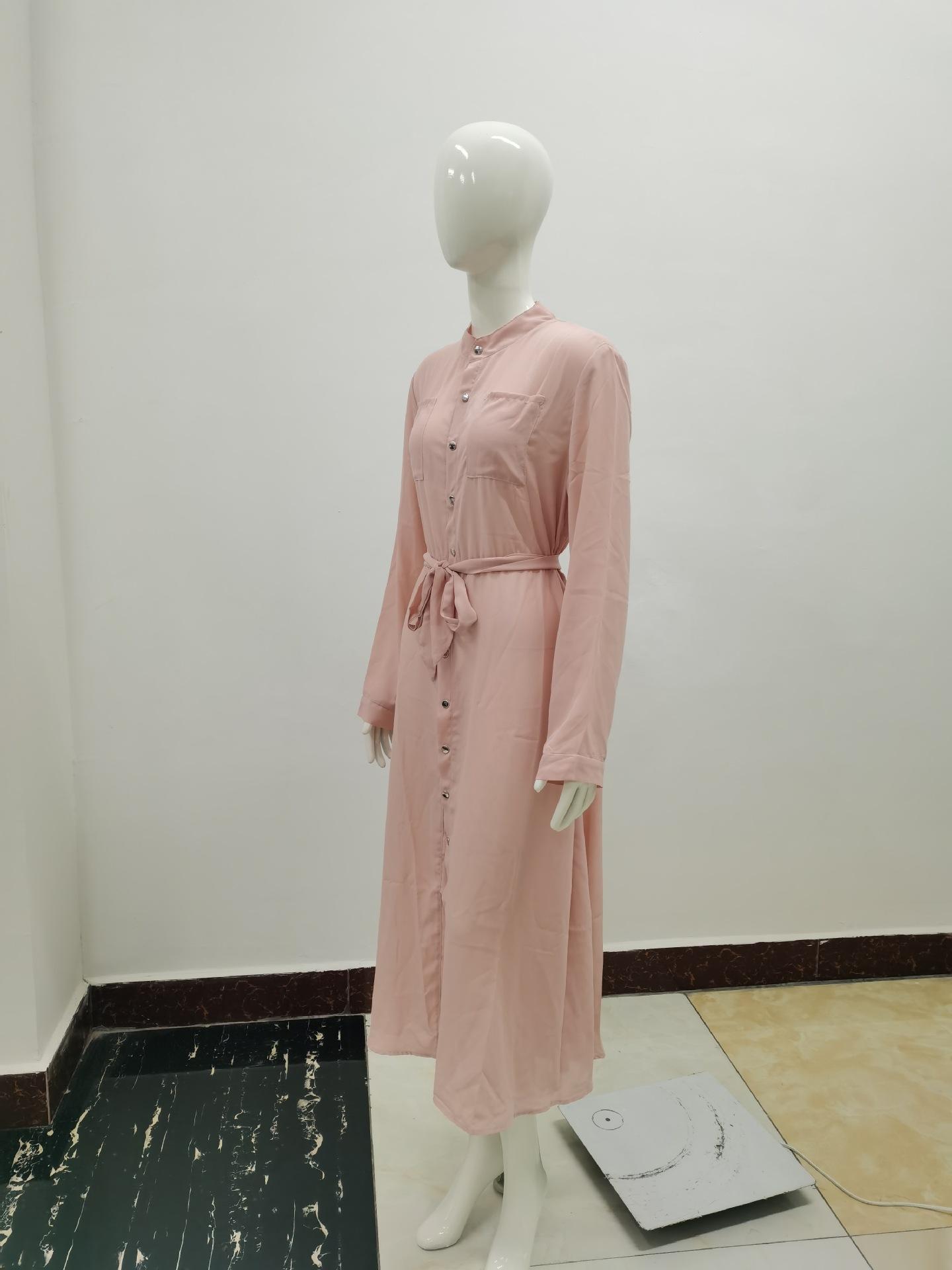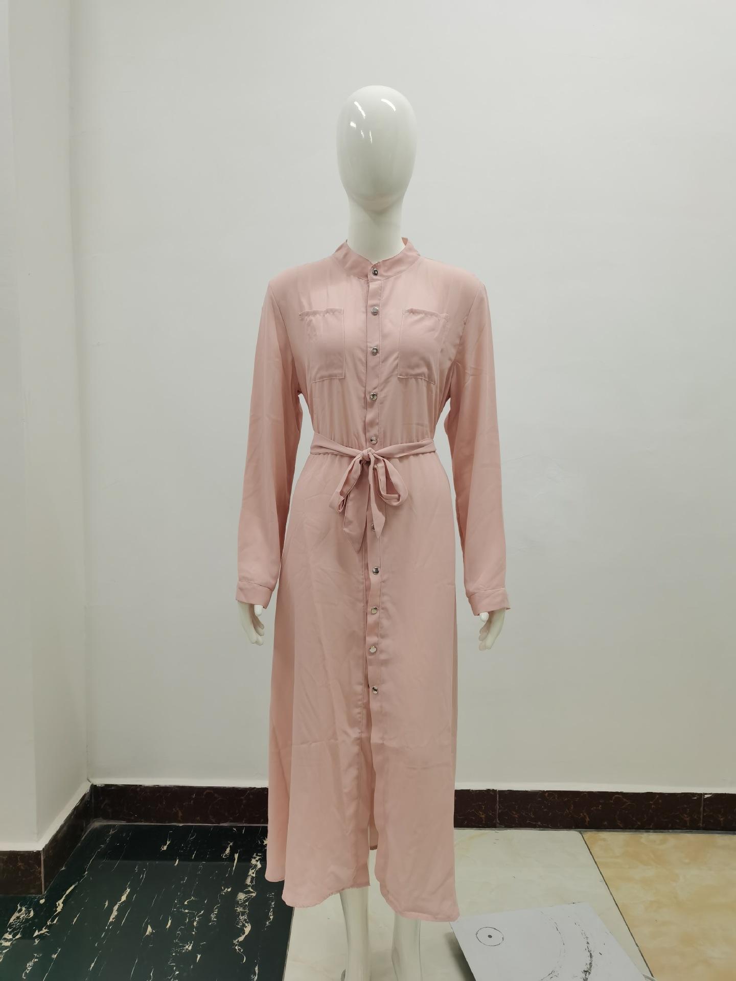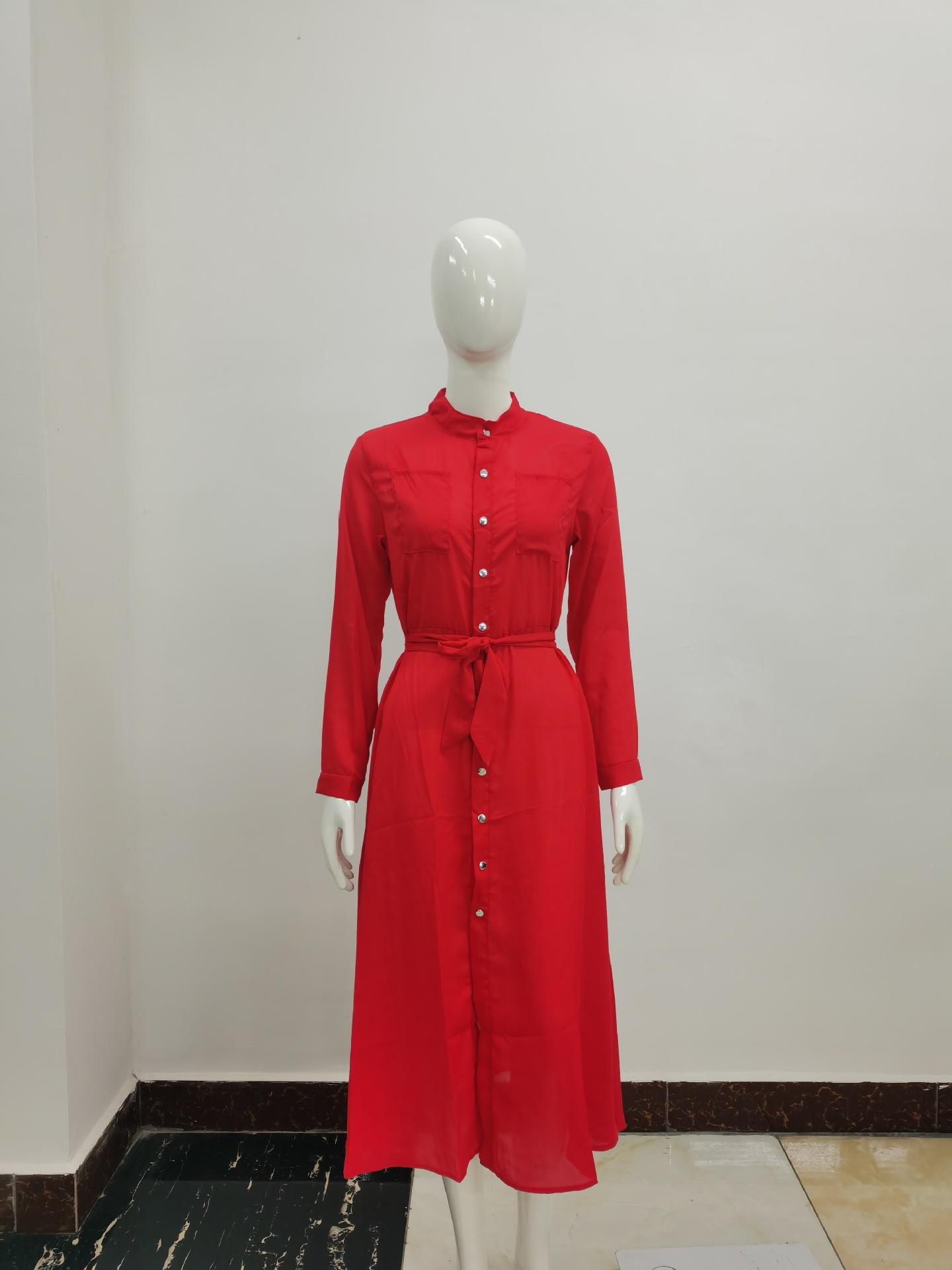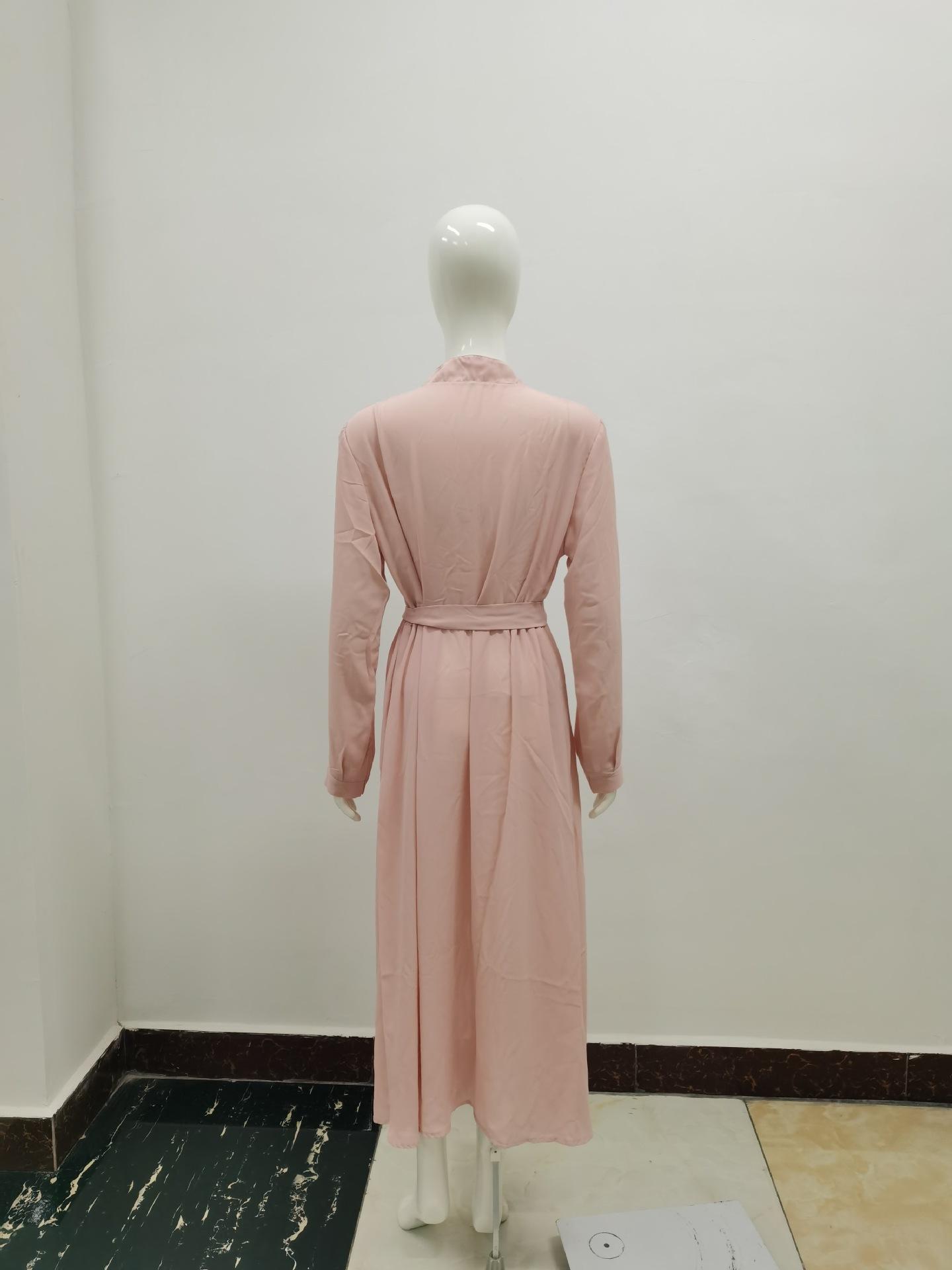 | Vestido de manga larga de color sólido para mujer, nuevo vestido de otoño con temperamento adelgazante y cintura transfronteriza europea y americana de 2024 |