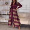 | 2024 nueva ropa de mujer, falda transfronteriza europea y americana de Amazon, ropa de mujer de talla grande, vestido holgado de manga larga con estampado de colores en contraste |