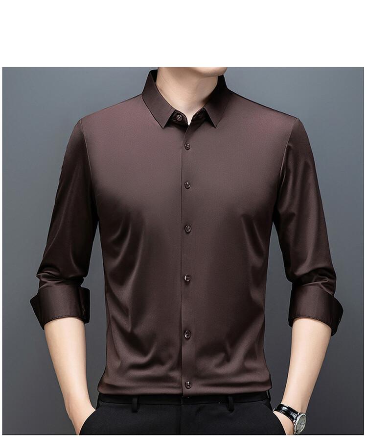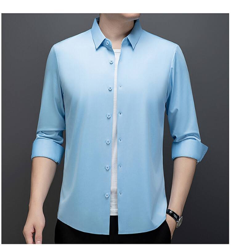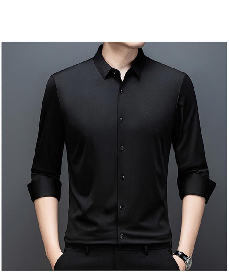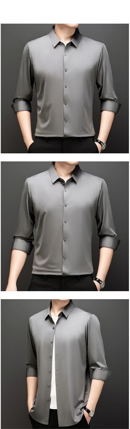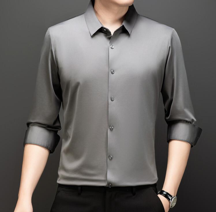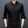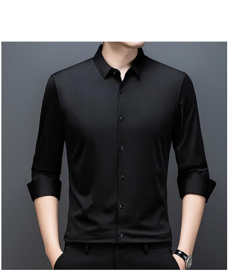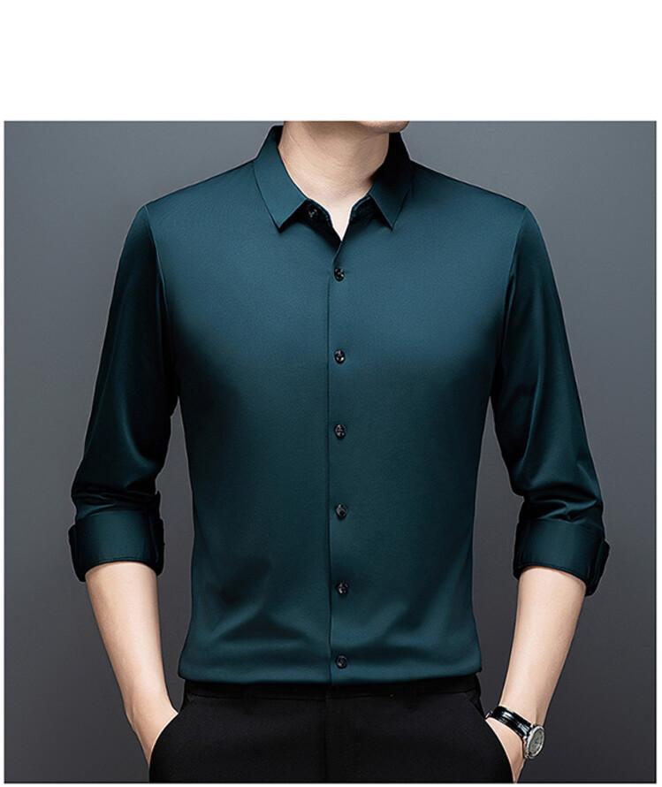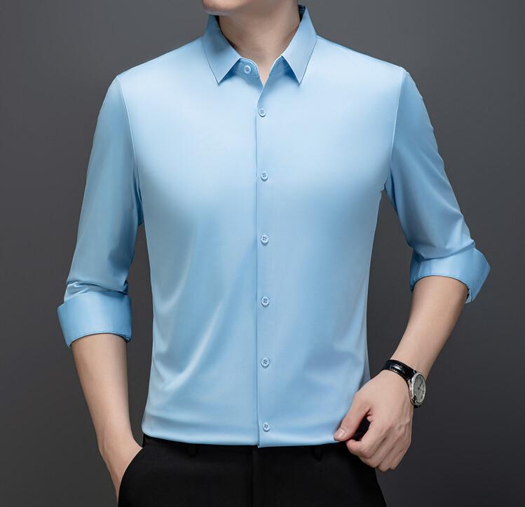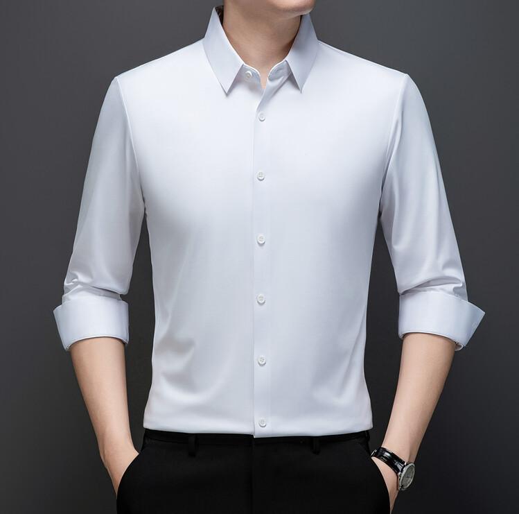 Camisa de manga larga fina y elástica de seda de hielo para hombre, informal, de primavera y otoño, para negocios, sin planchado, de color liso, para trabajo