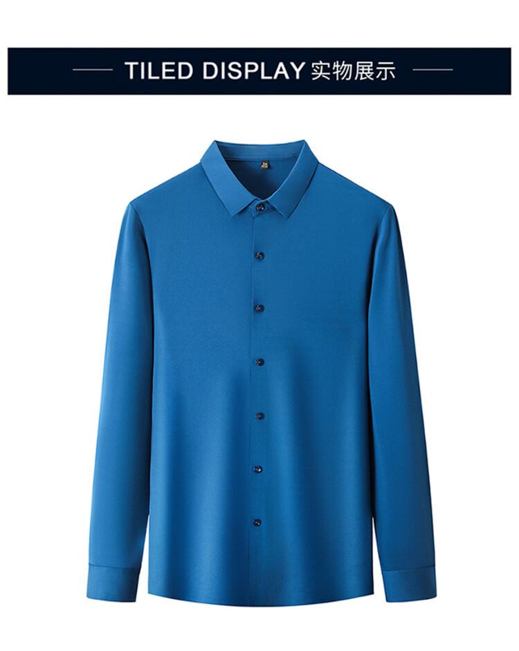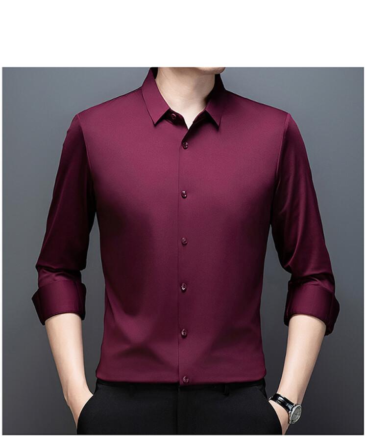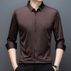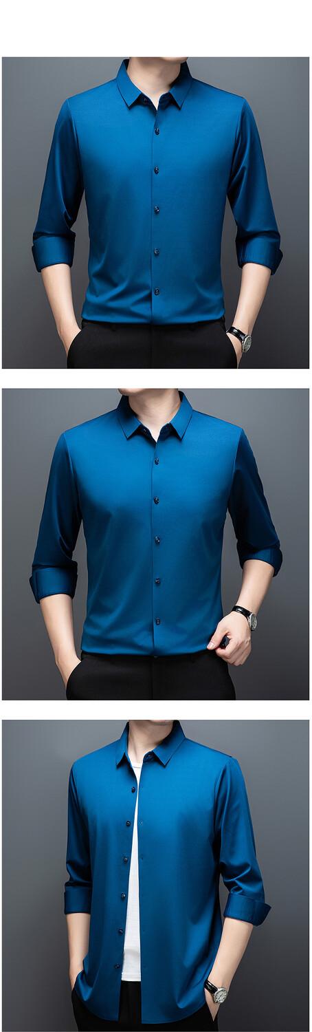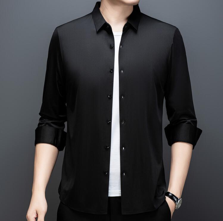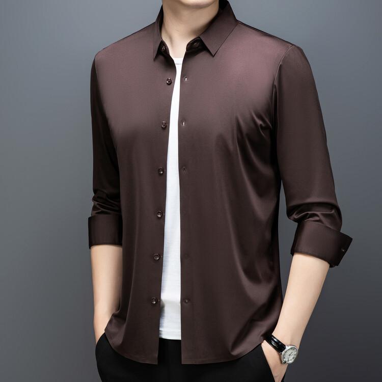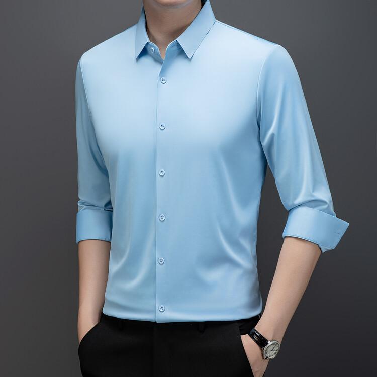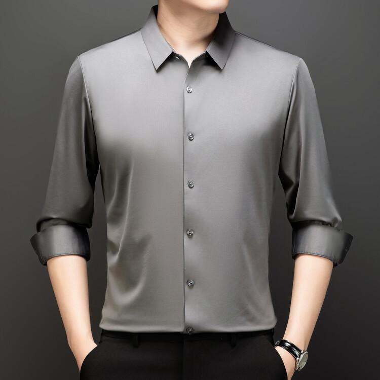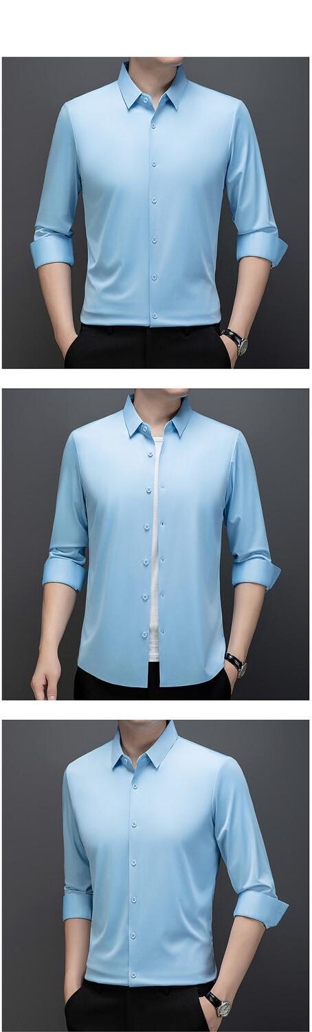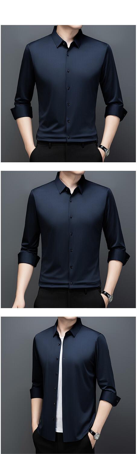 Camisa de manga larga fina y elástica de seda de hielo para hombre, informal, de primavera y otoño, para negocios, sin planchado, de color liso, para trabajo