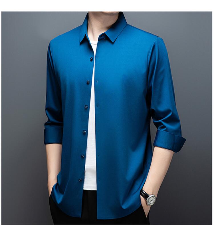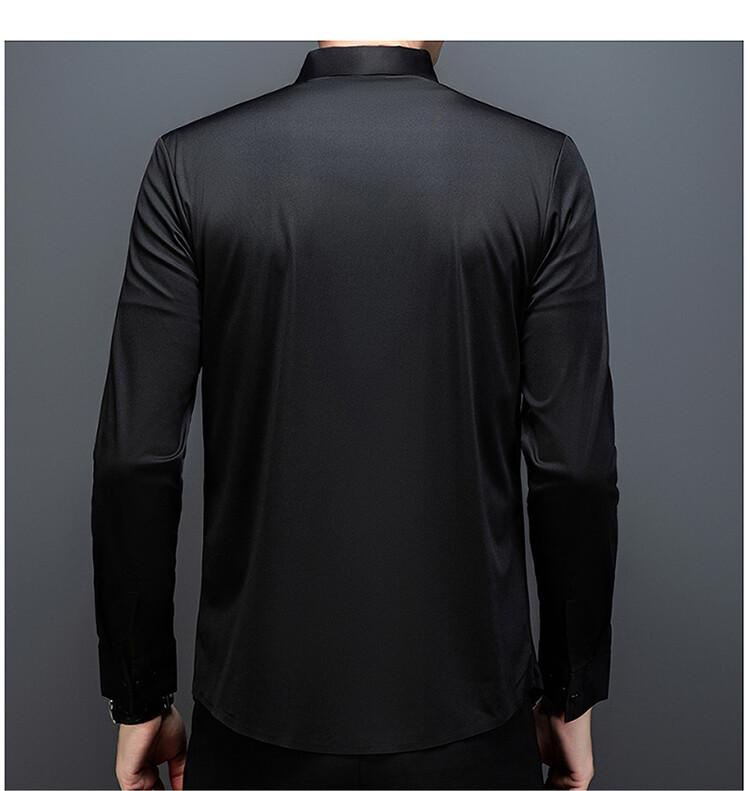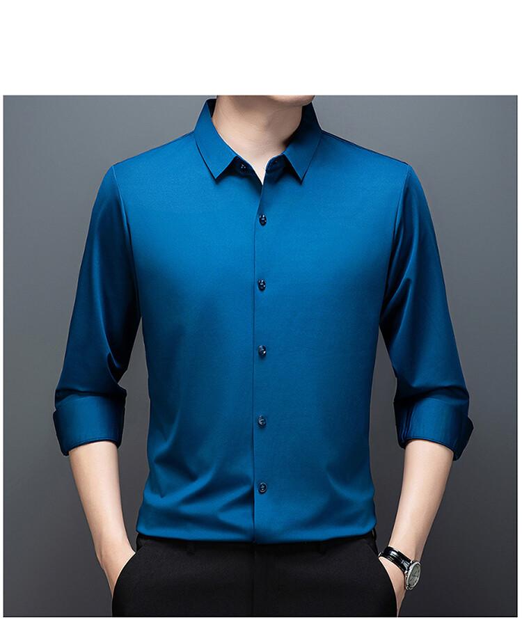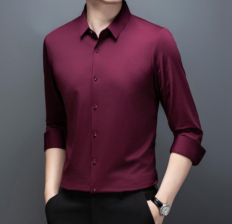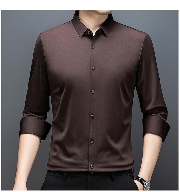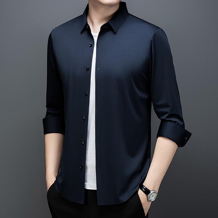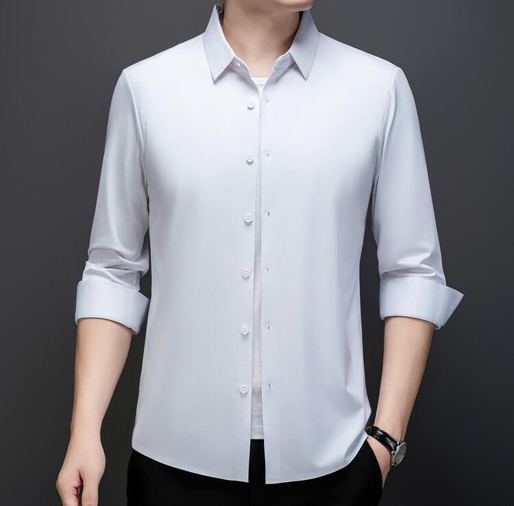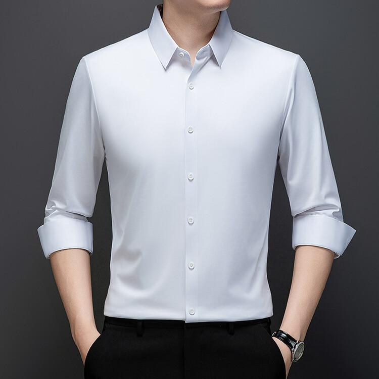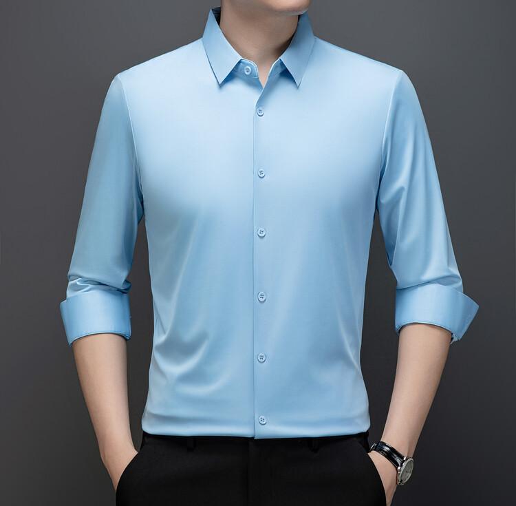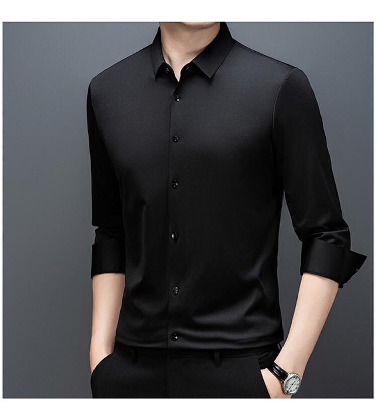 Camisa de manga larga fina y elástica de seda de hielo para hombre, informal, de primavera y otoño, para negocios, sin planchado, de color liso, para trabajo