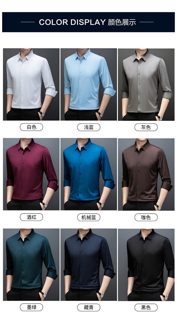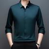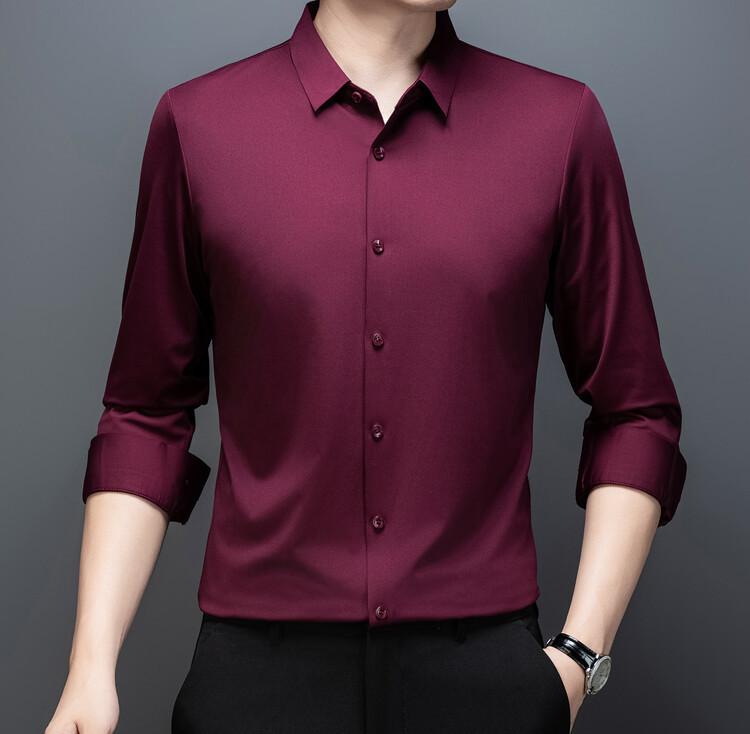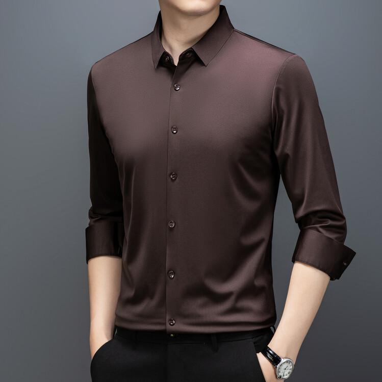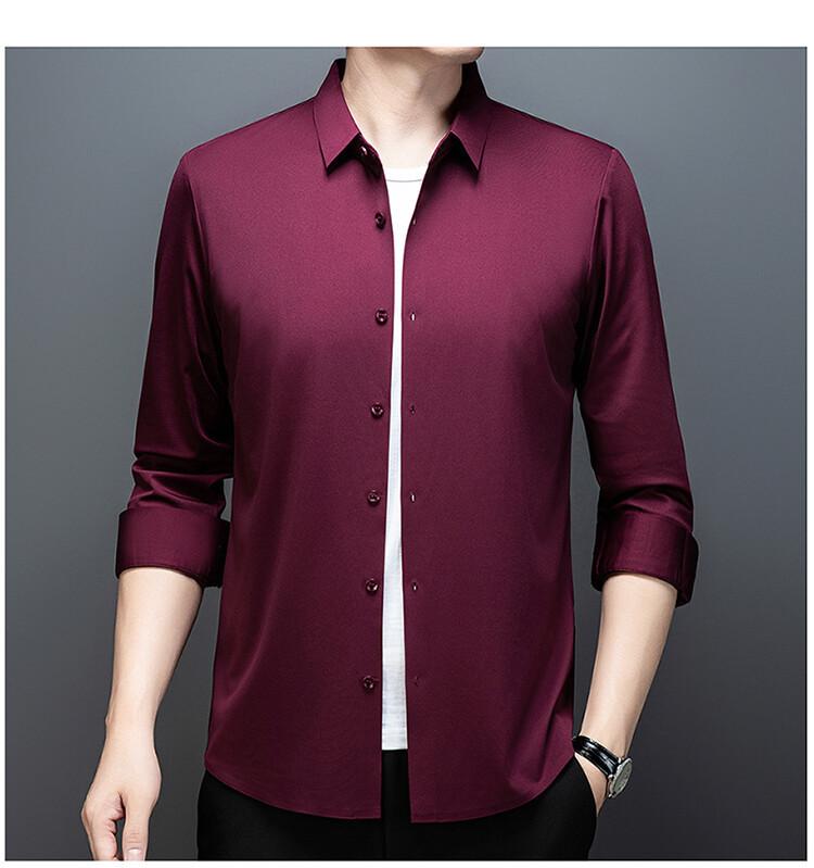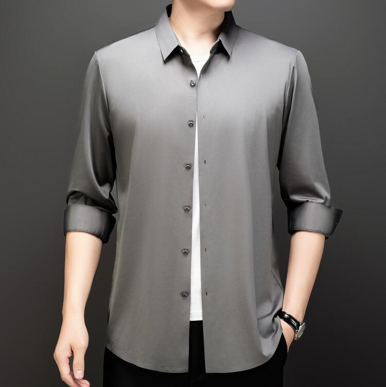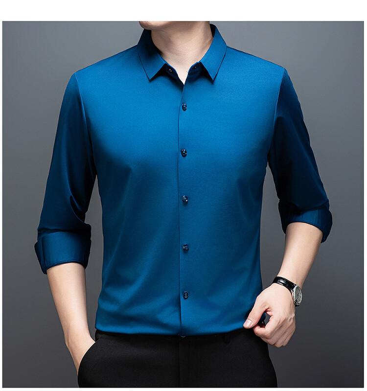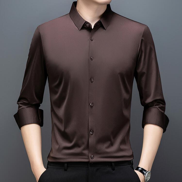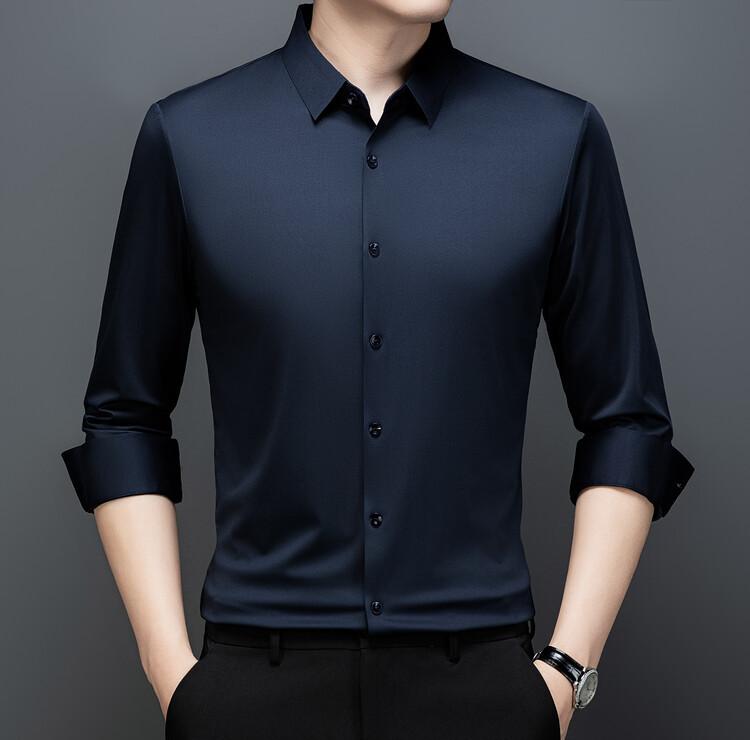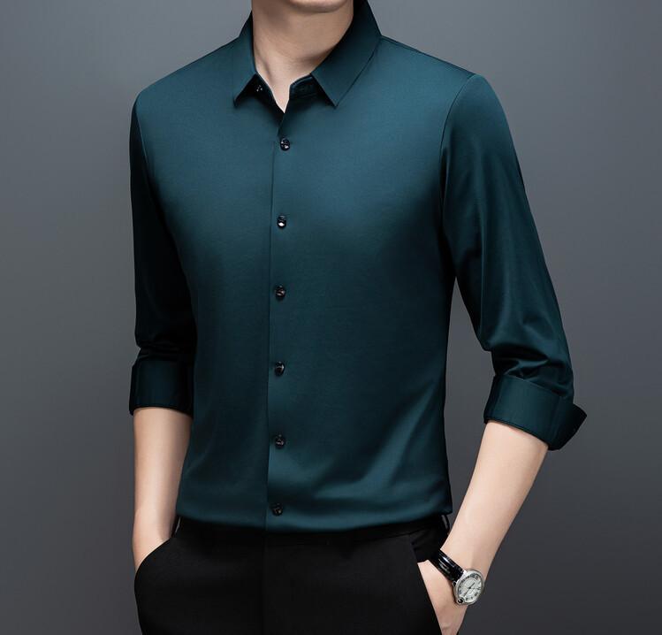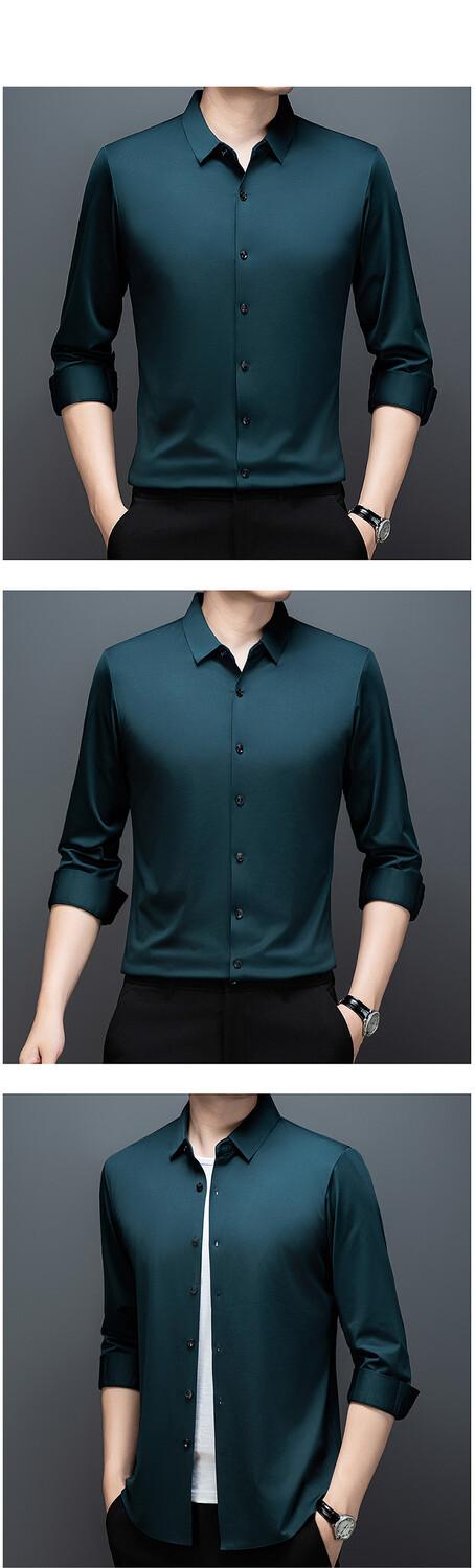 Camisa de manga larga fina y elástica de seda de hielo para hombre, informal, de primavera y otoño, para negocios, sin planchado, de color liso, para trabajo