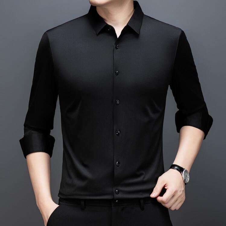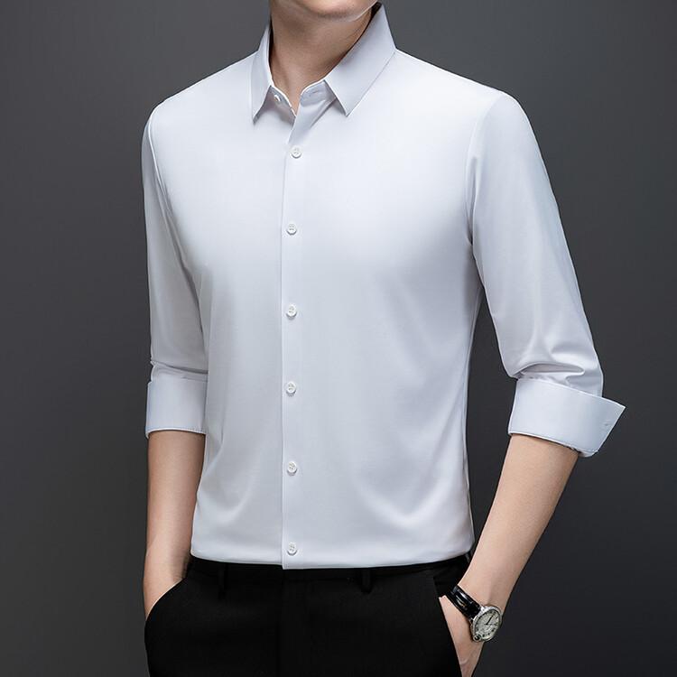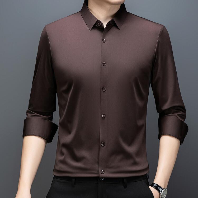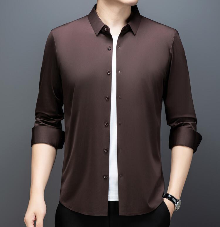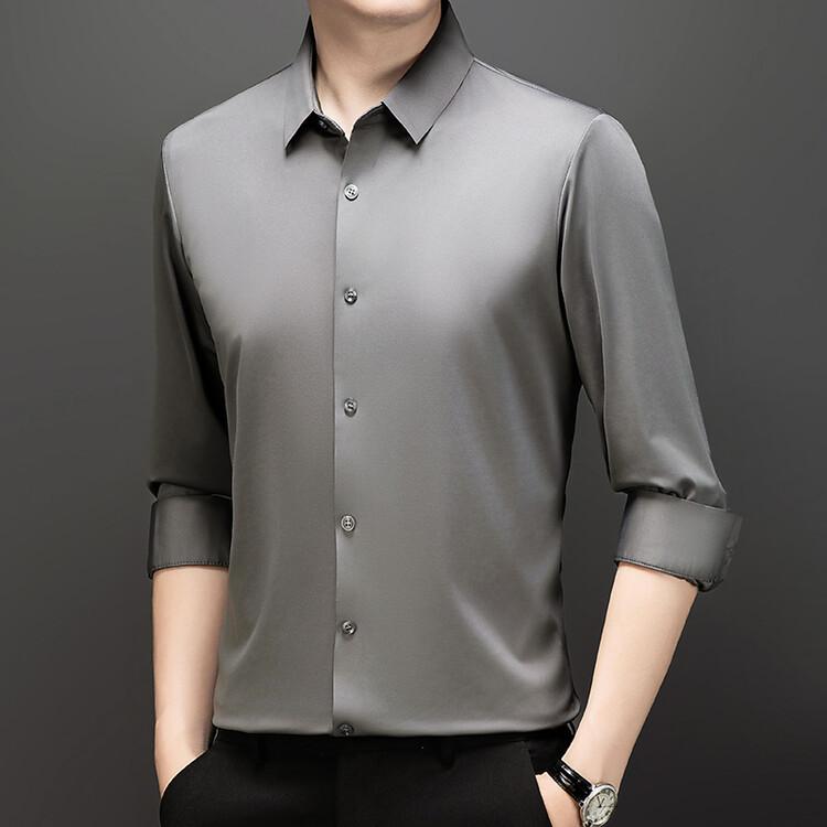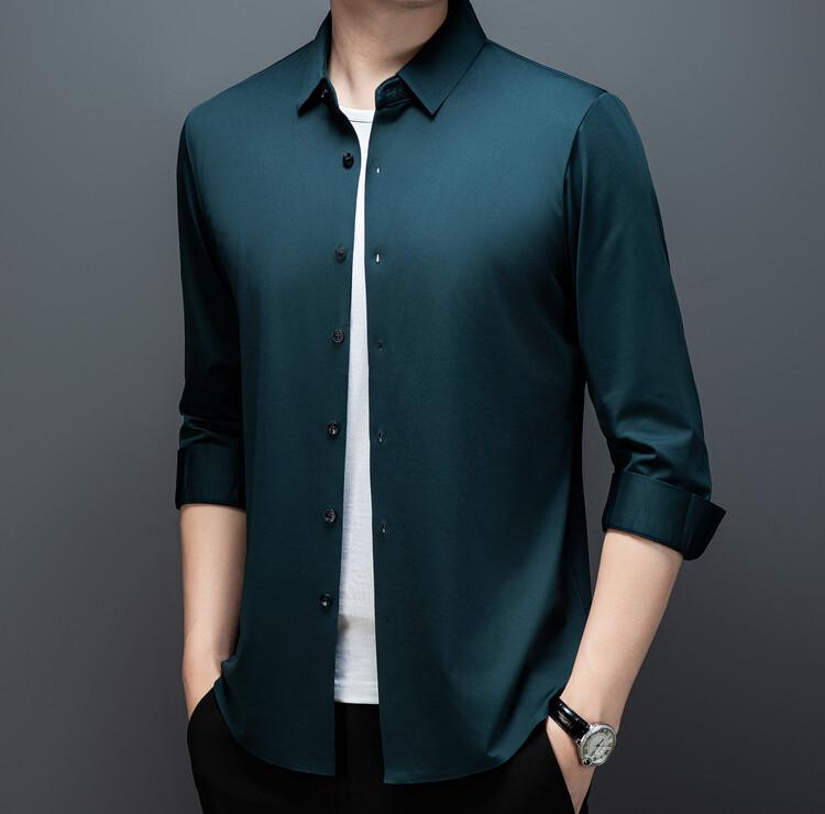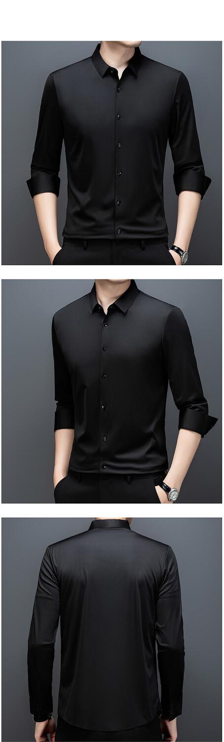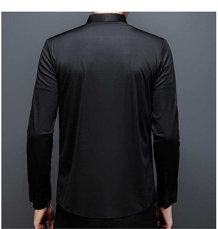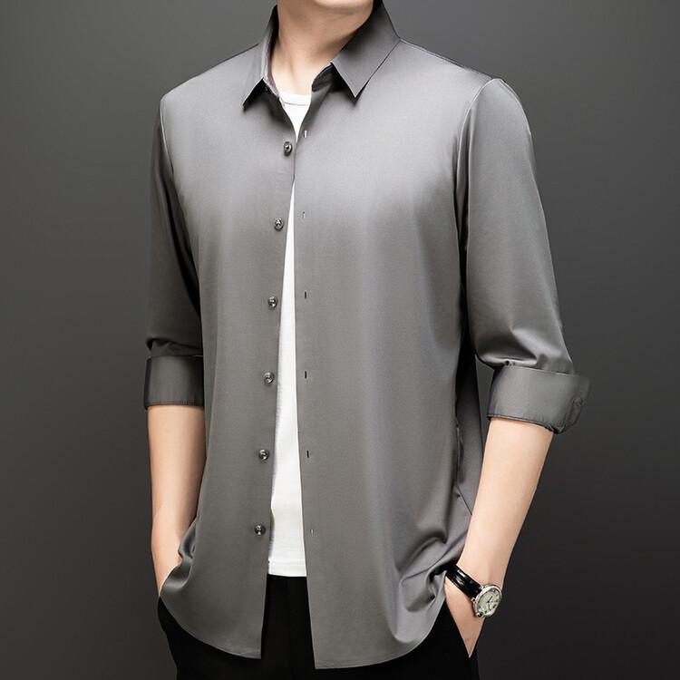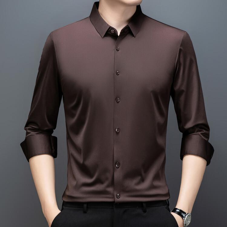Camisa de manga larga fina y elástica de seda de hielo para hombre, informal, de primavera y otoño, para negocios, sin planchado, de color liso, para trabajo