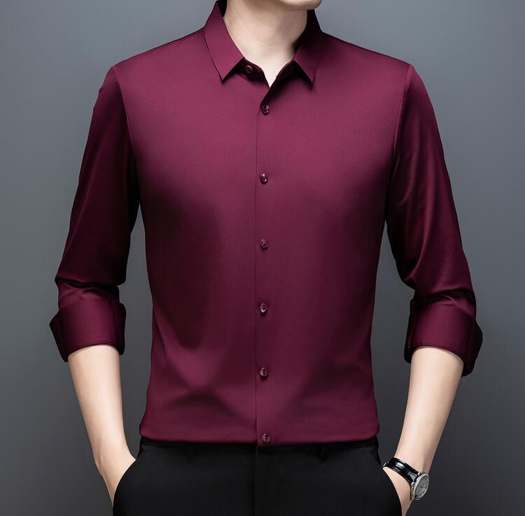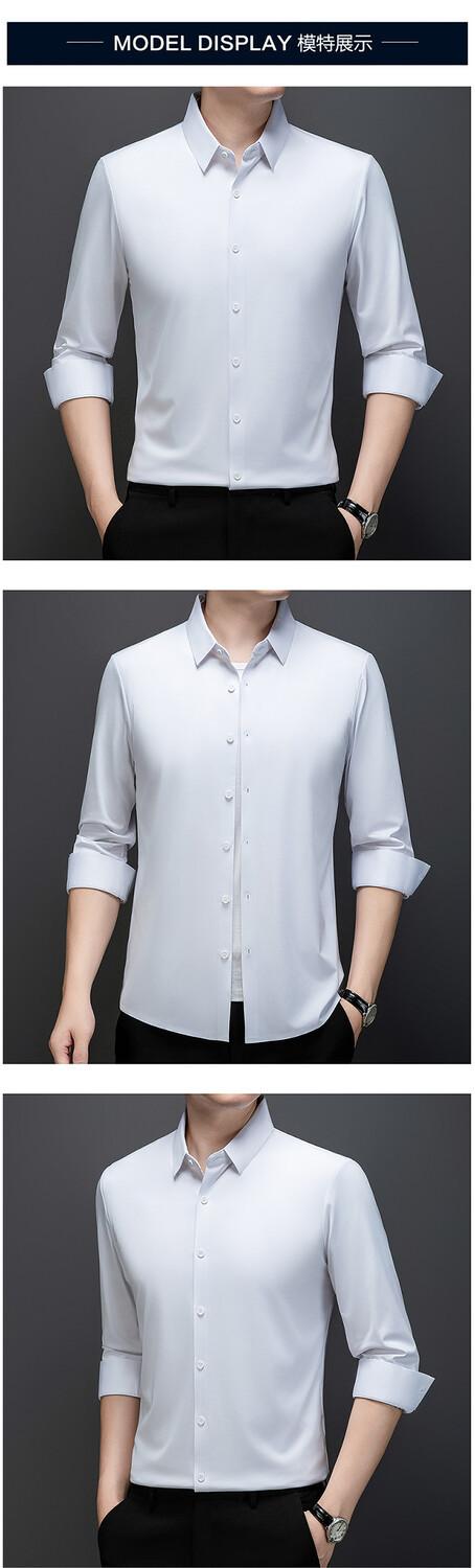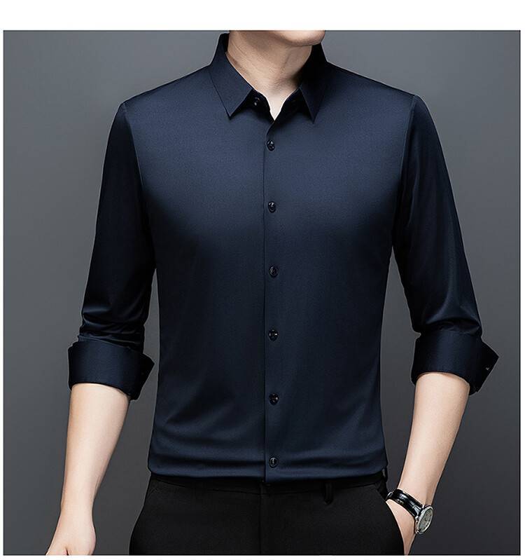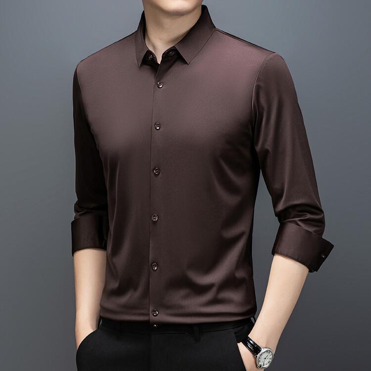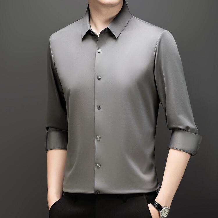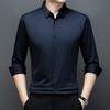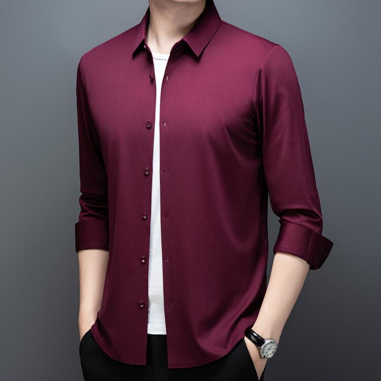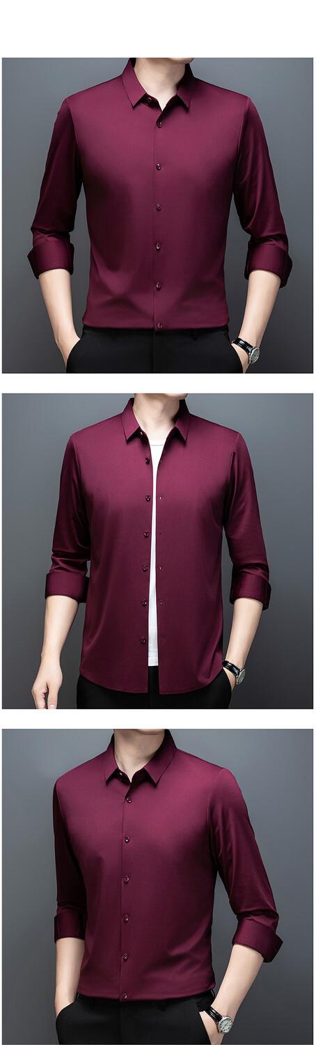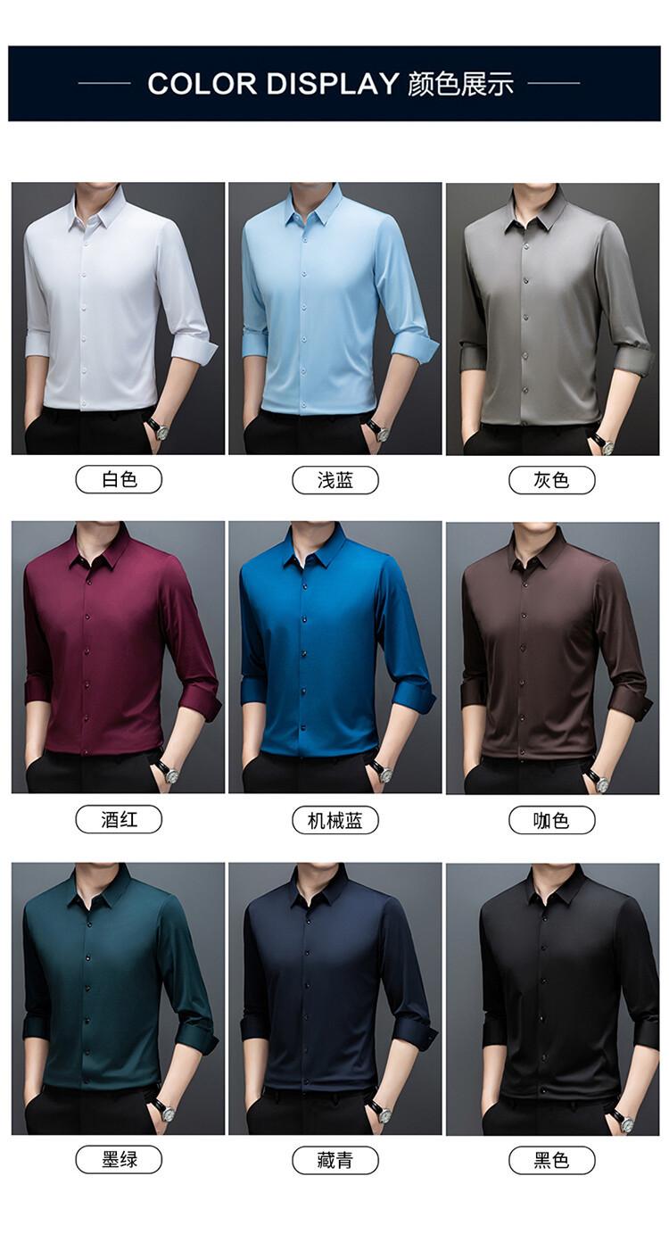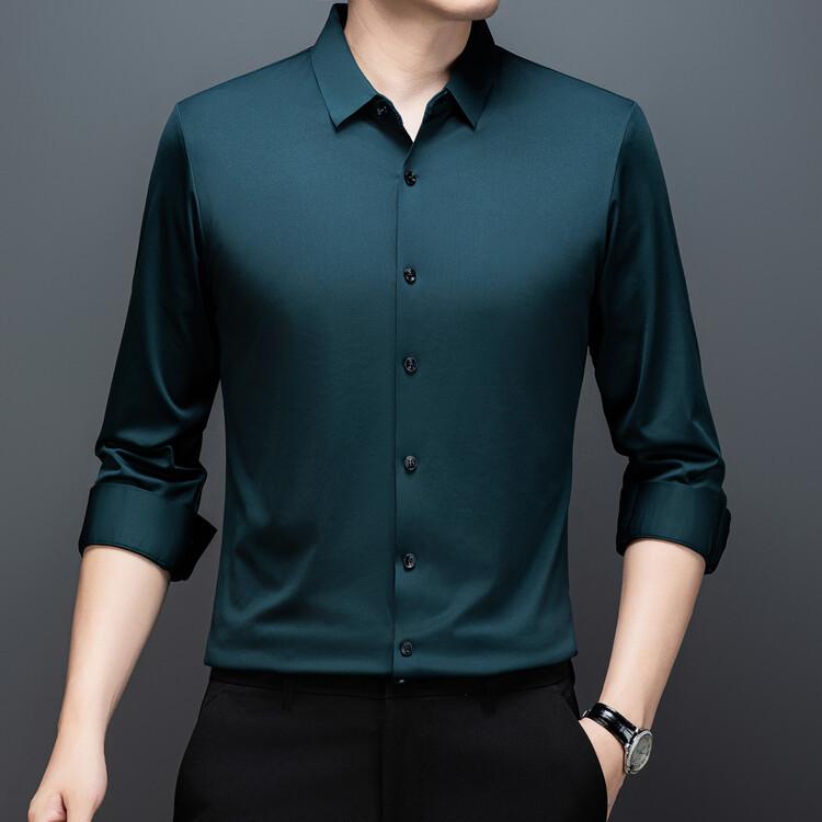 Camisa de manga larga fina y elástica de seda de hielo para hombre, informal, de primavera y otoño, para negocios, sin planchado, de color liso, para trabajo