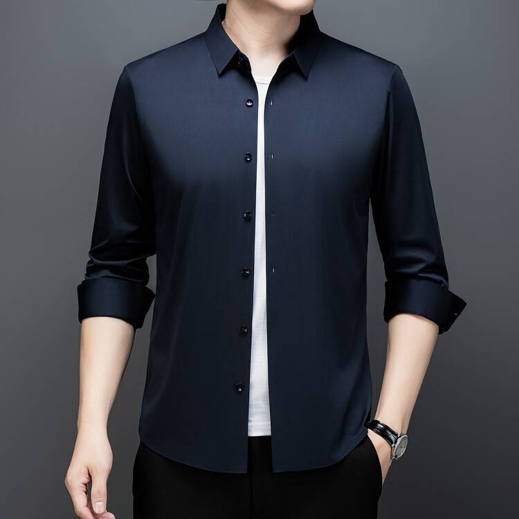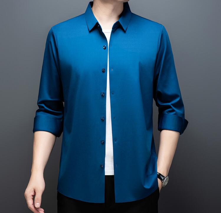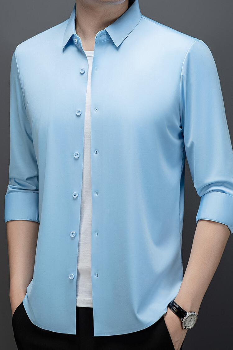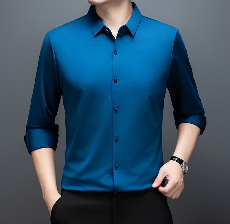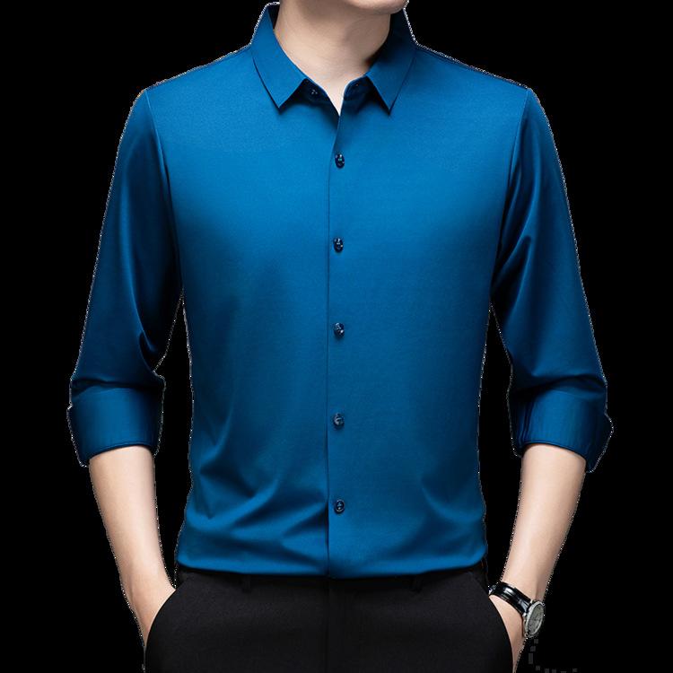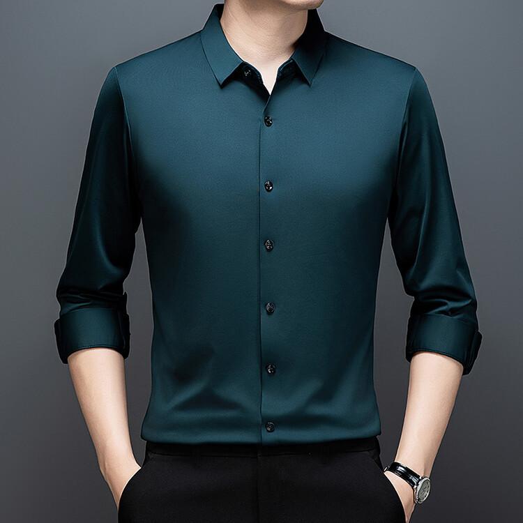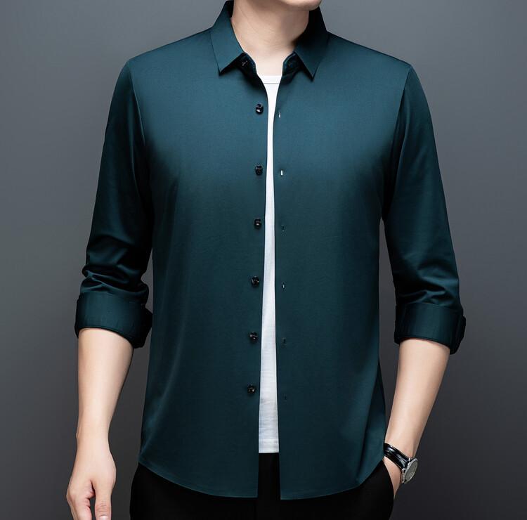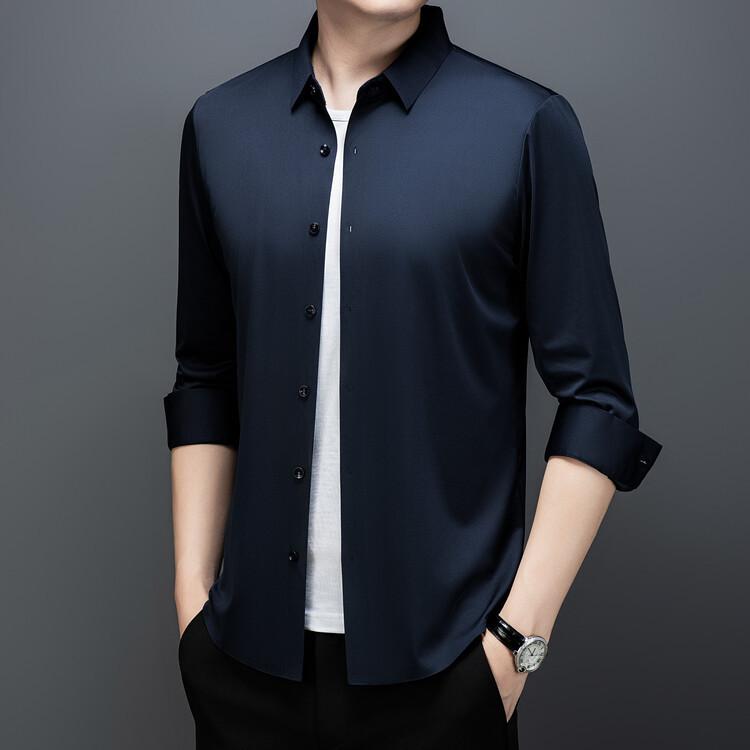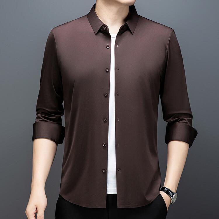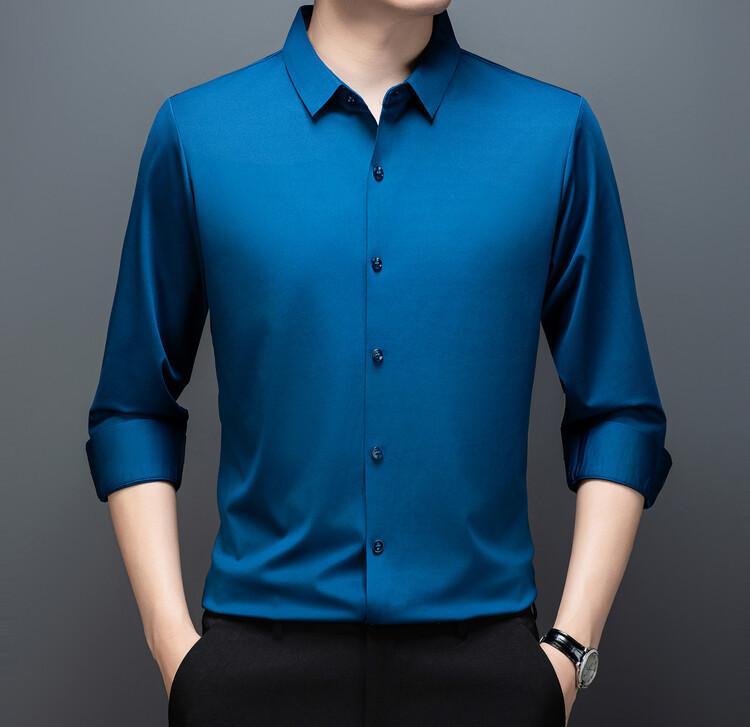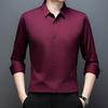 Camisa de manga larga fina y elástica de seda de hielo para hombre, informal, de primavera y otoño, para negocios, sin planchado, de color liso, para trabajo