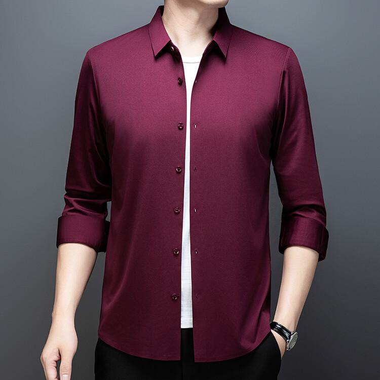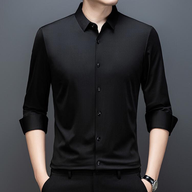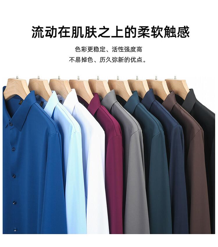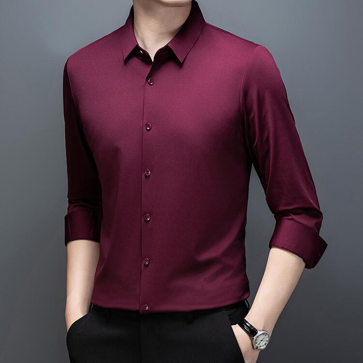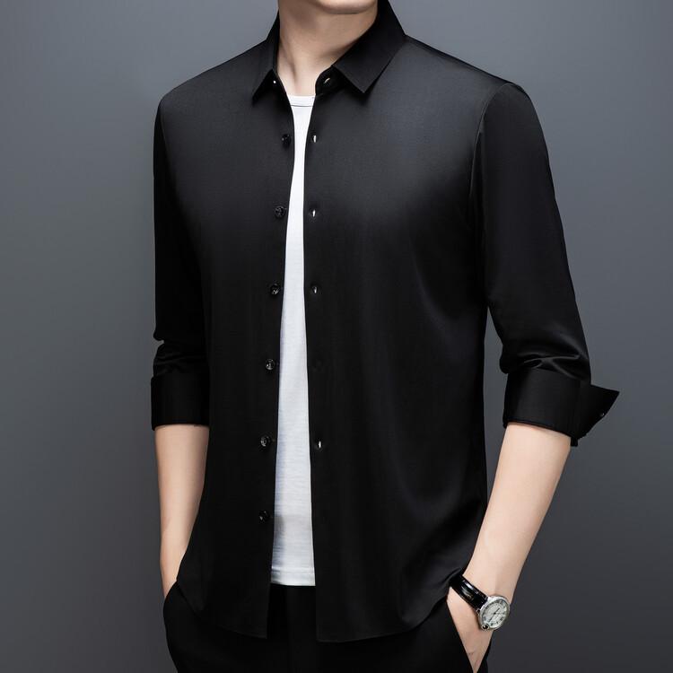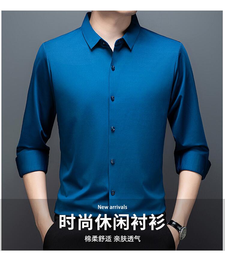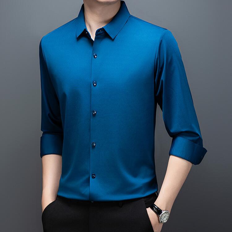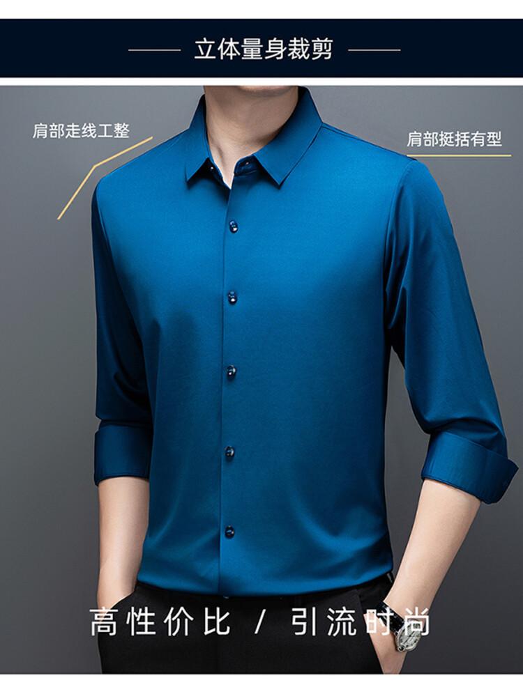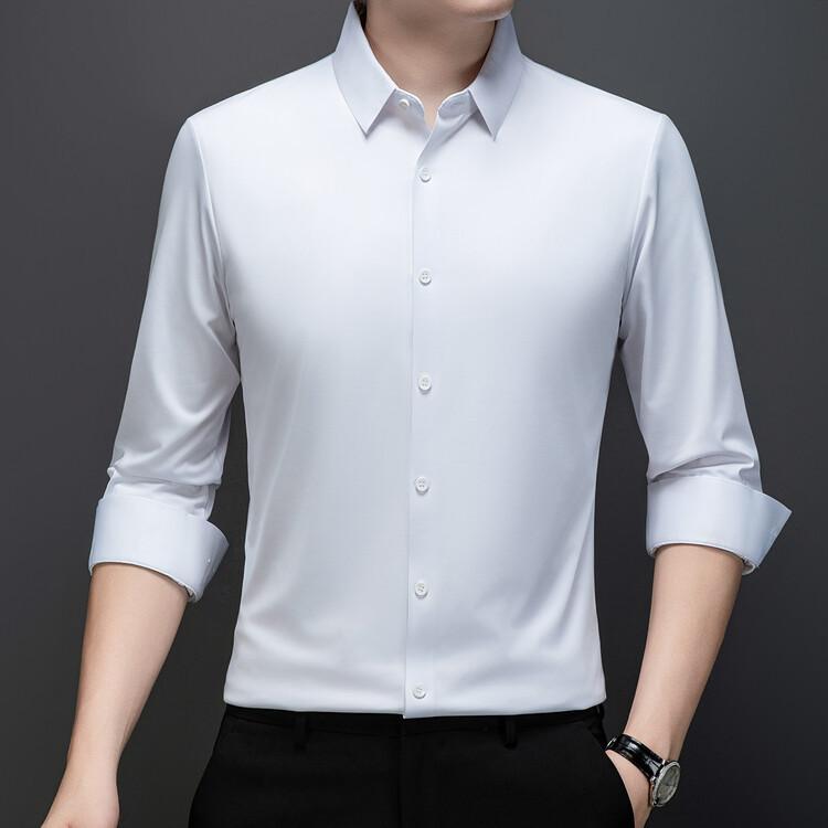 Camisa de manga larga fina y elástica de seda de hielo para hombre, informal, de primavera y otoño, para negocios, sin planchado, de color liso, para trabajo