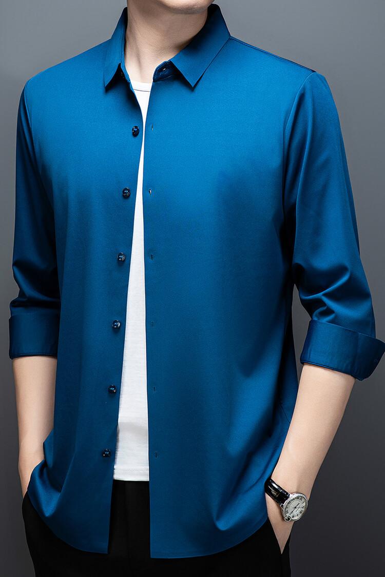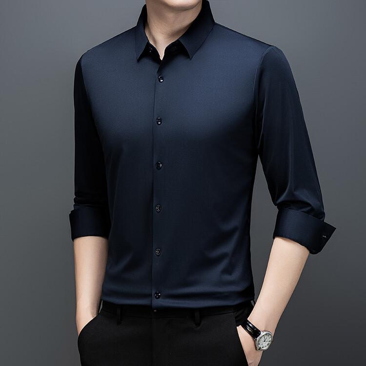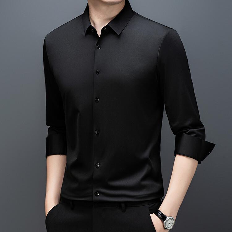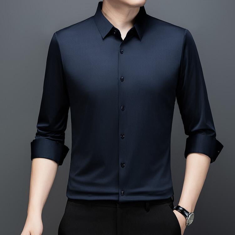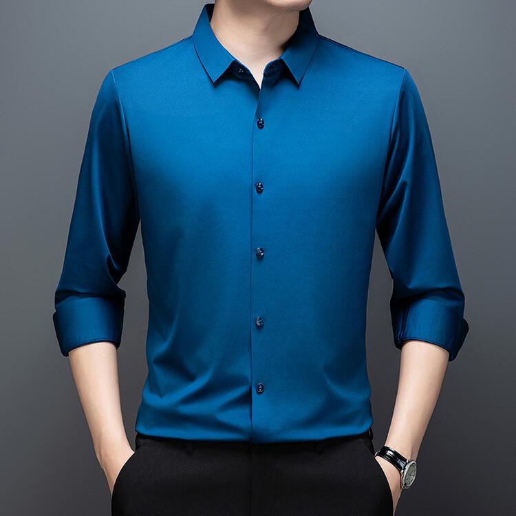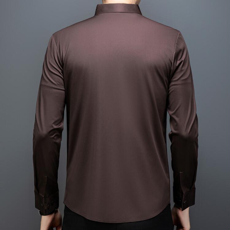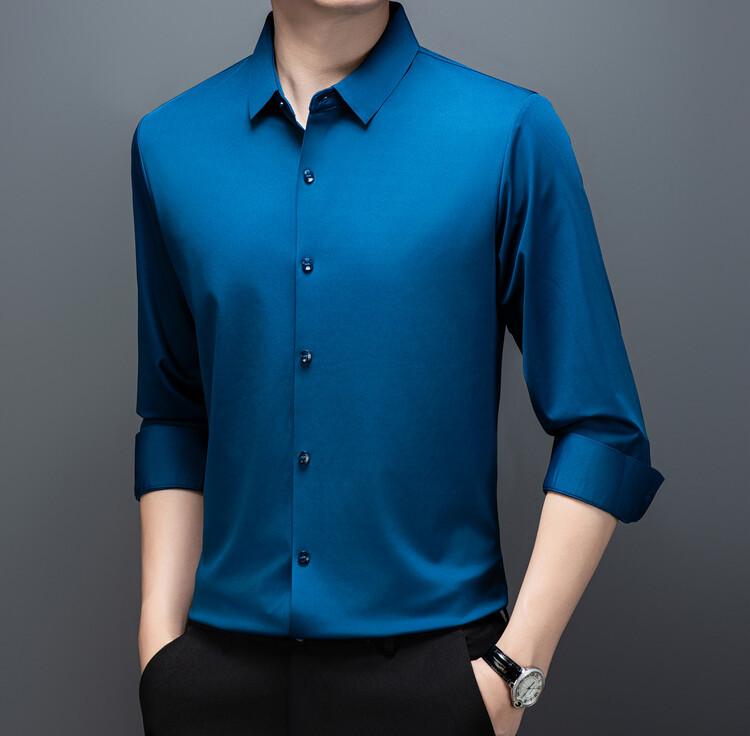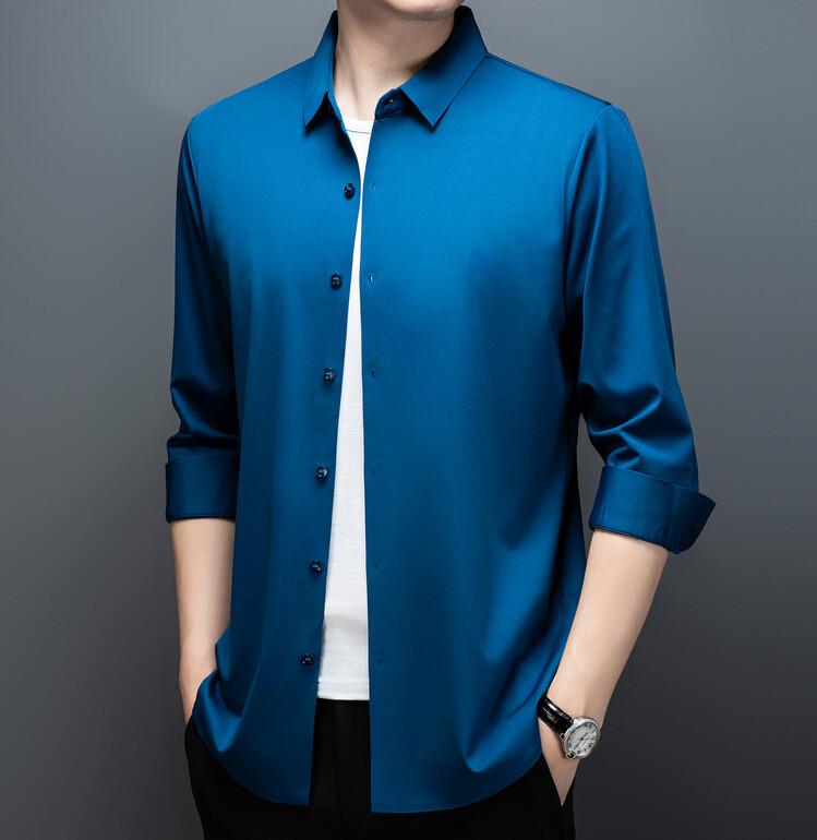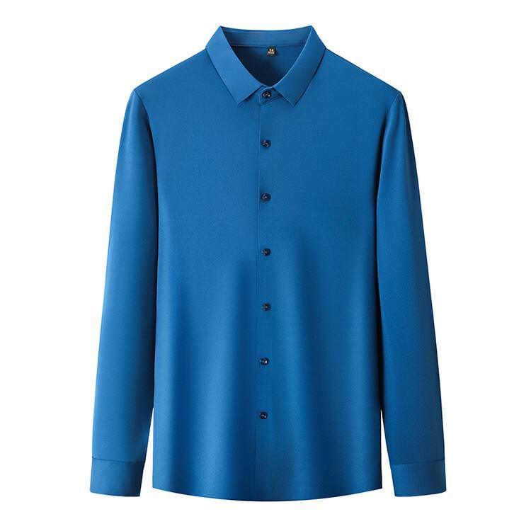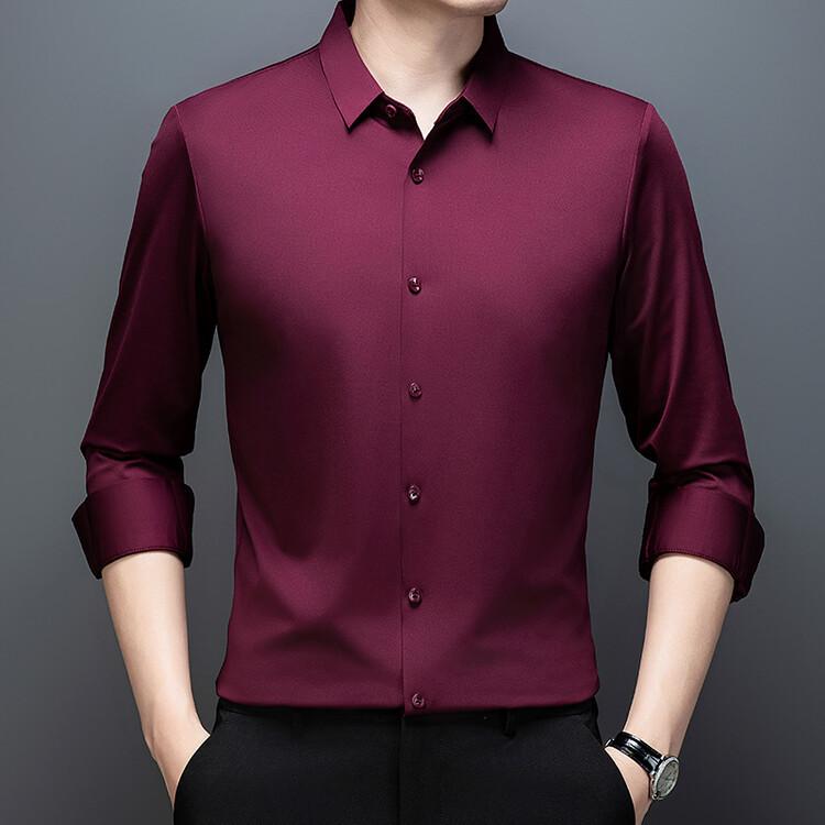Camisa de manga larga fina y elástica de seda de hielo para hombre, informal, de primavera y otoño, para negocios, sin planchado, de color liso, para trabajo