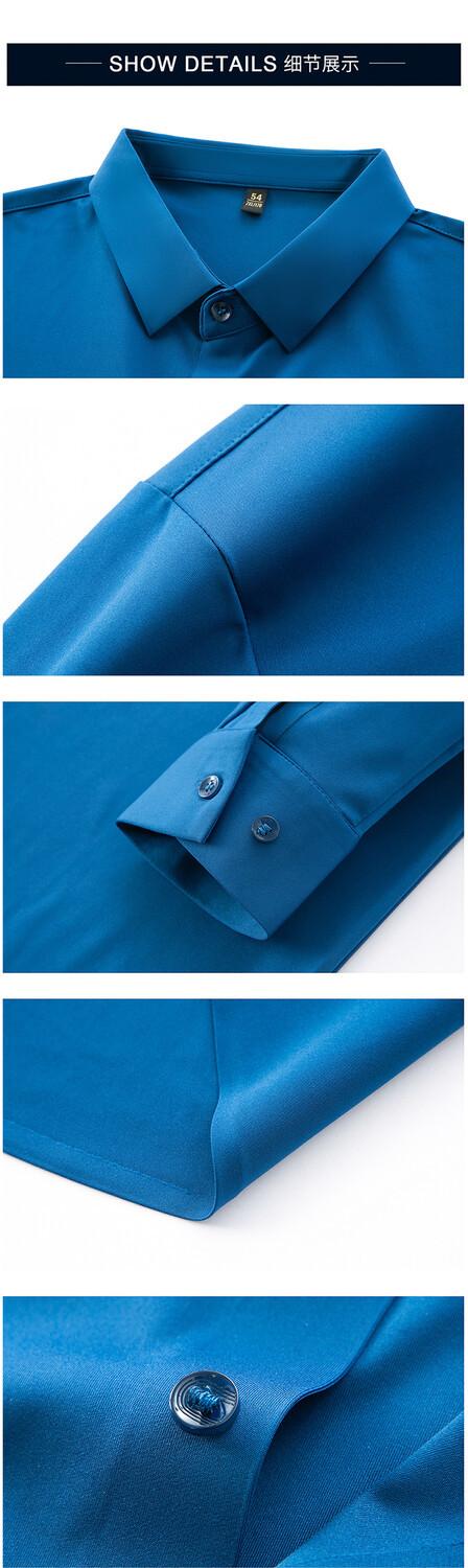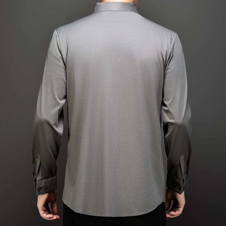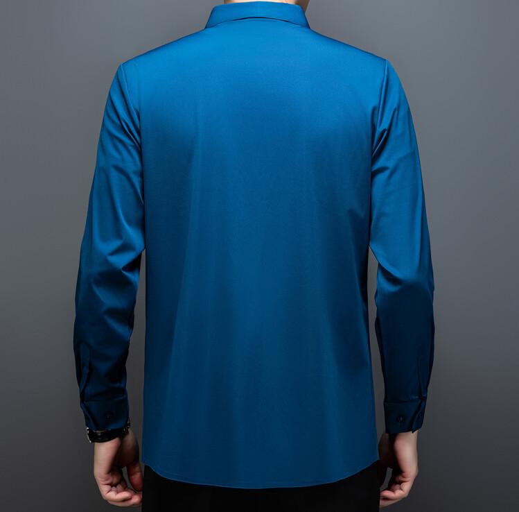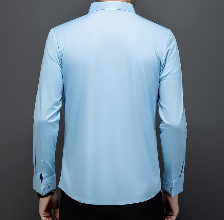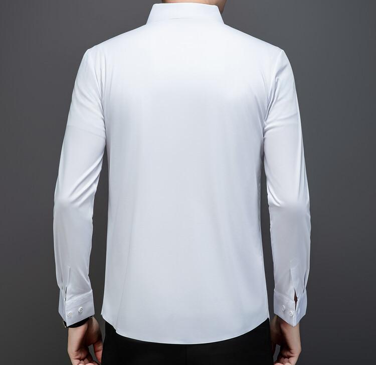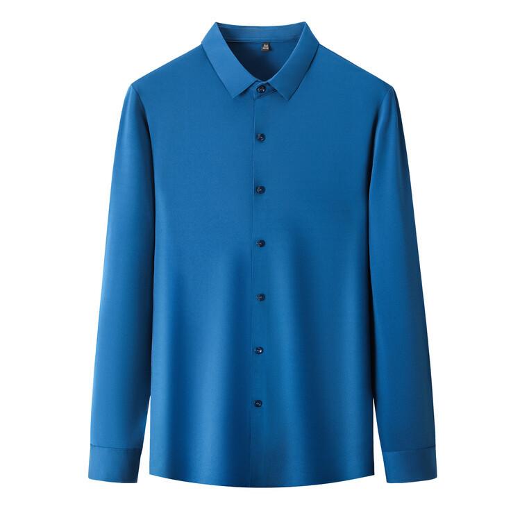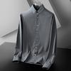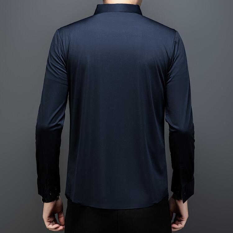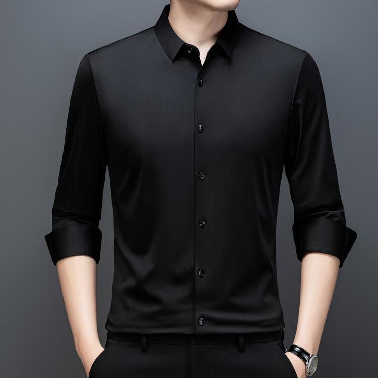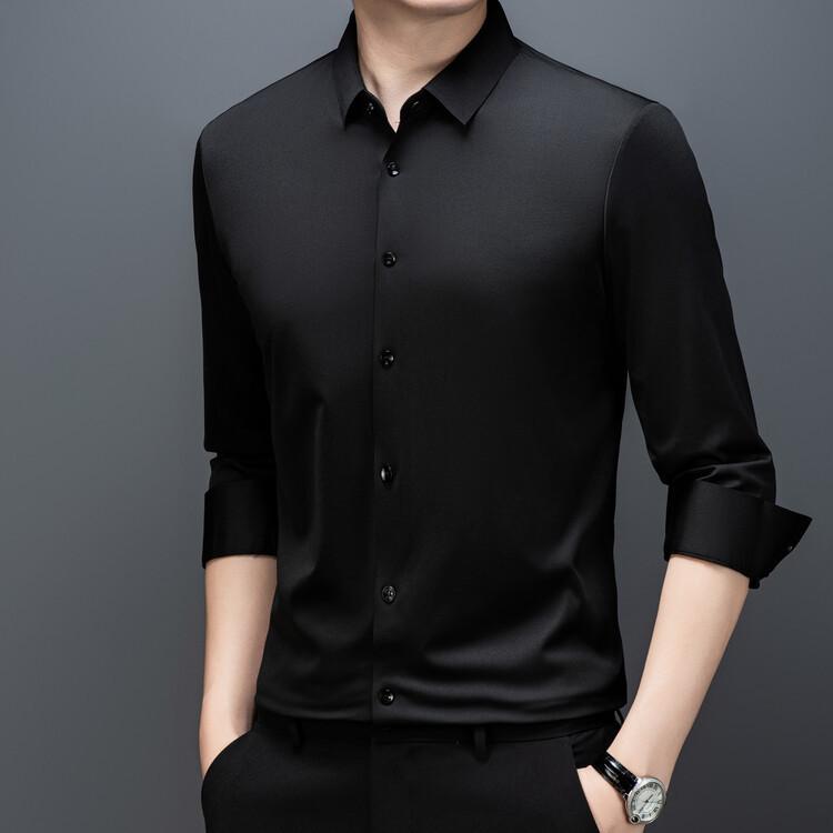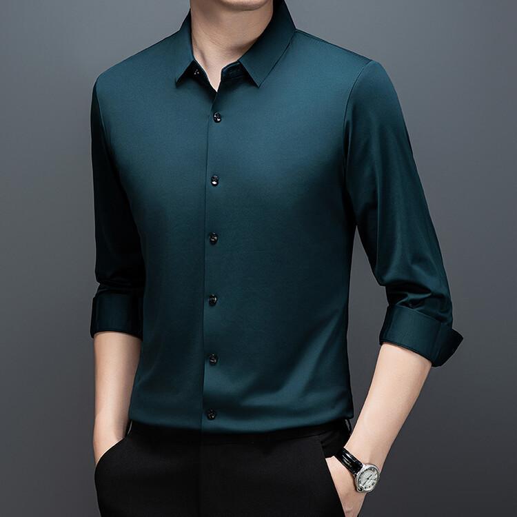 Camisa de manga larga fina y elástica de seda de hielo para hombre, informal, de primavera y otoño, para negocios, sin planchado, de color liso, para trabajo