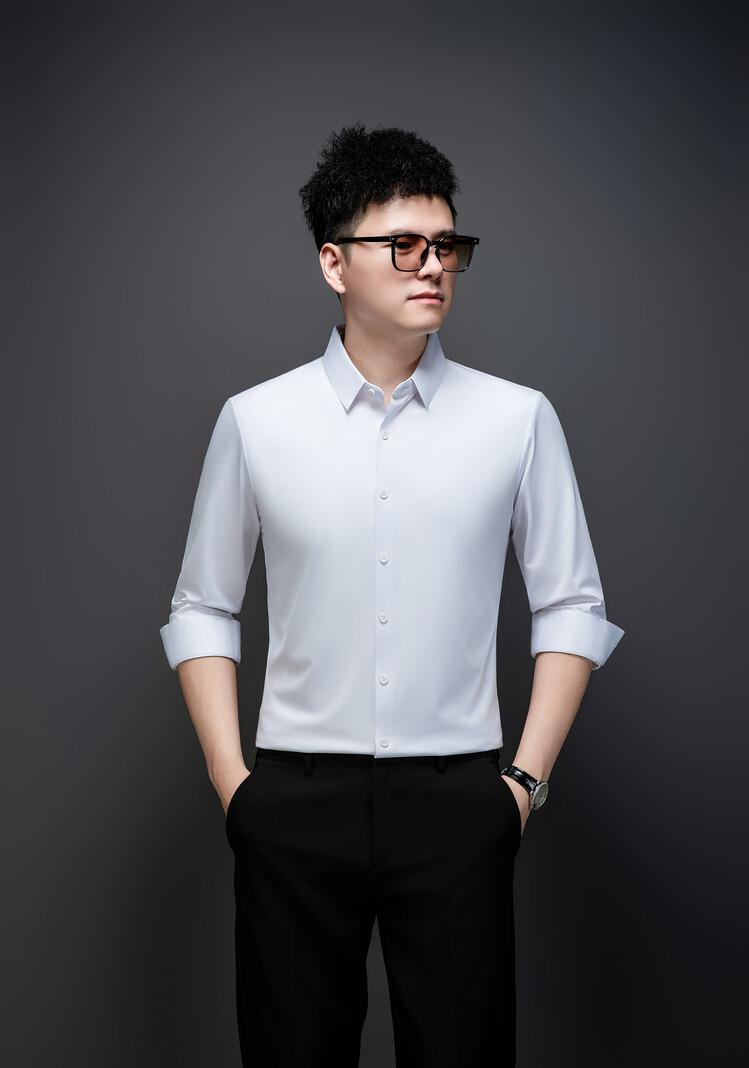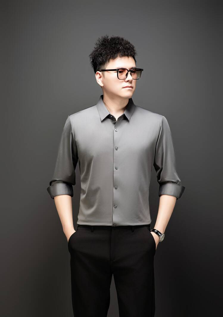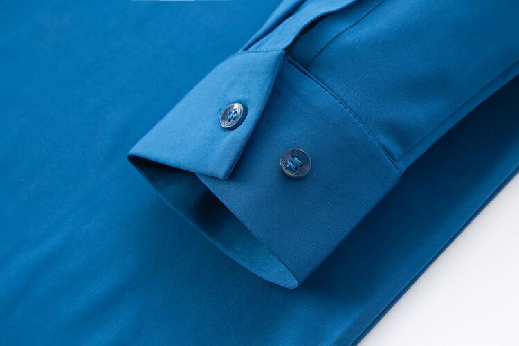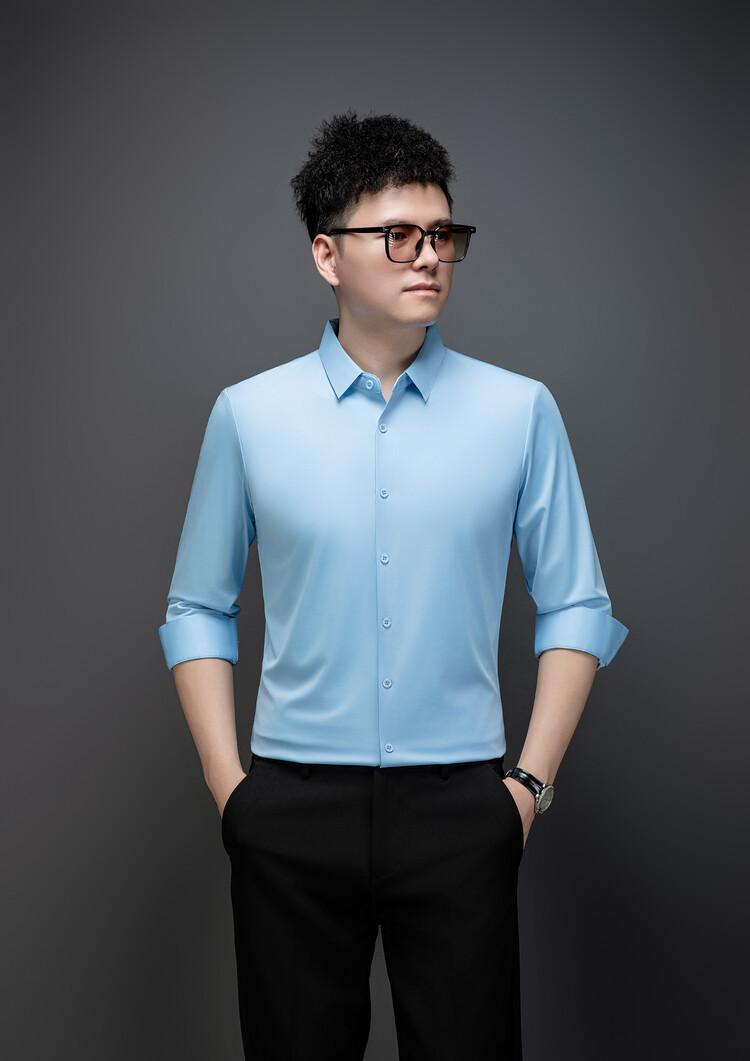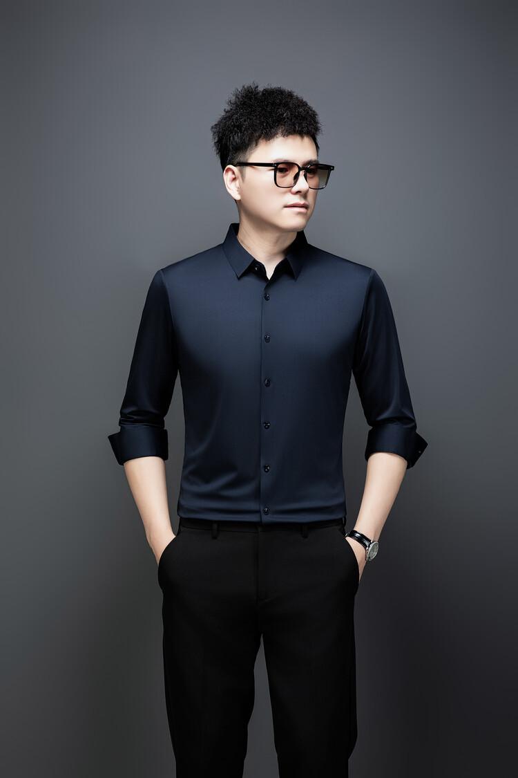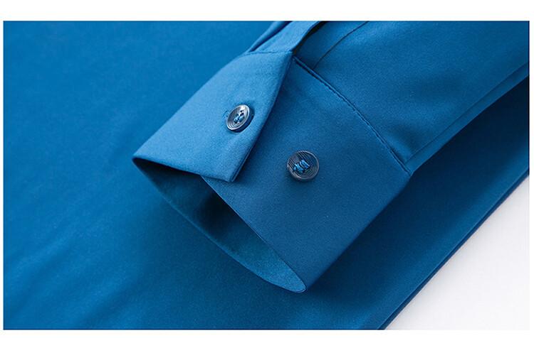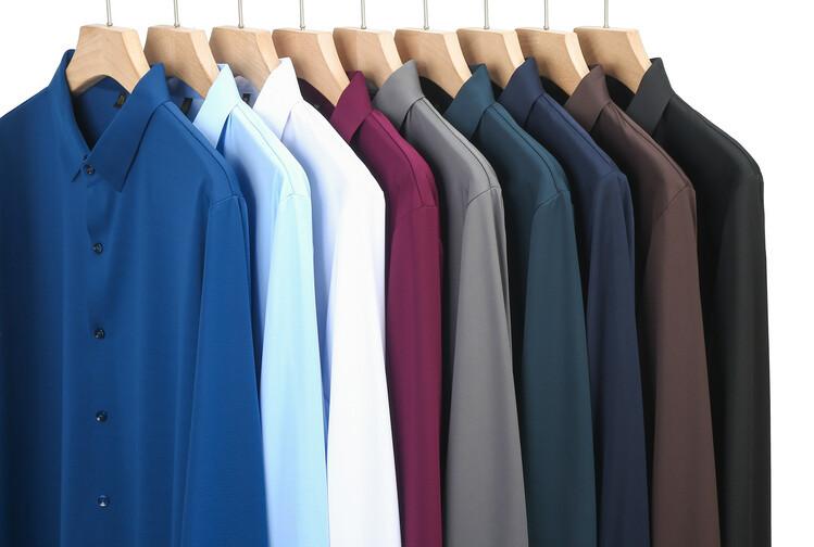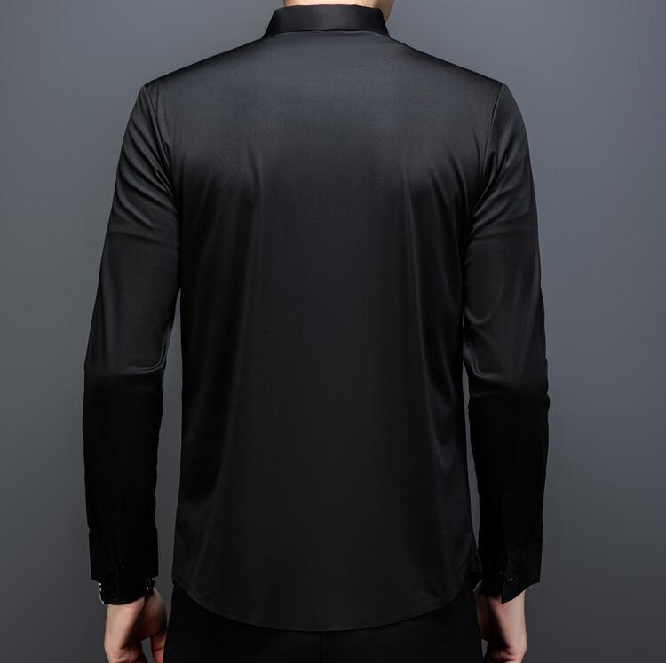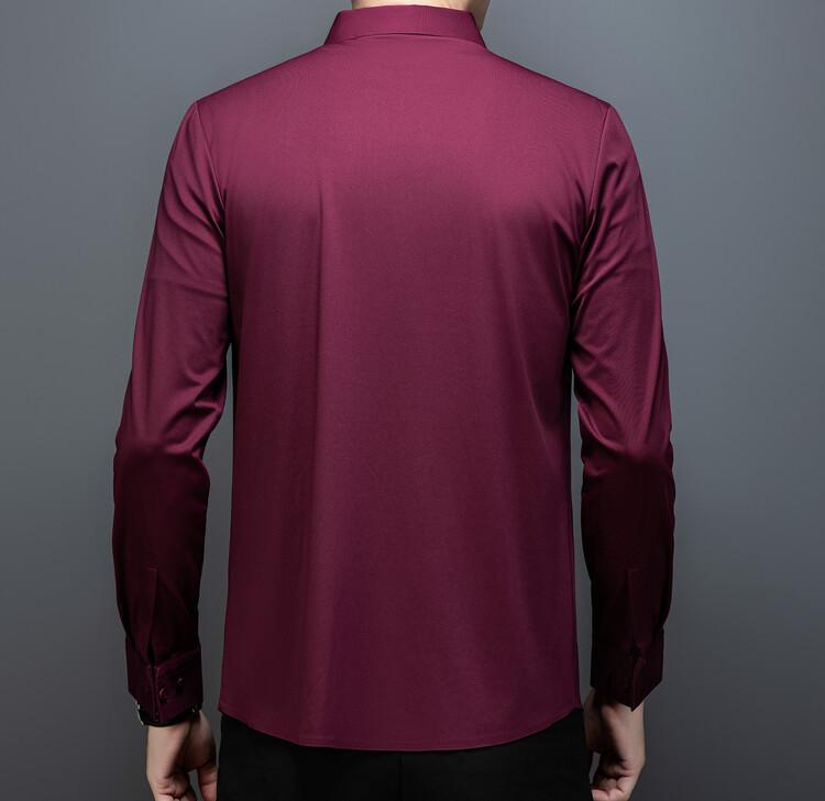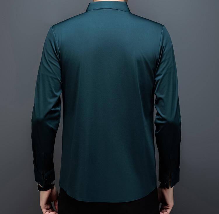 Camisa de manga larga fina y elástica de seda de hielo para hombre, informal, de primavera y otoño, para negocios, sin planchado, de color liso, para trabajo