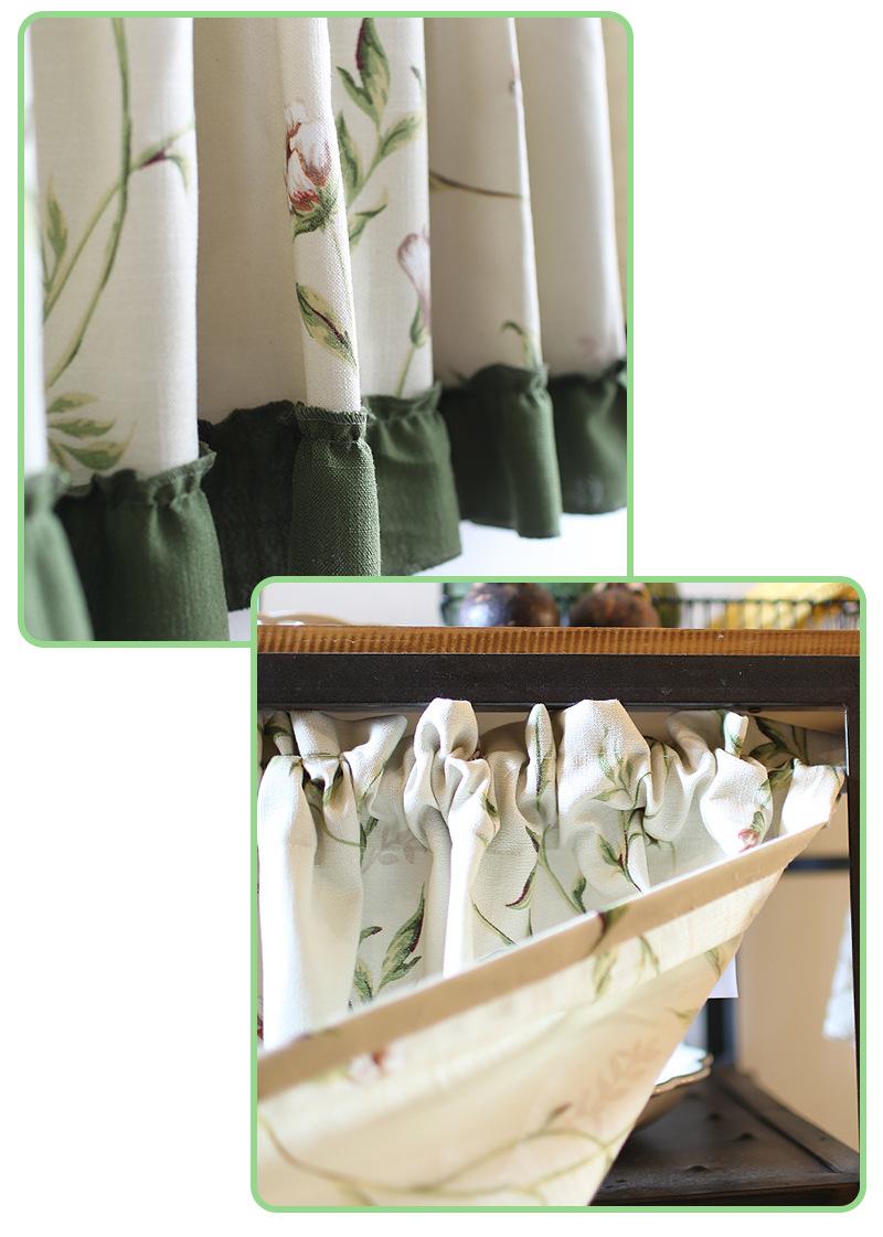 Beige rolled grass green ruffled half curtain Tile 130cm wide * 110 high single piece price