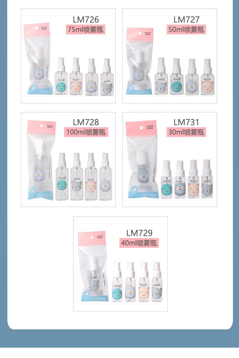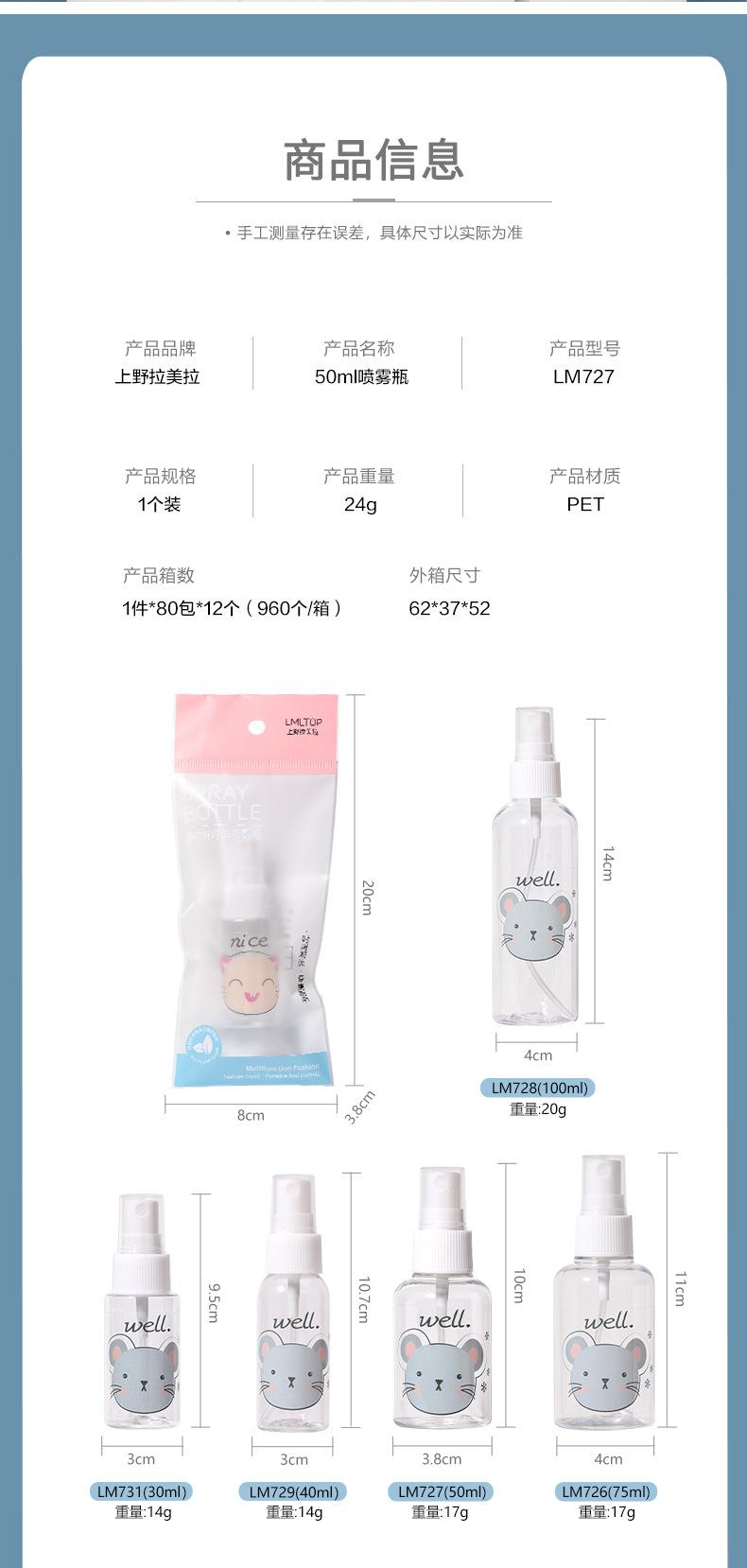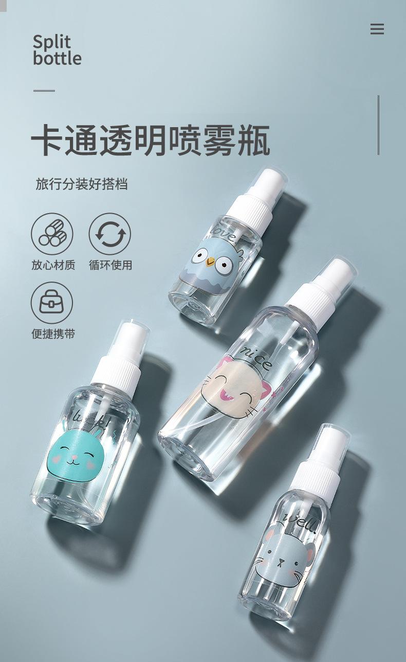 Botella de Spray Lamela 50ml Paquete Individual Botella de Spray para Mascotas de Dibujos Animados Botella Vacía Sub-Botella para Cosméticos de Viaje Colección