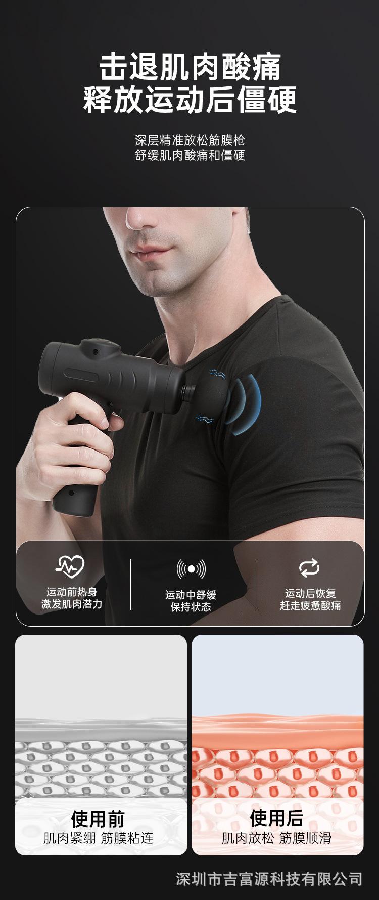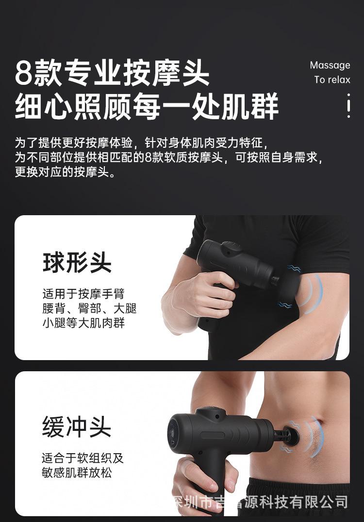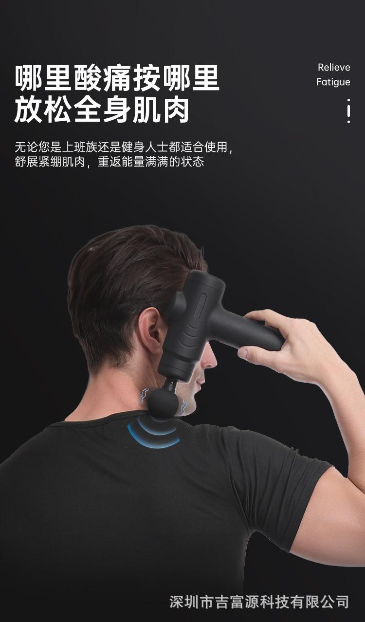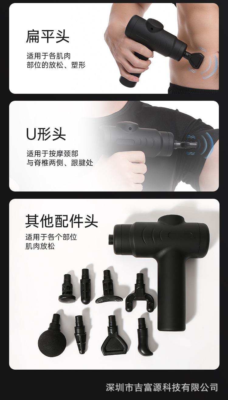 Nueva pistola de fascia relajante muscular de grado fitness, membrana de relajación muscular, membrana de cuello, cabezal de masaje de carga multifuncional