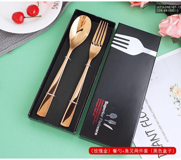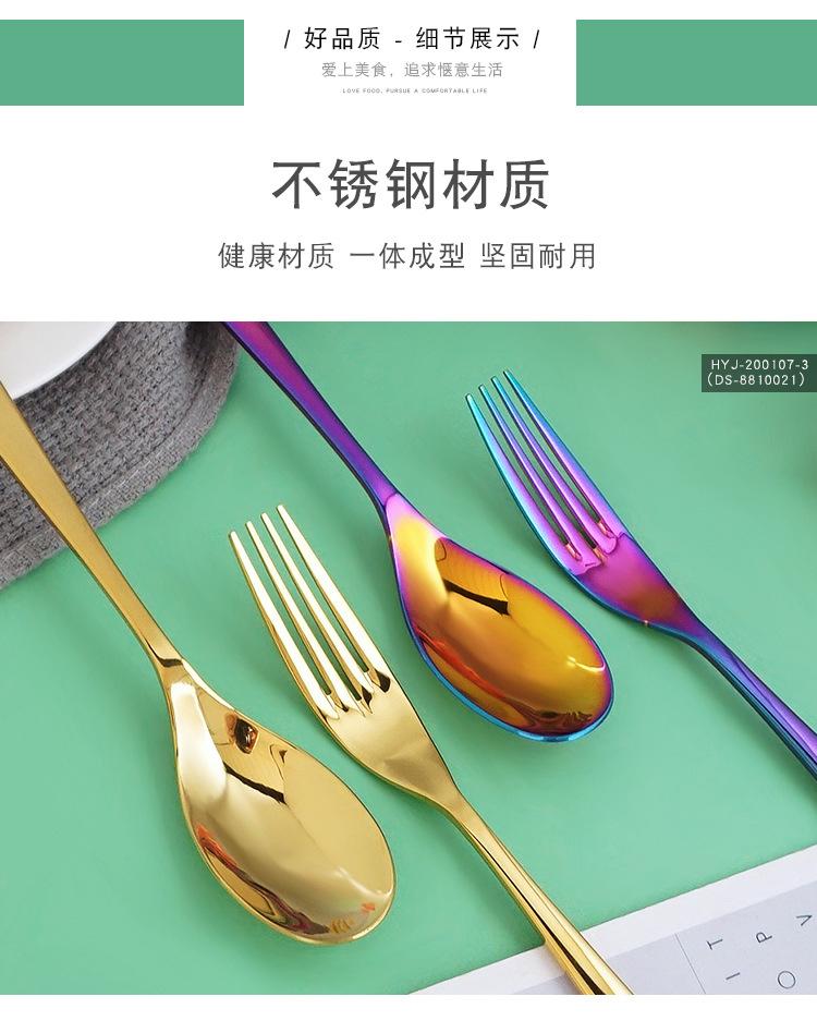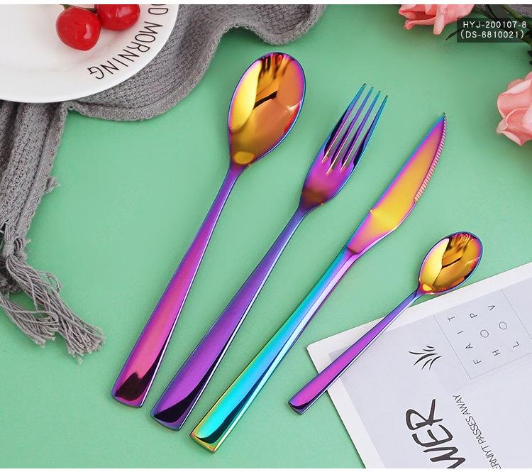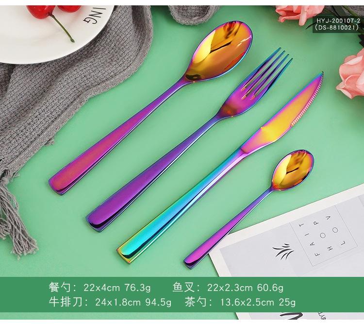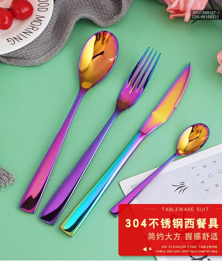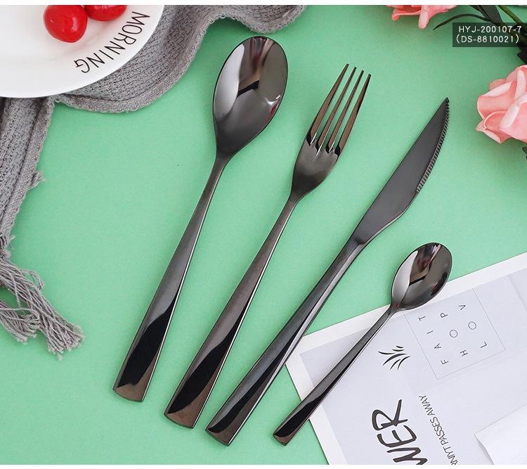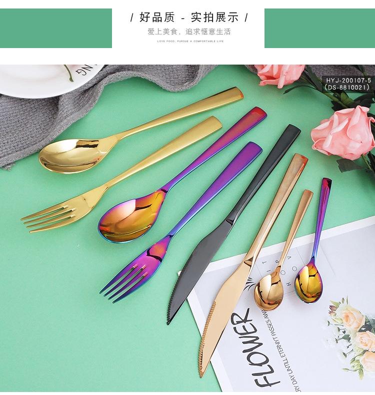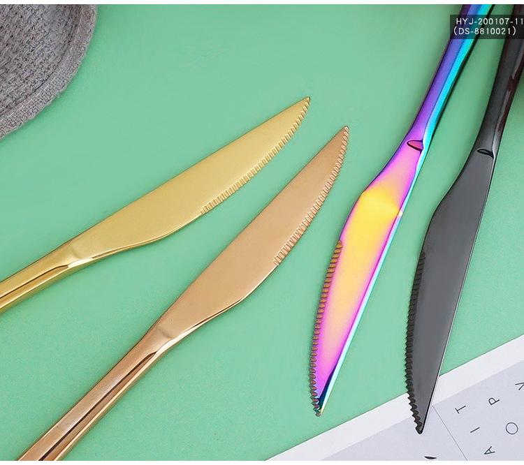 | El fabricante Junneng produce vajilla de acero inoxidable 1010 con revestimiento de titanio de Amazon transfronterizo: juego de cuchillo, tenedor y cuchara para carne occidental. |