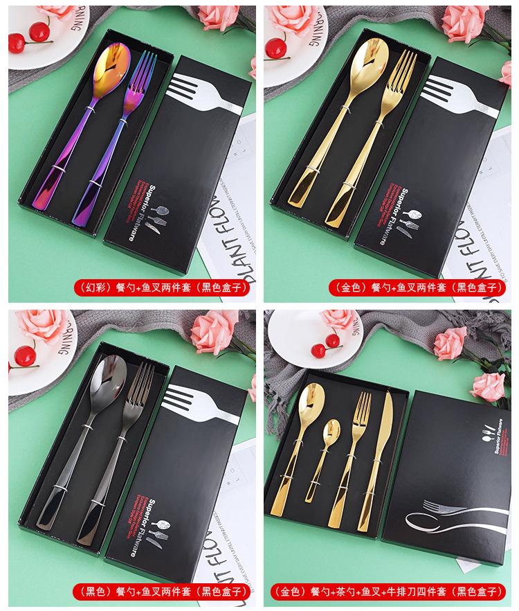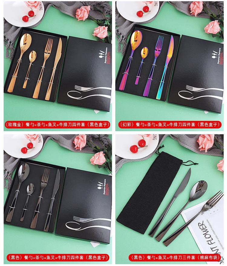 | Suministro directo de fábrica, antorcha de acero inoxidable, cuchillo para carne occidental, cuchillo de cena, cuchara, tenedor, juego de vajilla de té |