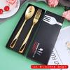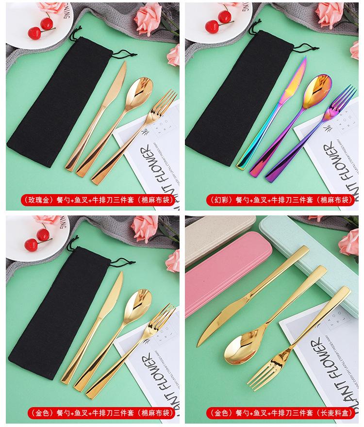 | Venta al por mayor, embalaje de tela de almohada portátil, cuchara, tenedor, palillos de acero inoxidable, juego de vajilla, juego de vajilla de regalo para picnic. |