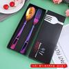 | Juego de vajilla occidental de acero inoxidable 304 con cuchillo, tenedor, cuchara y palillos, con revestimiento de titanio rojo portugués negro y dorado. |