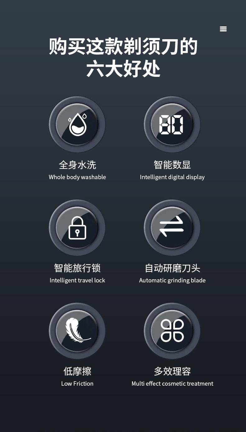 Afeitadora Eléctrica Pearl Max Lavable para Todo el Cuerpo Afeitadora Flotante para Barba Pantalla Digital LED Afeitadora Eléctrica