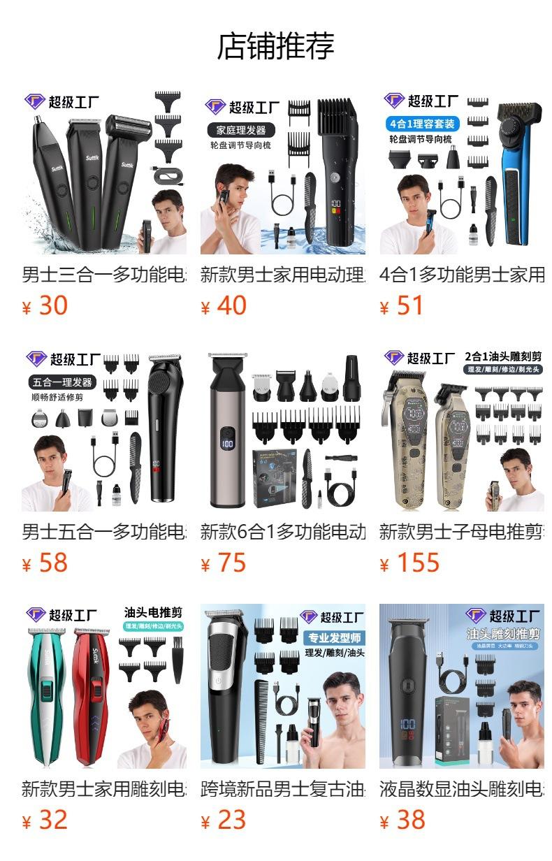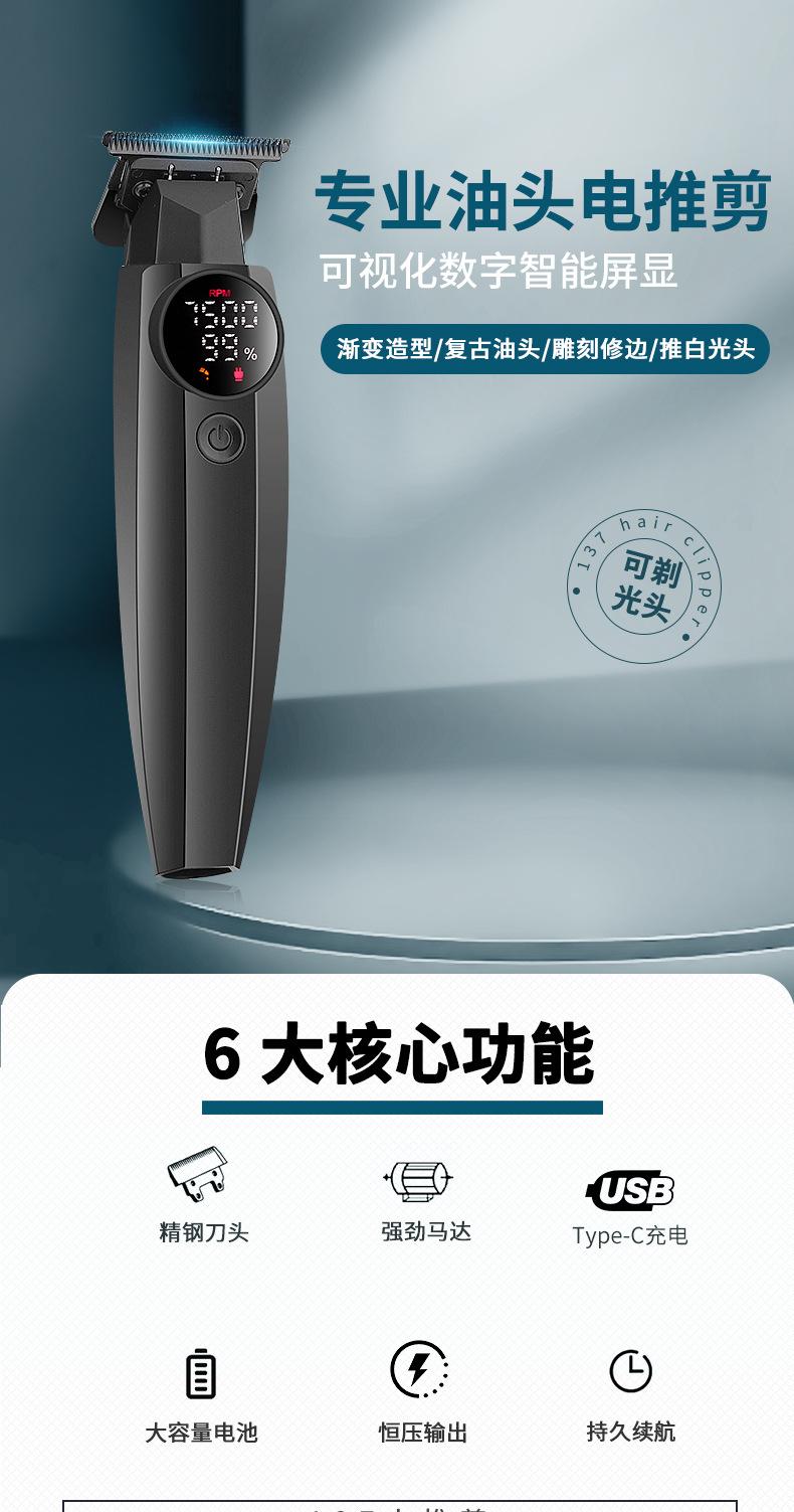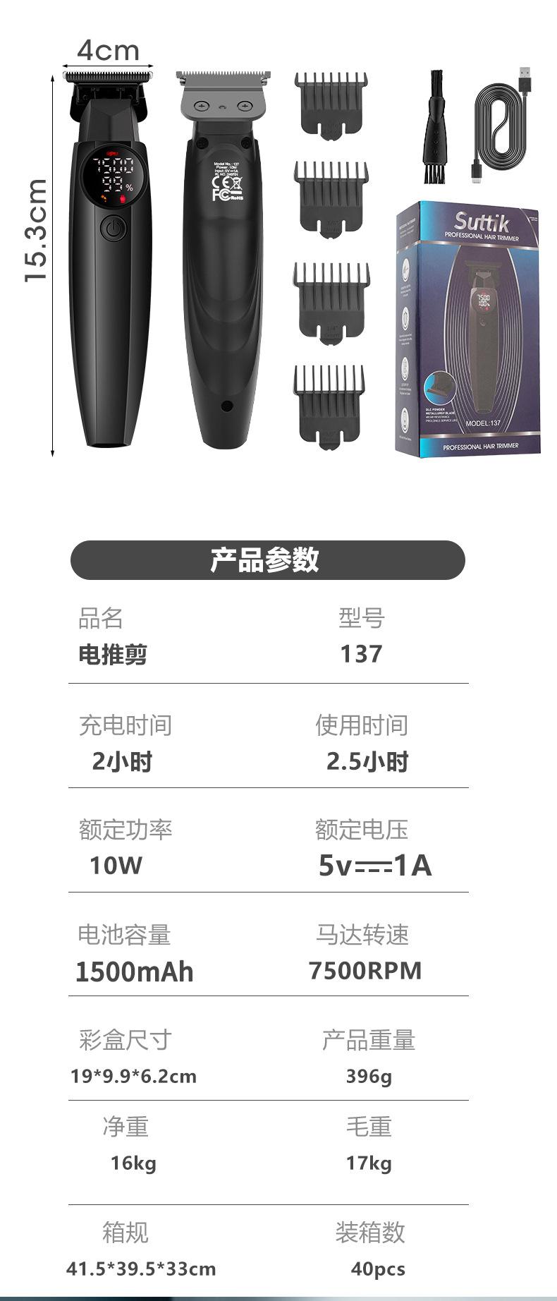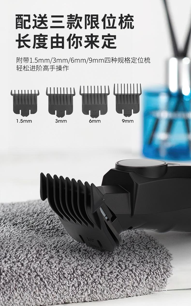 Accesorios: Cortadora de cabello*1, peine guía*4 (1.5 3 6 9), cepillo de limpieza*1, cable de carga USB*1