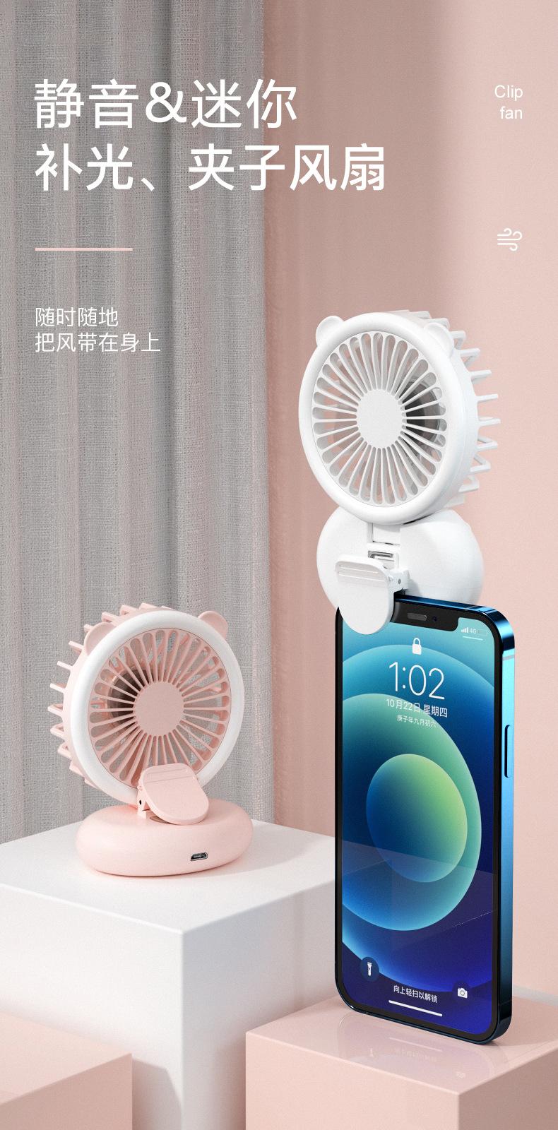 Mini ventilador de cuello con clip, luz de relleno, carga USB, portátil y plegable, nuevo, transfronterizo