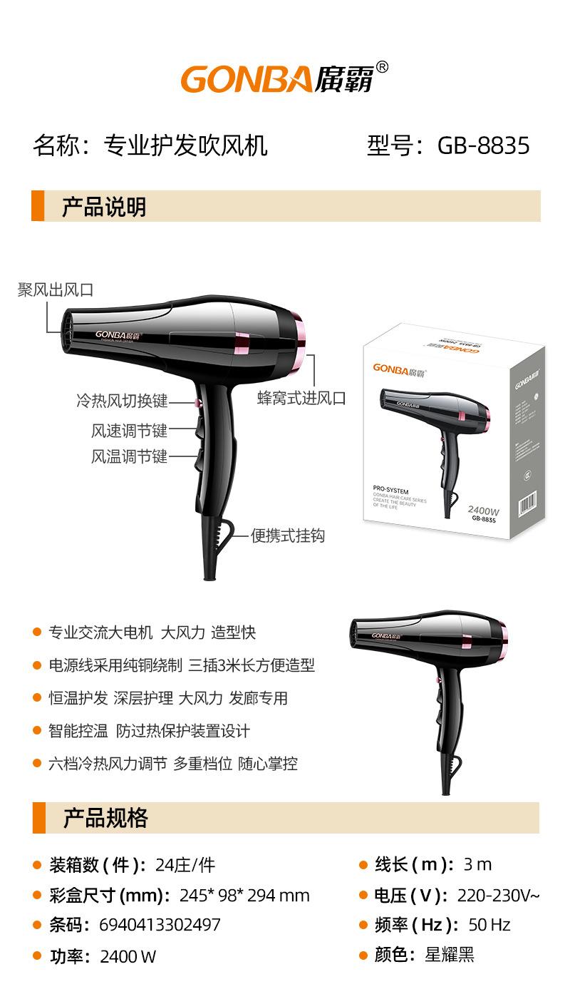 Black ac hair salon special motor, White dc household motor, White mini hair dryer, Black home use 1900w