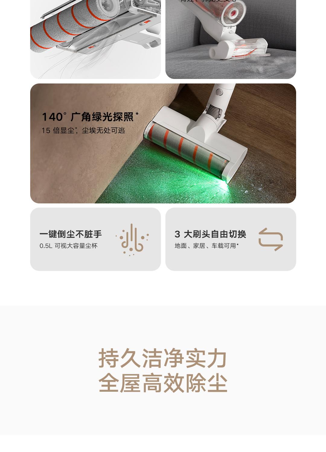 Nueva aspiradora inalámbrica Mijia 3C, luz verde, de mano, trapeador, gran succión, larga duración, succión de pelo de gato, hogar