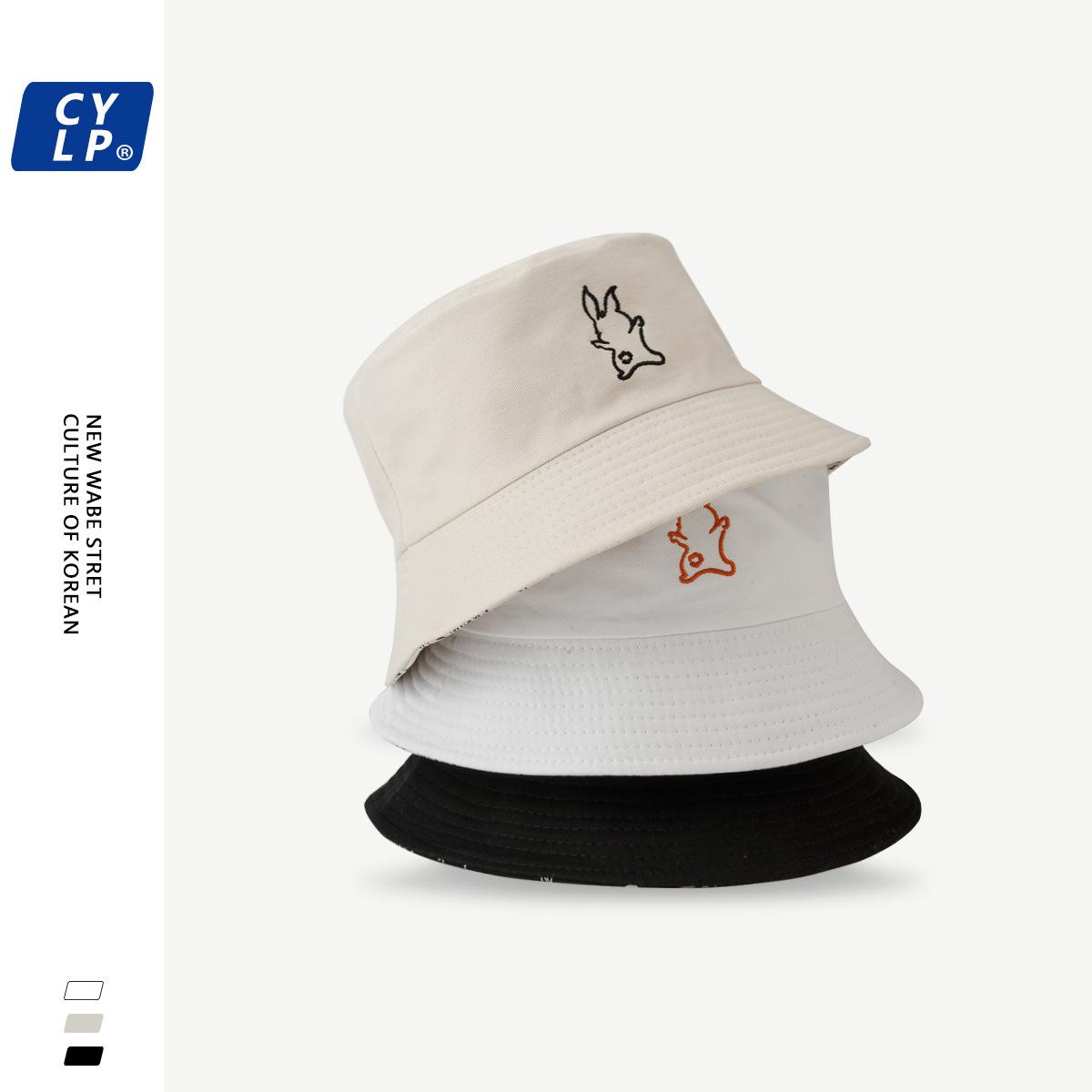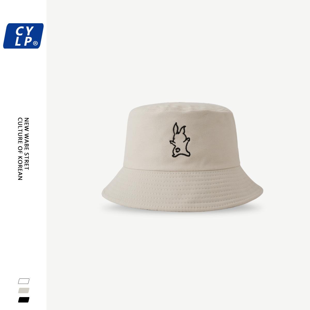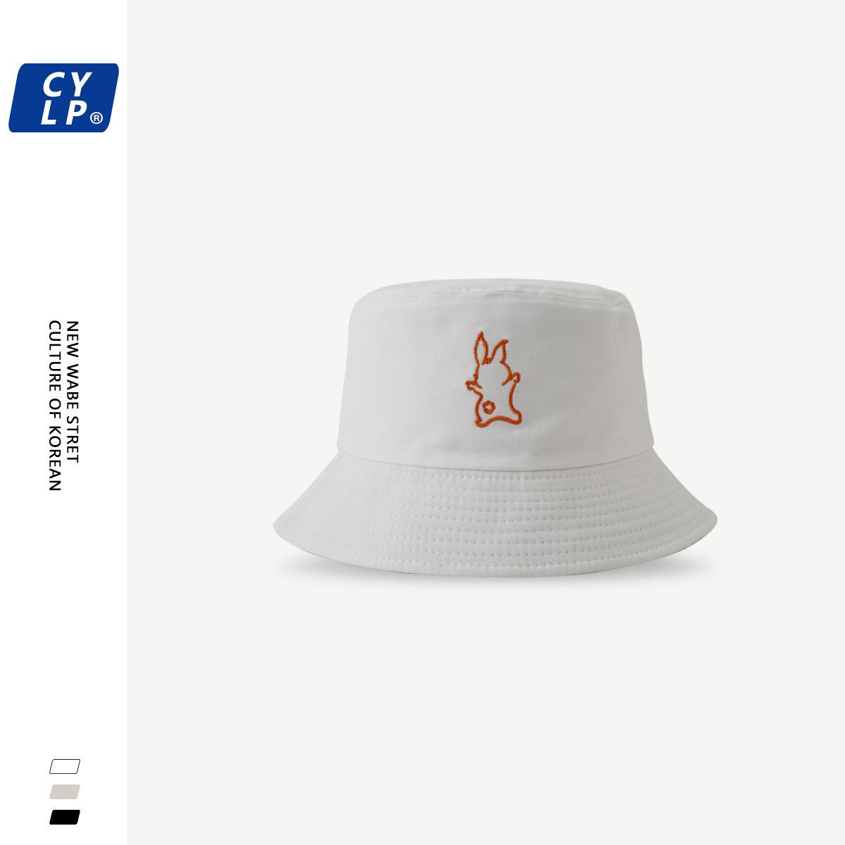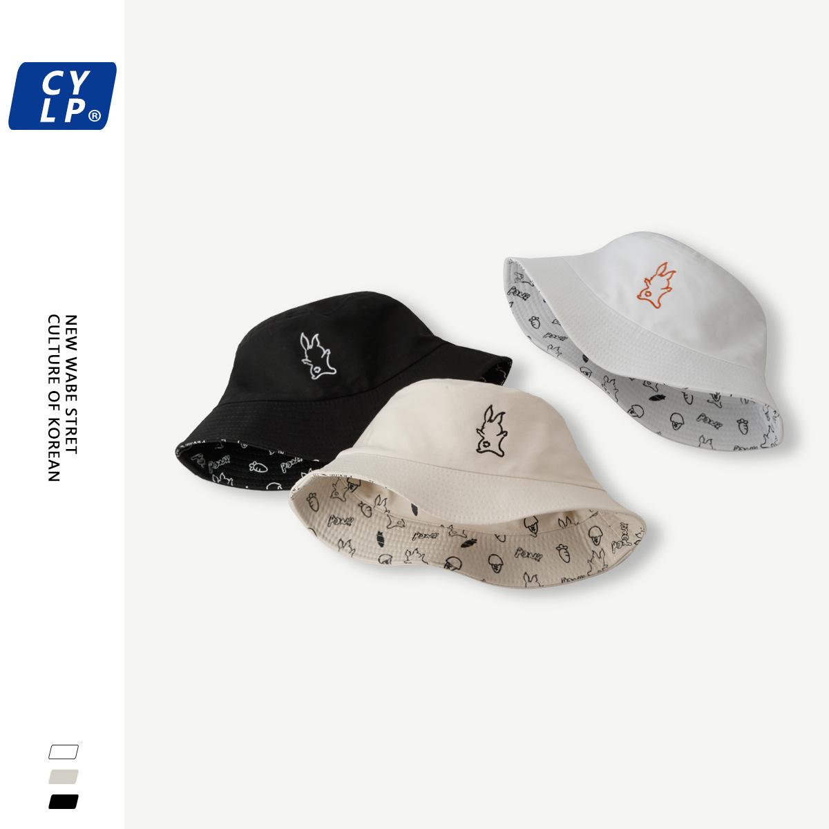 Sombrero de pescador con bordado de conejo estilo universitario para mujer, sombrero de sol de doble cara para pareja, sombrero de lavabo combinable estilo coreano para hombre, primavera y verano.