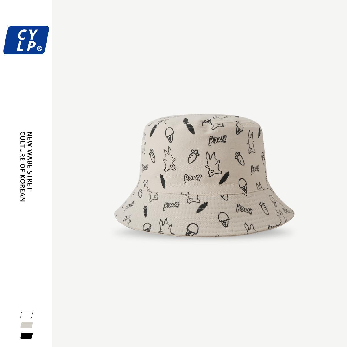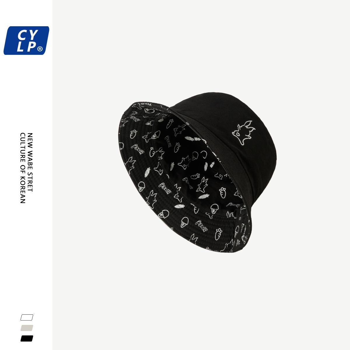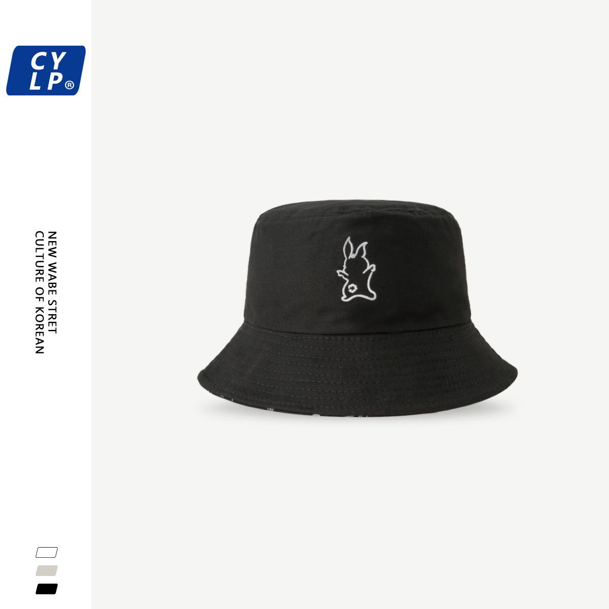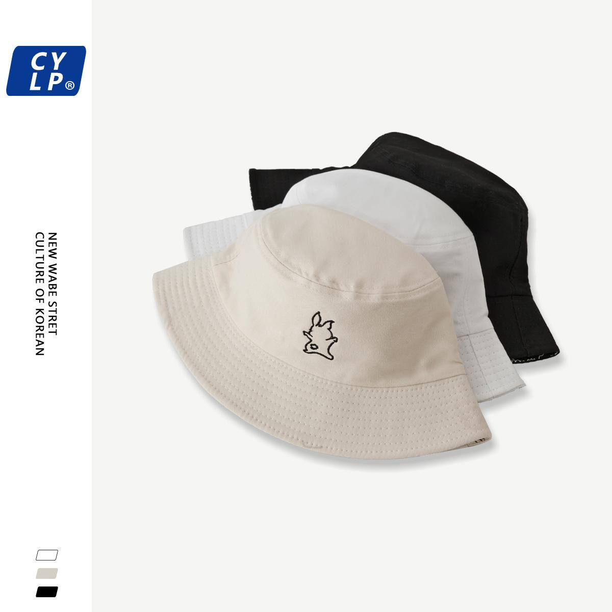 Sombrero de pescador con bordado de conejo estilo universitario para mujer, sombrero de sol de doble cara para pareja, sombrero de lavabo combinable estilo coreano para hombre, primavera y verano.