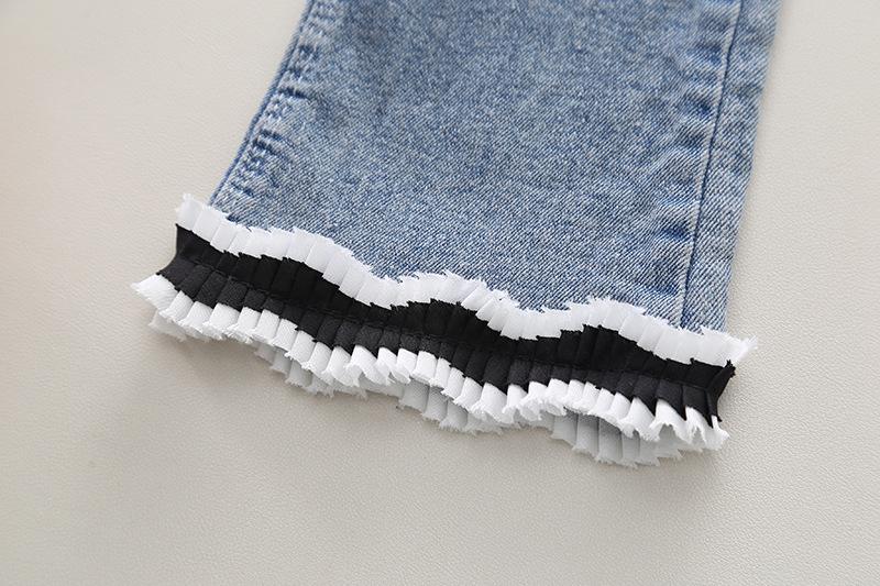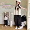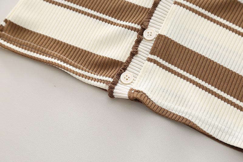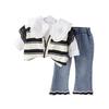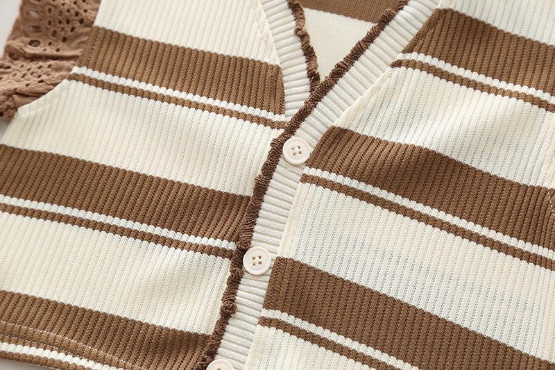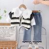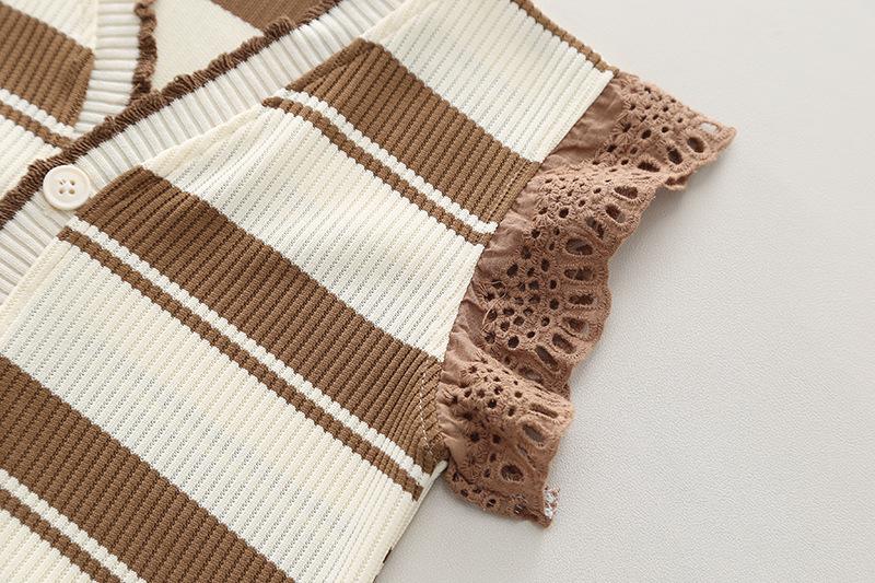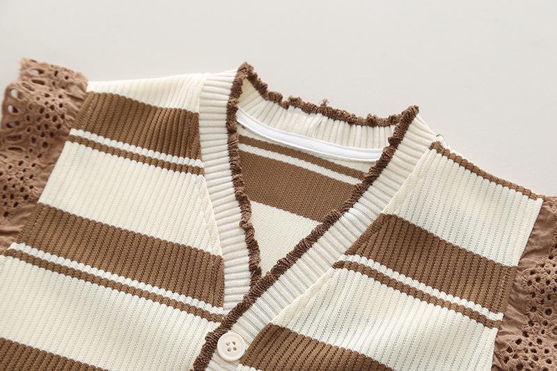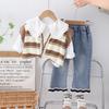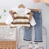 Traje para niñas primavera y otoño 2024 nuevo moderno estilo occidental para niñas ropa de primavera para niños chaleco de encaje de rayas anchas traje de tres piezas