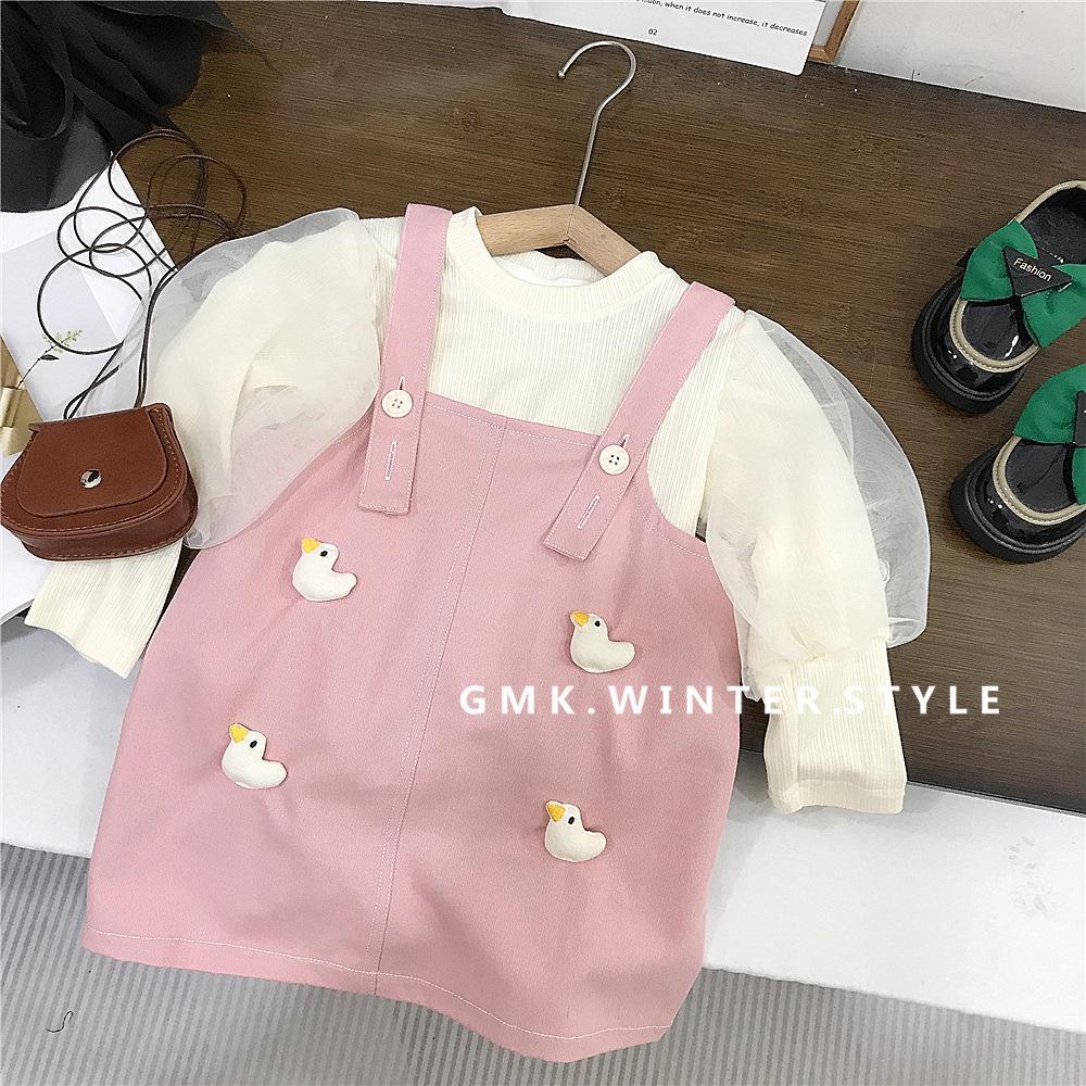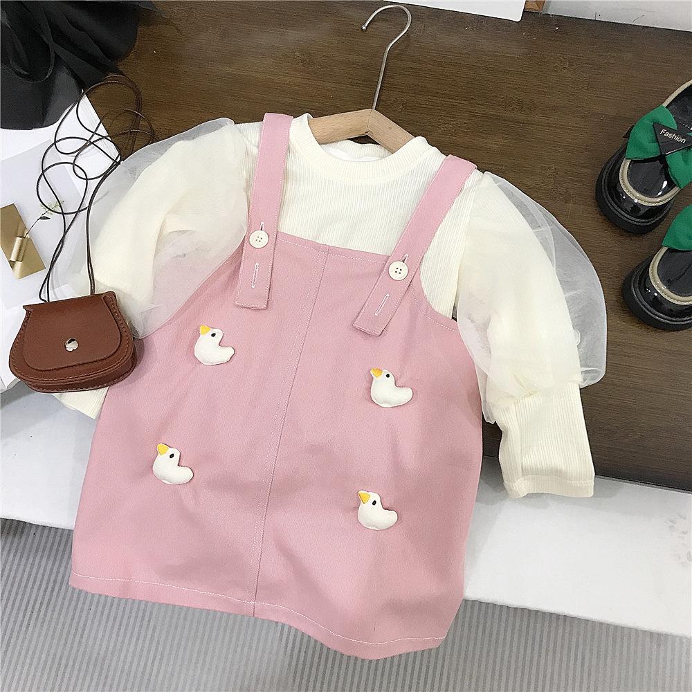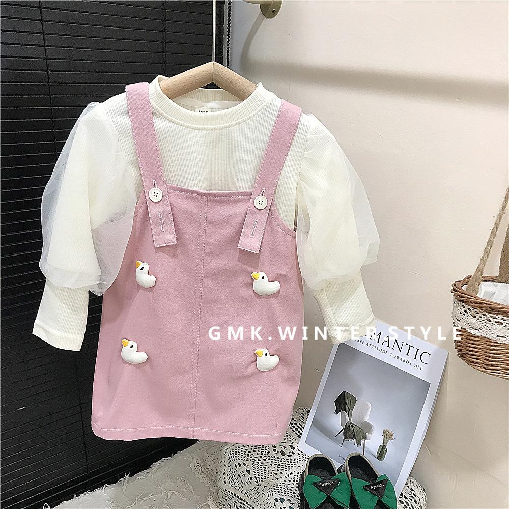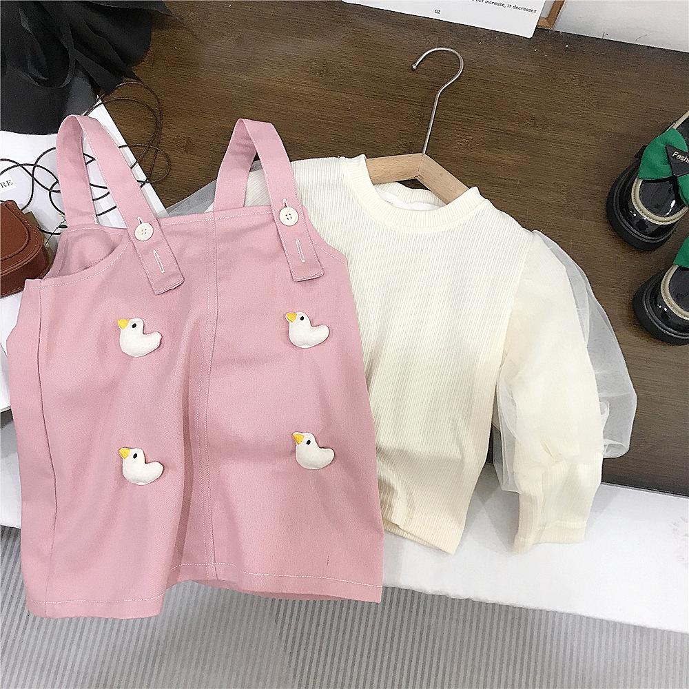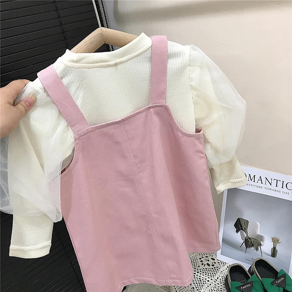 Falda de Tirantes para Niña Otoño Nuevo Lindo Estilo Occidental Traje para Niña Conjunto de Dos Piezas para Niña Vestido para Niña Comercio Exterior