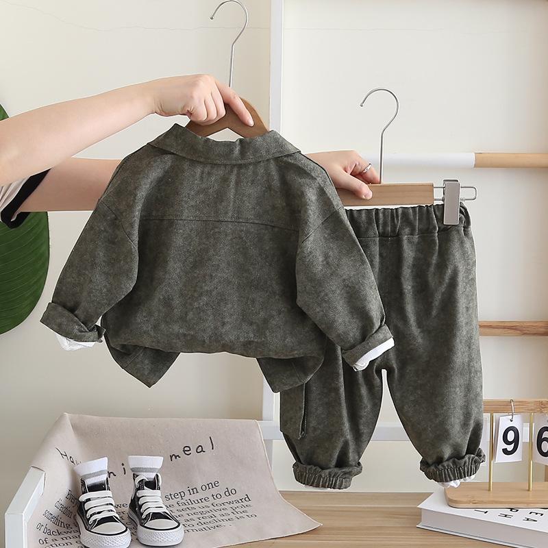 boy overalls three piece set green, boy overalls three piece set brown