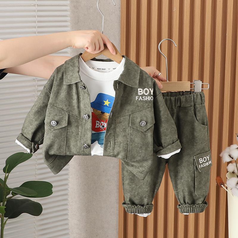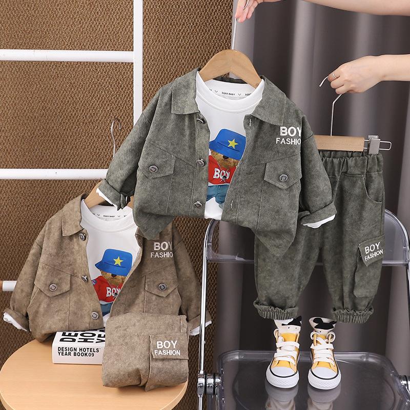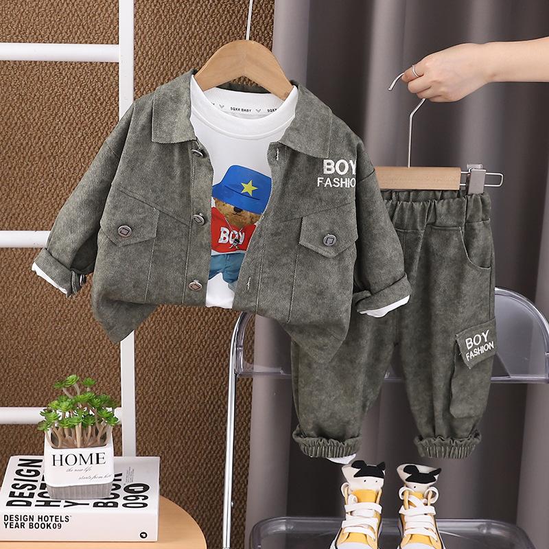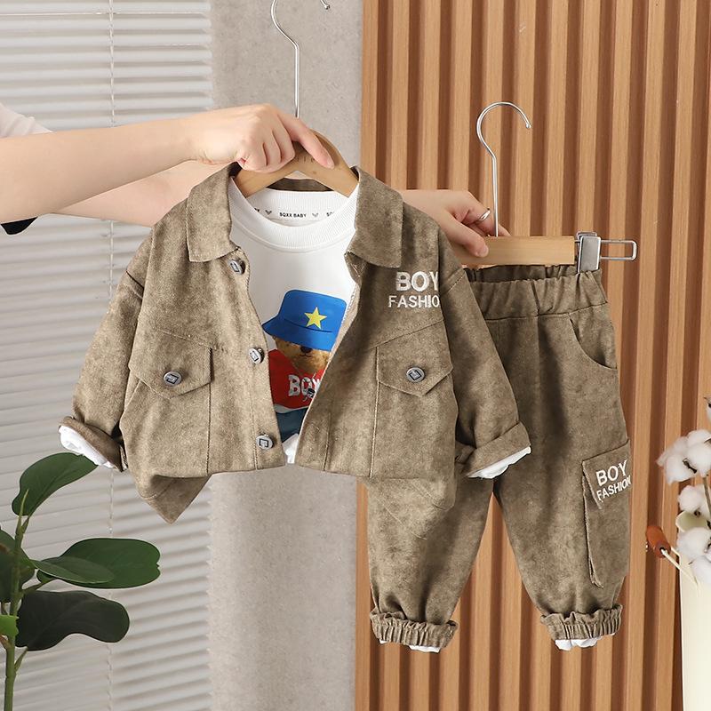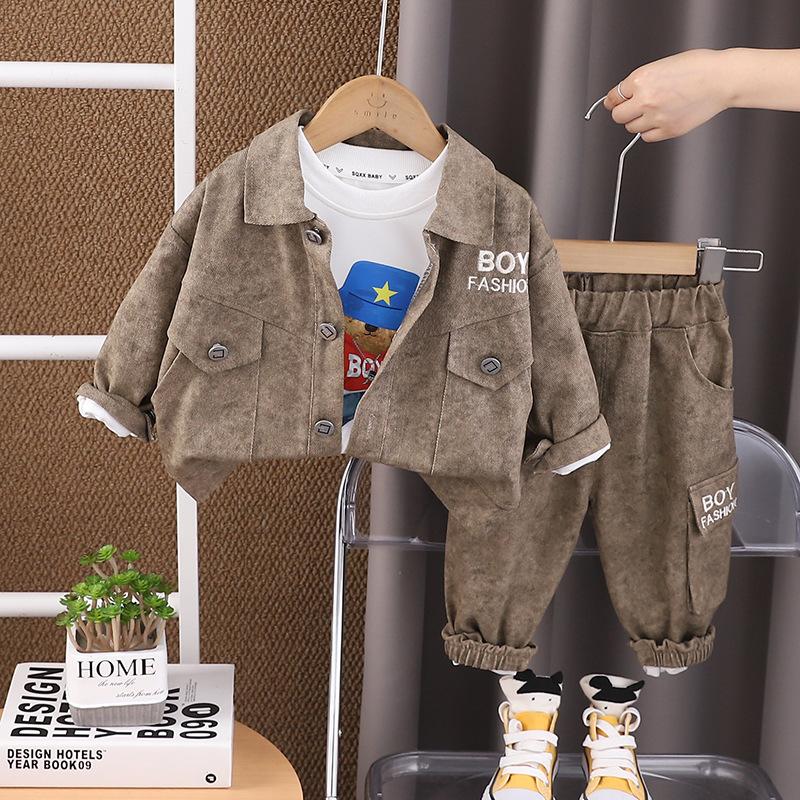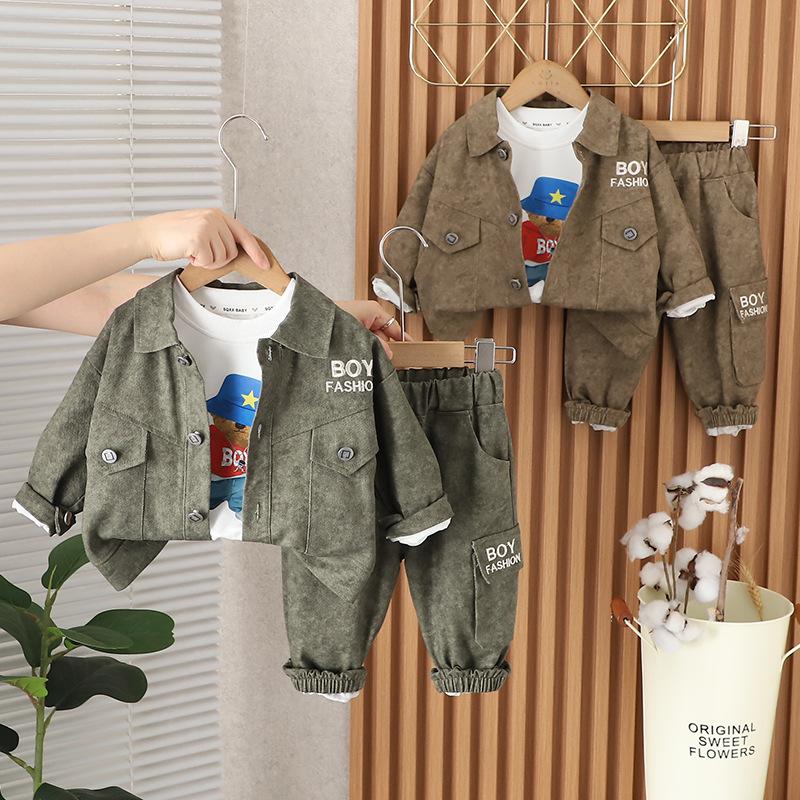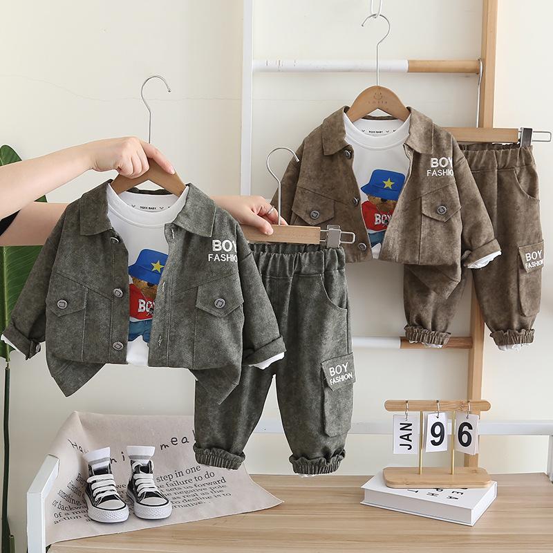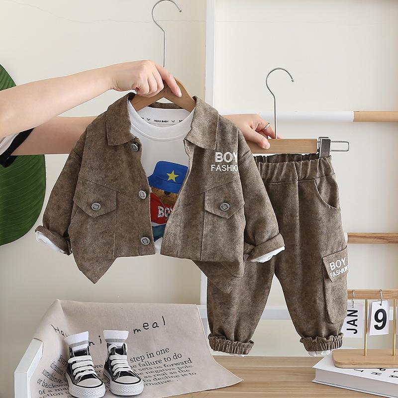 Traje de Otoño para Niño con Herramientas de Letras 1-2-3-4 Años Ropa para Niños Ropa de Otoño para Bebé Conjunto de Tres Piezas de Primavera y Otoño para Niños