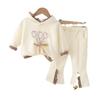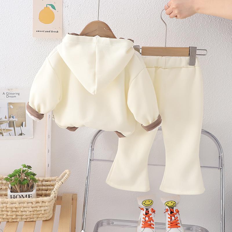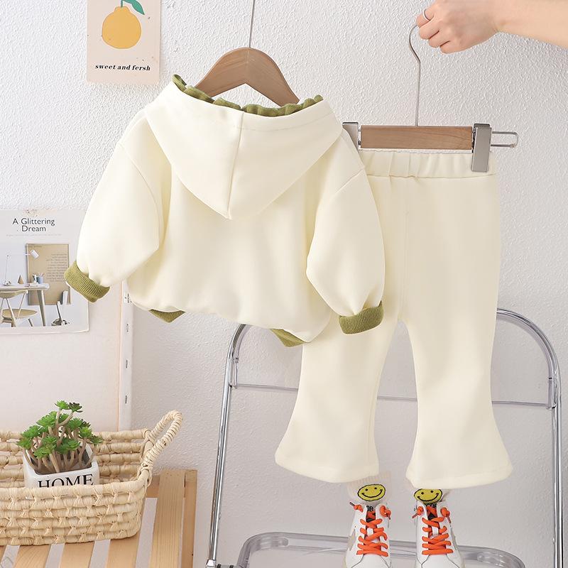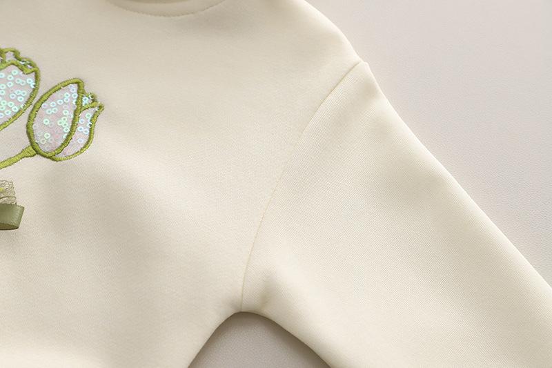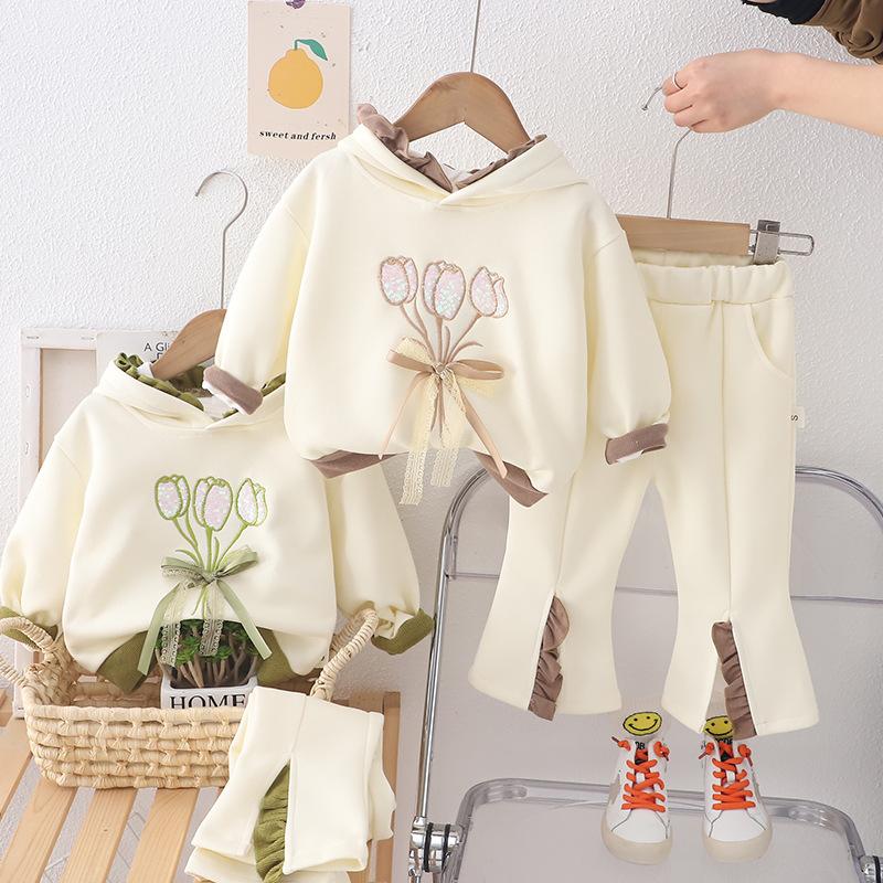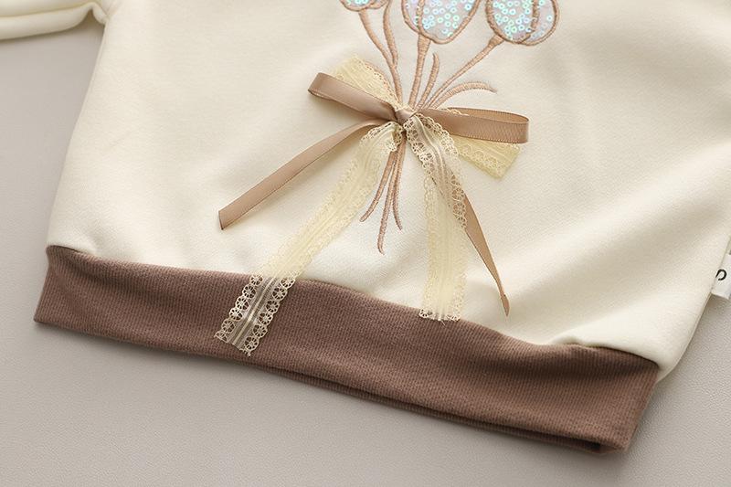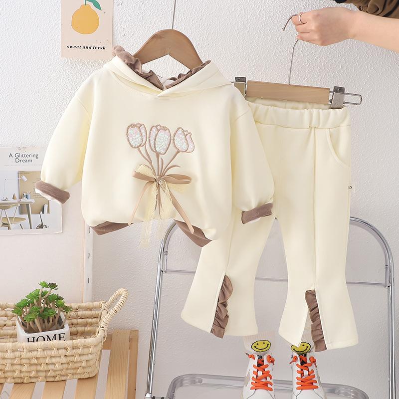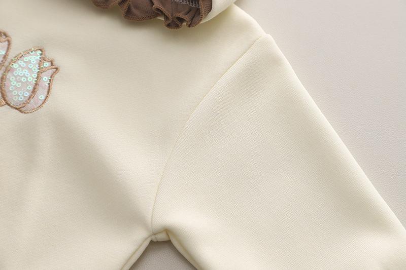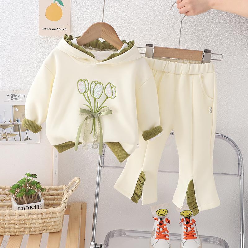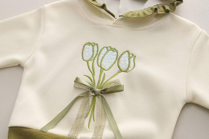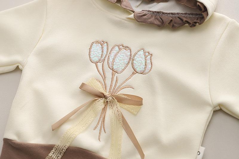 Traje de ropa de primavera para niñas 2024 Nuevo estilo coreano para bebés niñas primavera y otoño sudadera con capucha de flores conjunto de dos piezas entrega de una pieza