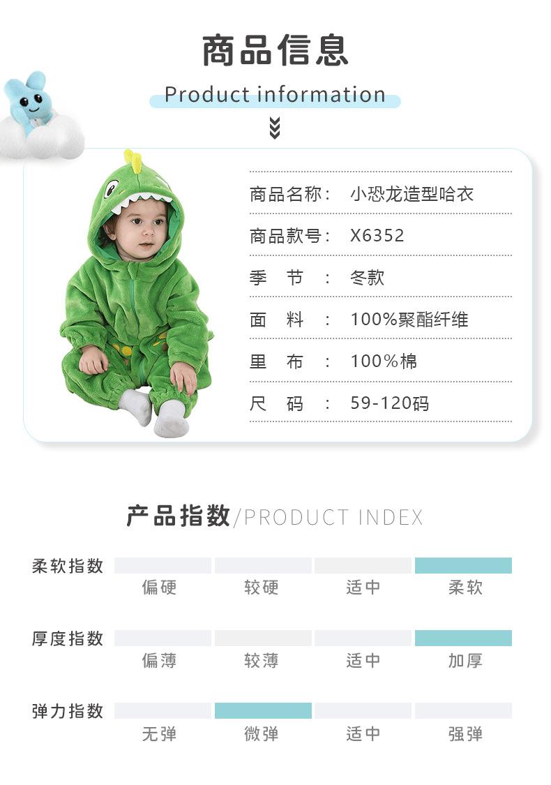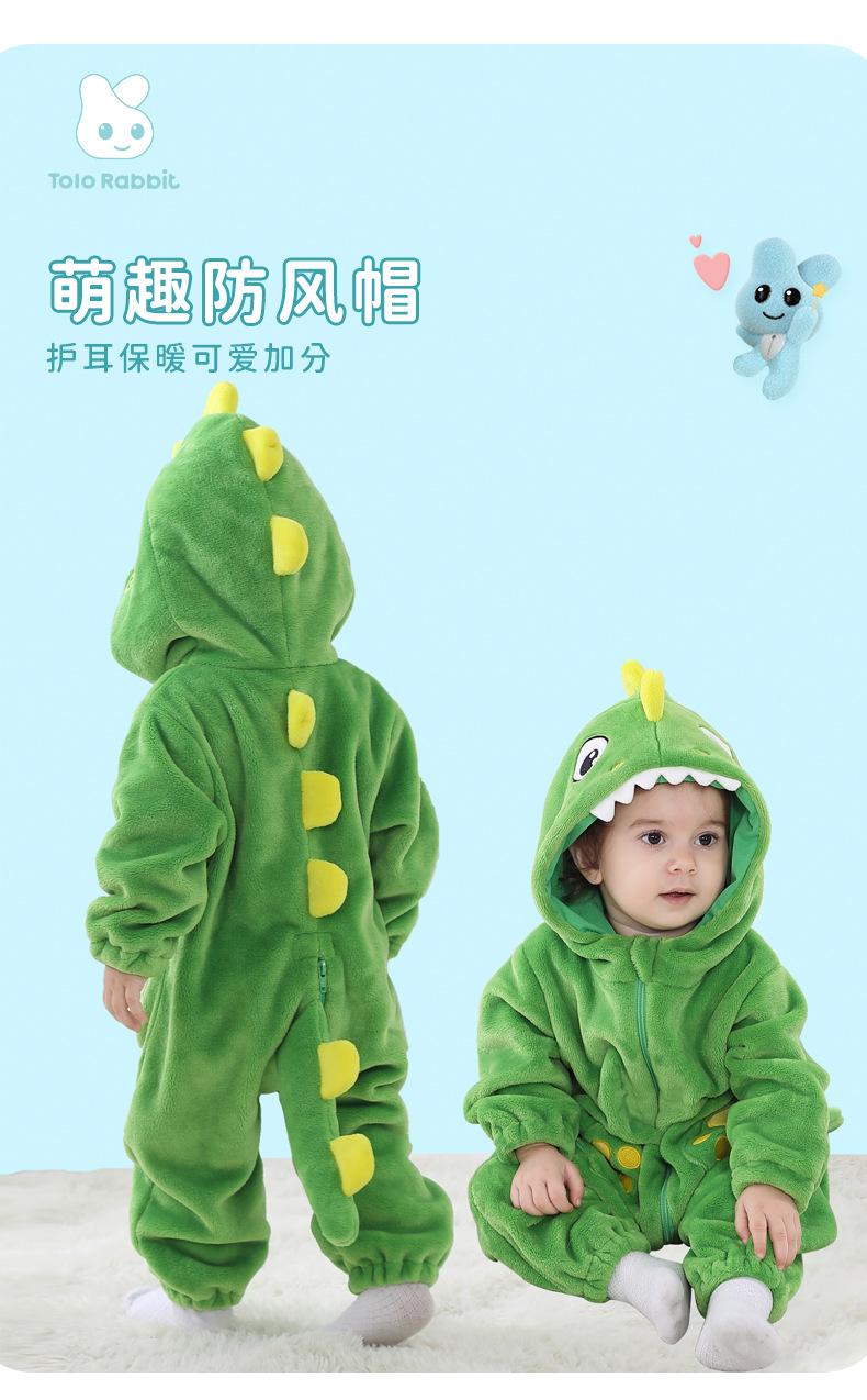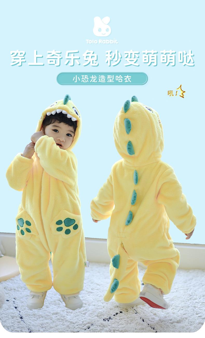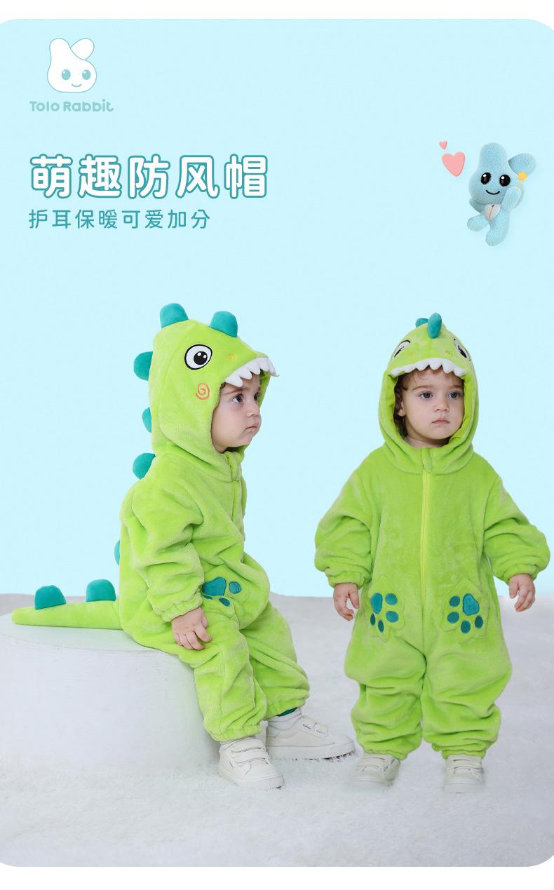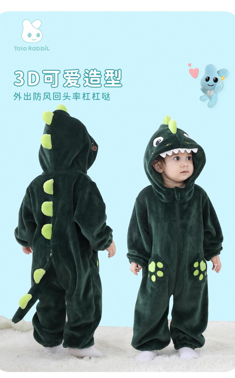 Ropa de modelado linda para bebé de primavera y otoño de conejo Qile para bebé de 0 a 5 años, mono de una sola capa de dinosaurio multicolor
