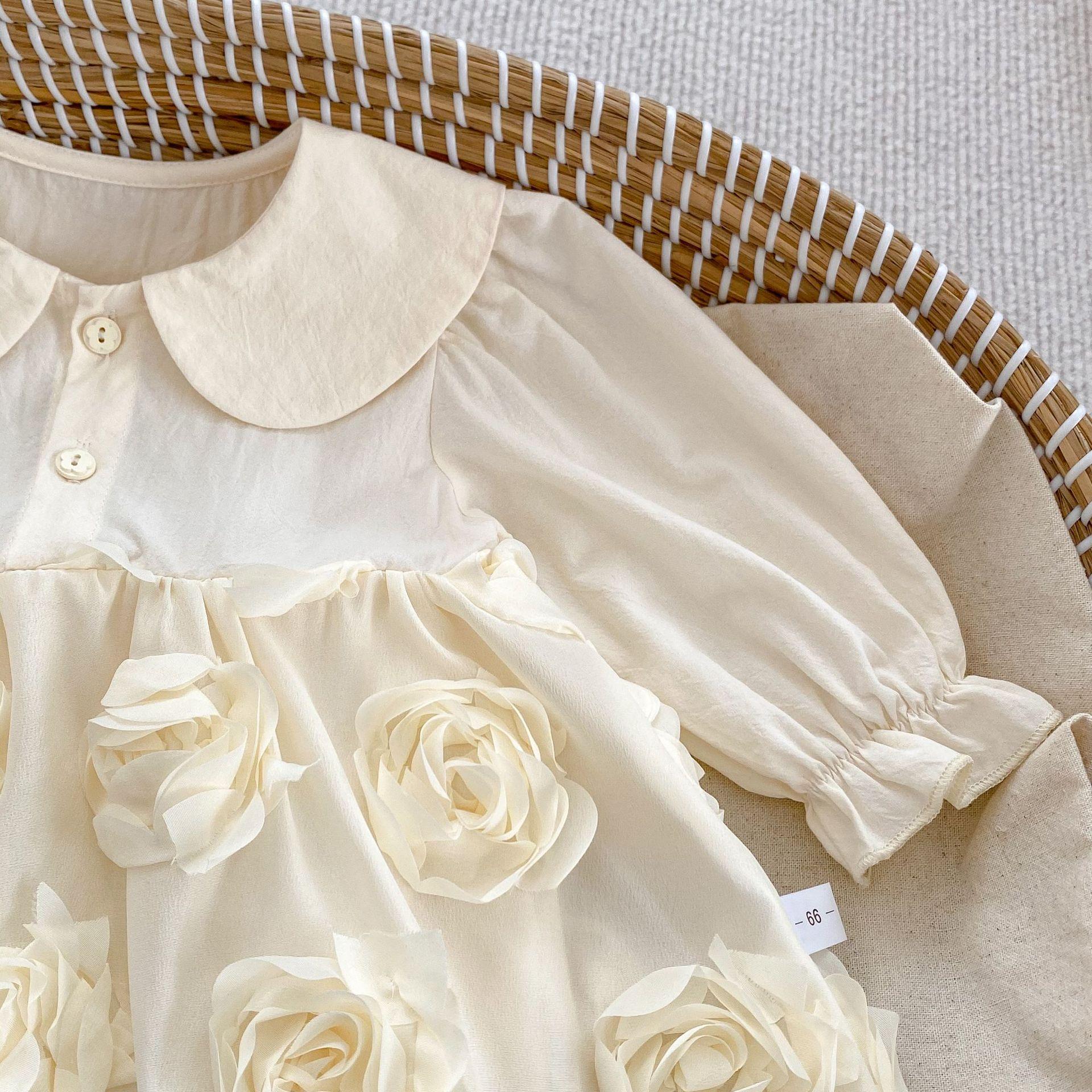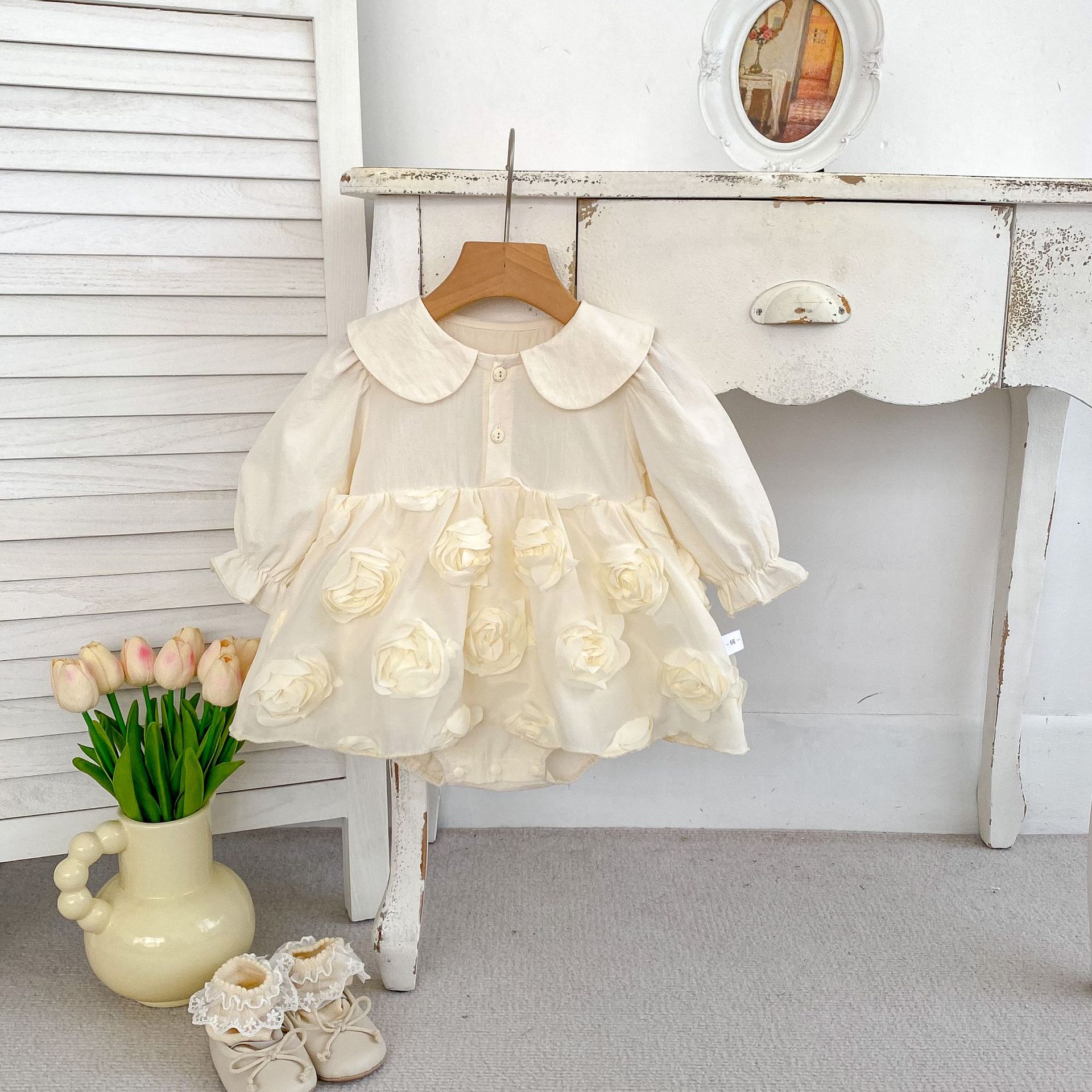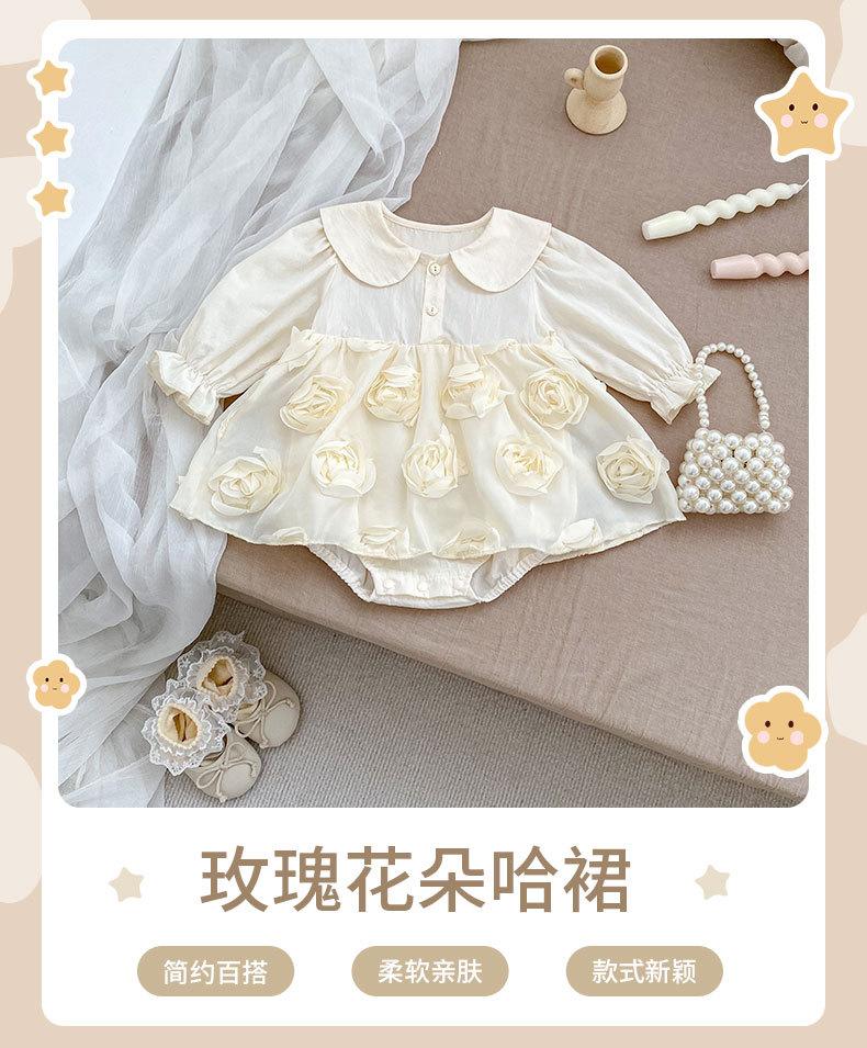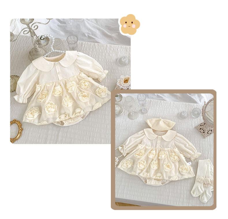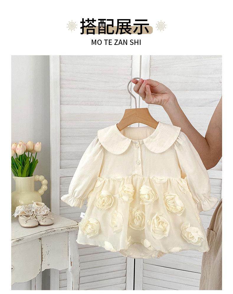 Mono de otoño para niña, nuevo y dulce, con malla de flores, ropa de escalada, falda de cuello redondo