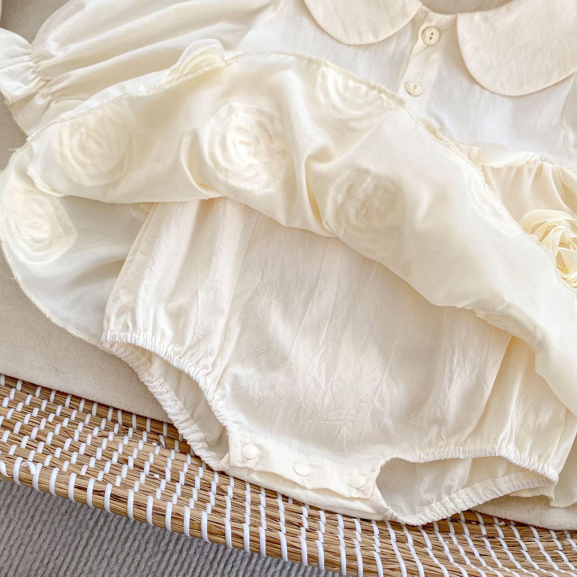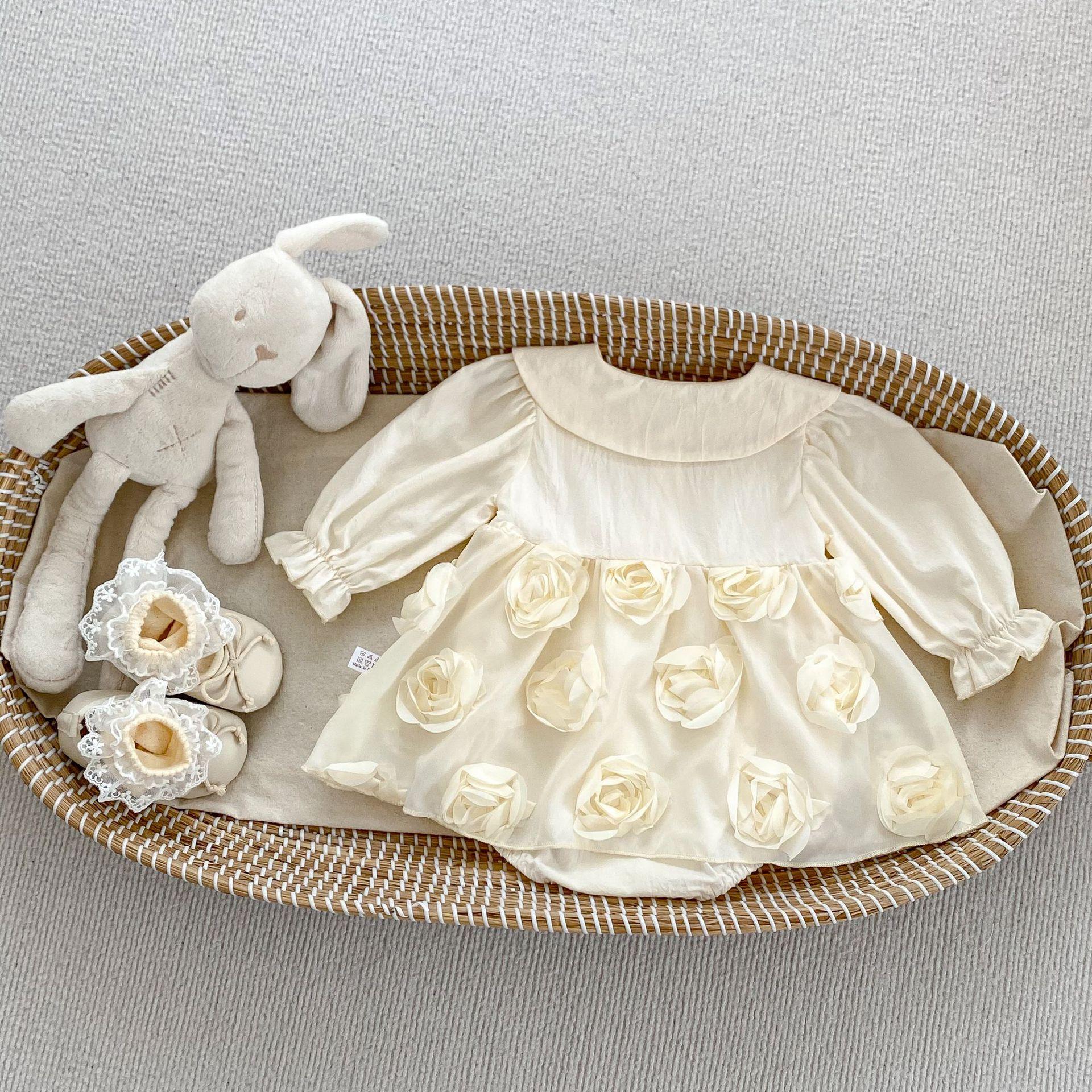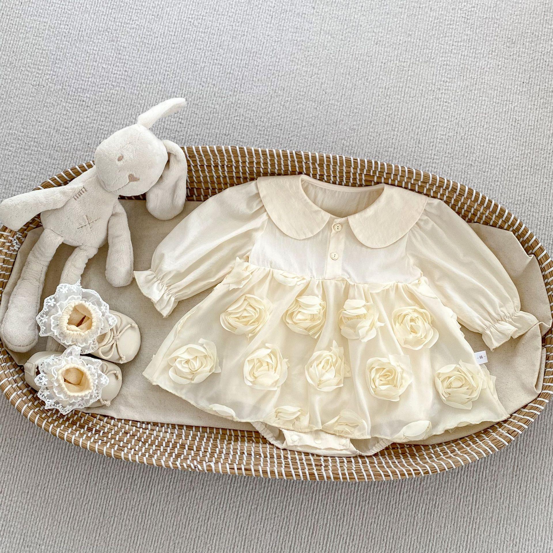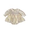 Mono de otoño para niña, nuevo y dulce, con malla de flores, ropa de escalada, falda de cuello redondo