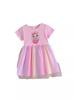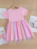 Vestido de Niña Manga Corta Bebé de Tres Años Vestido de Verano para Niña Vestidito Cumpleaños Malla Arcoíris Vestido de Princesa