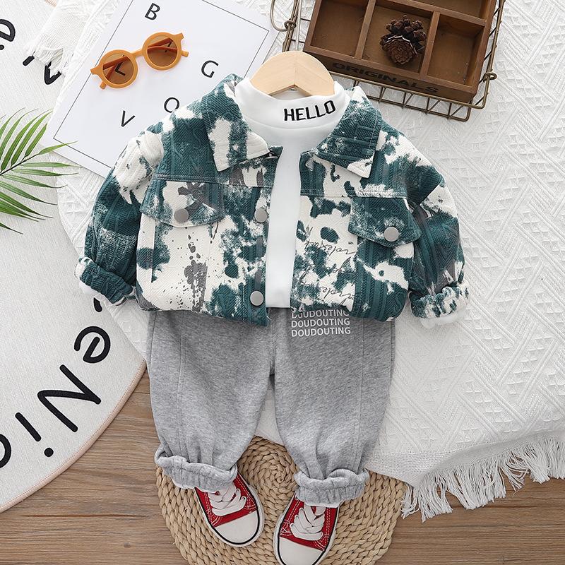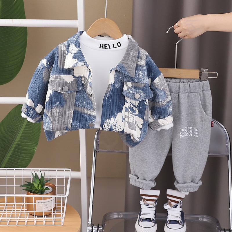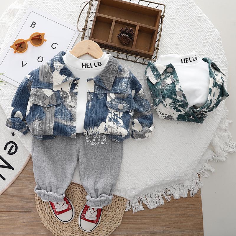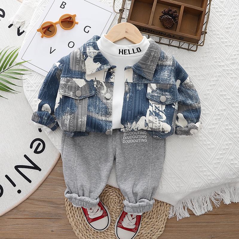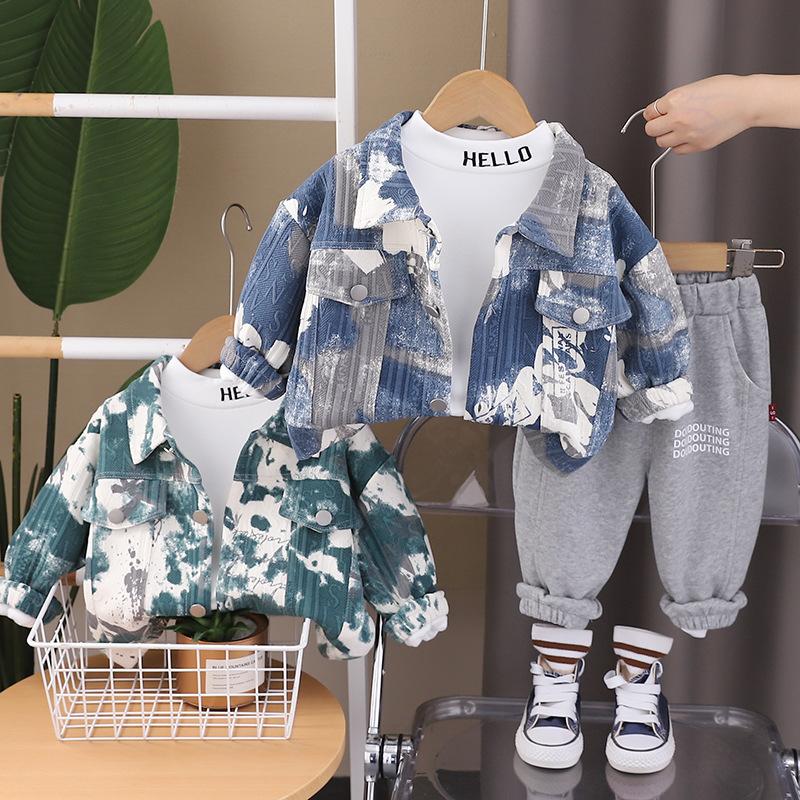 Traje de Primavera y Otoño para Niño 2024 Nuevo Estilo Coreano Vestido de Otoño para Bebé de Hombre Conjunto de Tres Piezas de Moda para Bebé y Niño Moda
