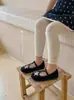 Nuevas medias de algodón peinado para niñas, de primavera y otoño, con lazo plateado grueso para bebés.