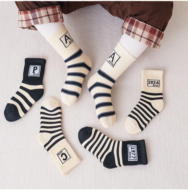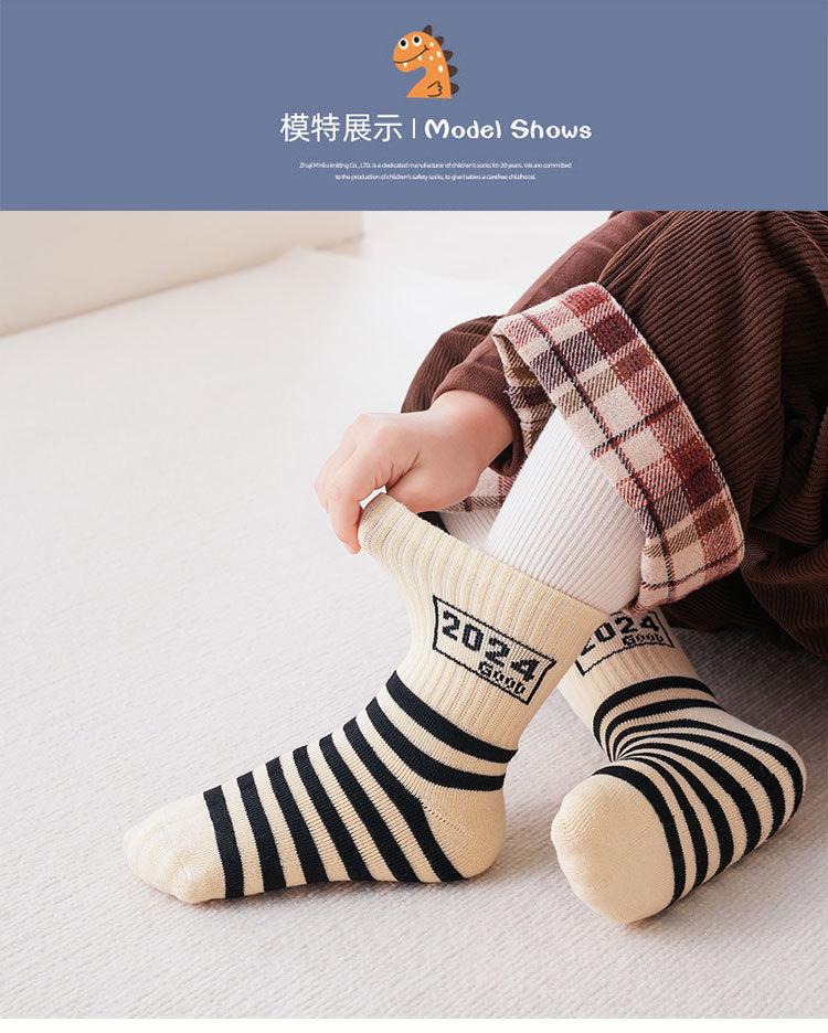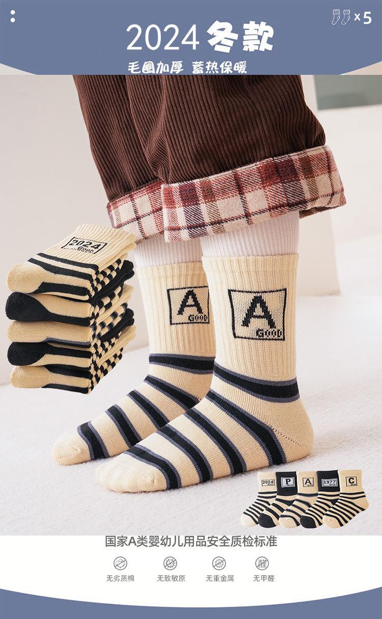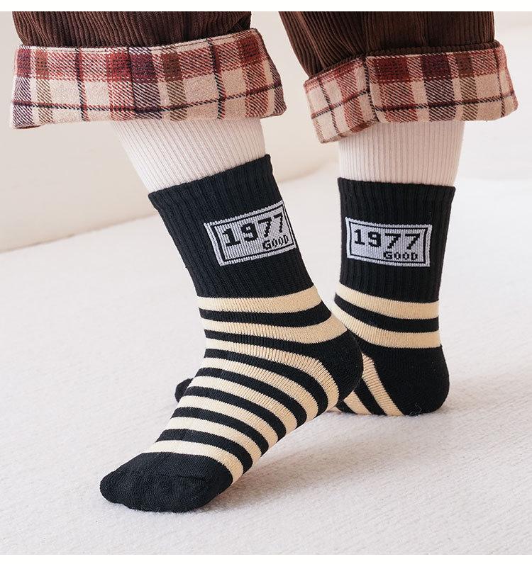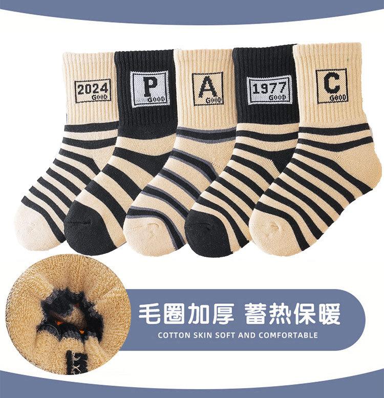 Calcetines de rizo gruesos para niños, otoño e invierno, con rayas digitales, cálidos, de toalla, para niños pequeños, medianos y grandes, lote de calcetines de tubo para bebés.