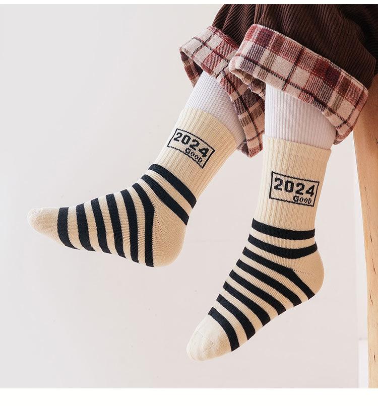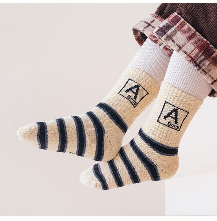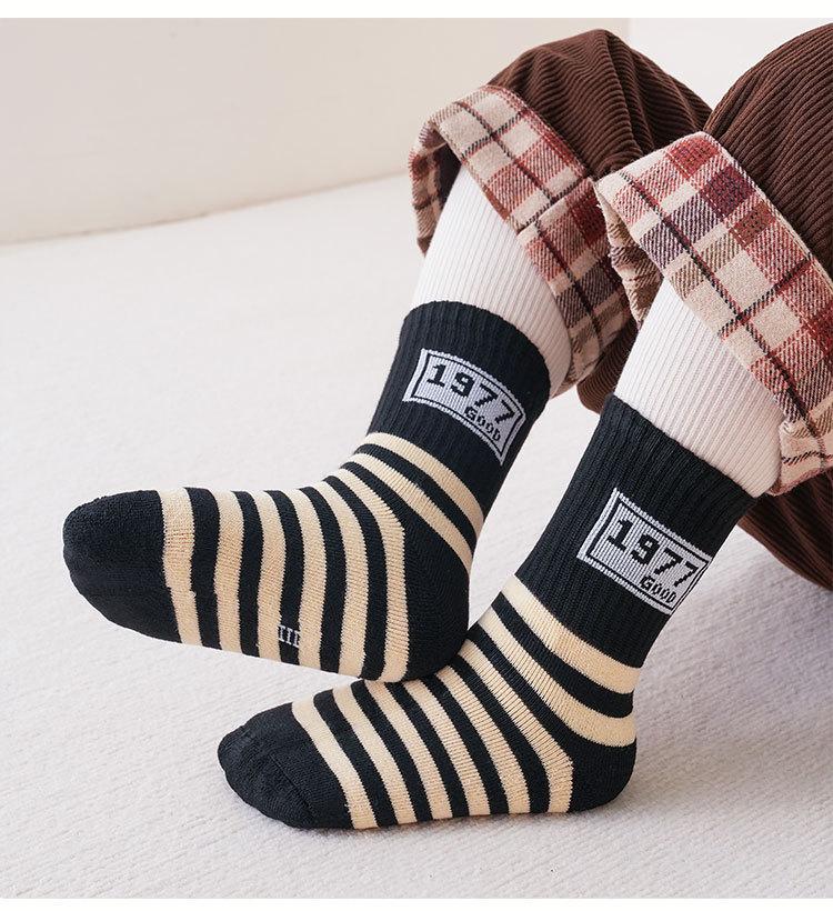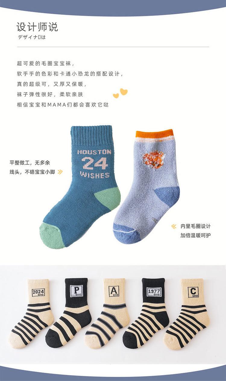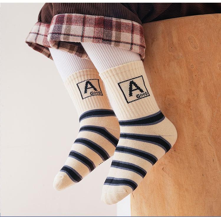 Calcetines de rizo gruesos para niños, otoño e invierno, con rayas digitales, cálidos, de toalla, para niños pequeños, medianos y grandes, lote de calcetines de tubo para bebés.