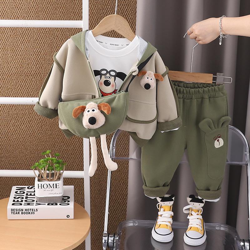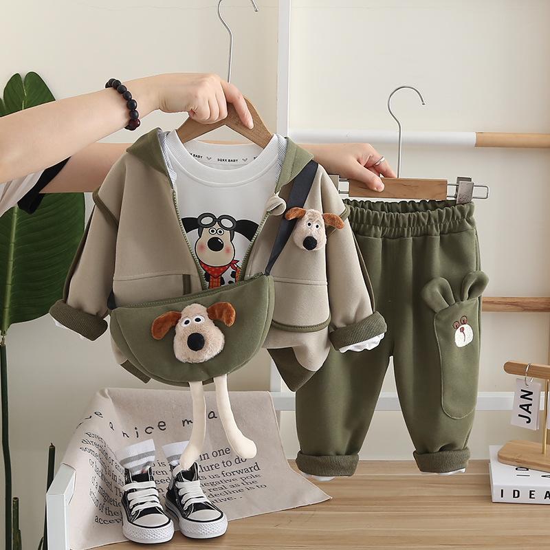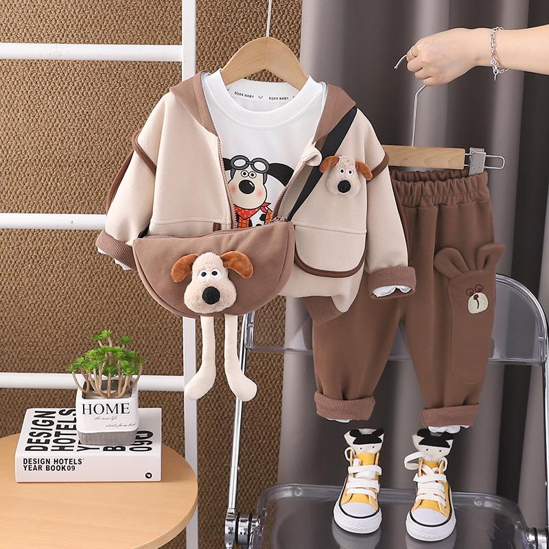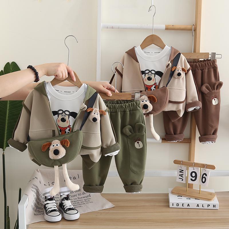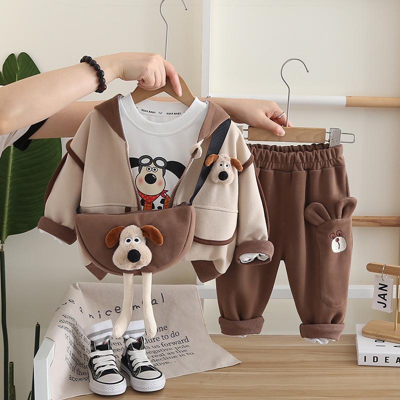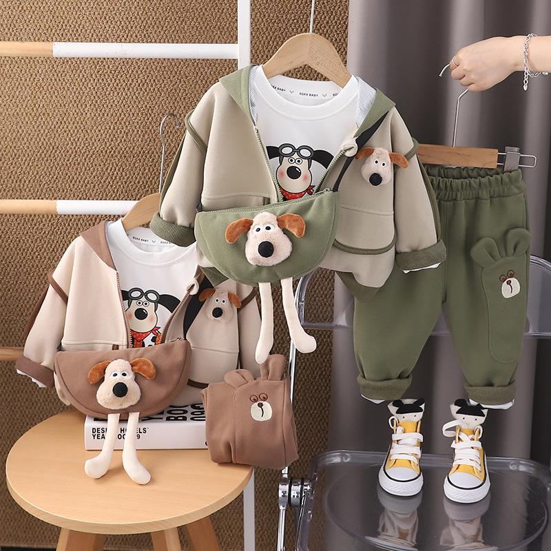Compra Traje de otoño para bebé 2024 primavera y otoño nuevo niño pequeño estilo extranjero bolso perro cárdigan conjunto casual de tres piezas para niños al por mayor en Joom.pro