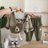 Traje de otoño para bebé 2024 primavera y otoño nuevo niño pequeño estilo extranjero bolso perro cárdigan conjunto casual de tres piezas para niños