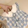 Compra Vestido de Verano Cremoso Estilo Francés para Niñas, Vestido de Princesa Azul a Cuadros con Cuello de Muñeca y Estilo Pastoral al por mayor en Joom.pro
